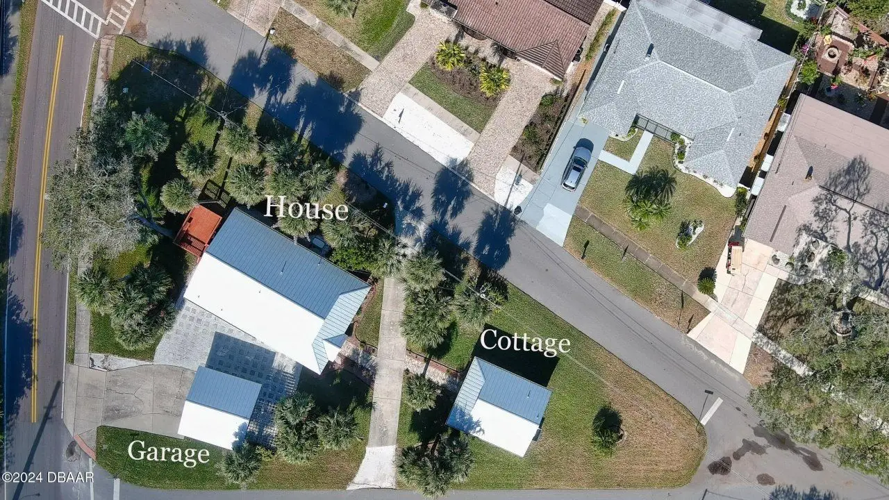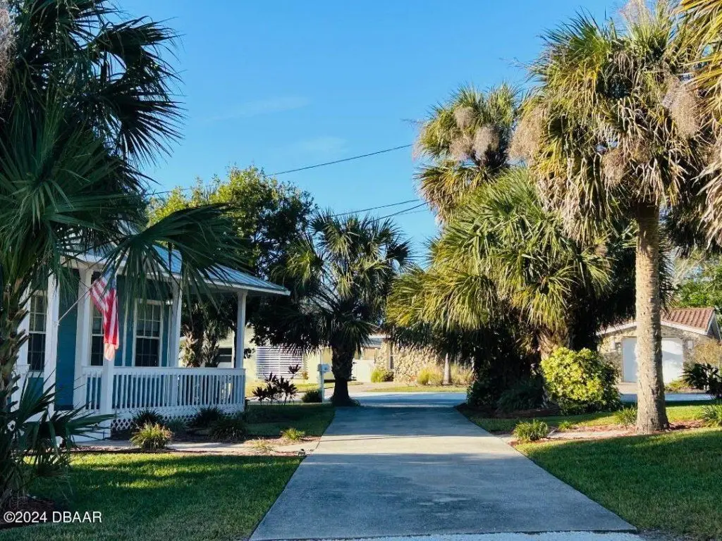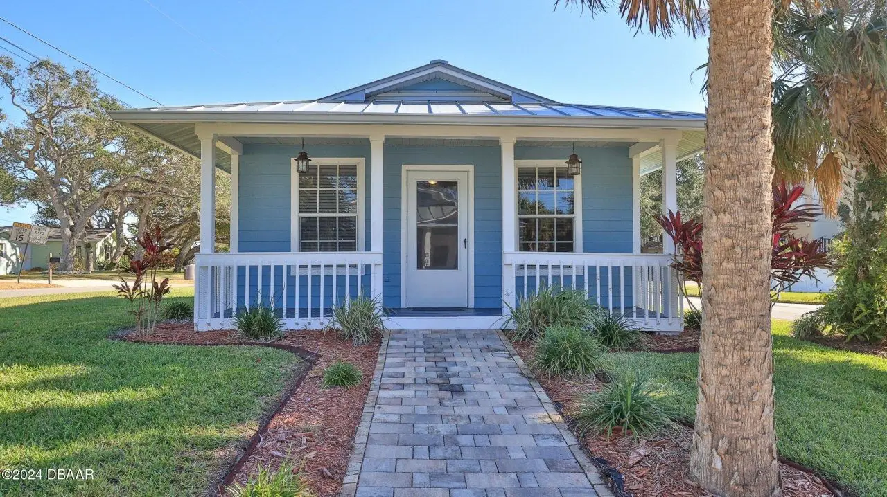 ASSUMABLE 3.25 MORTGAGE in this Charming Coastal Key-West-Style Retreat! This unique property offers a 3 Bedroom/2 Bath Home and a separate Guest House w/kitchenette, full bath and stackable W/D. Ideal for an office, art studio or In-law quarters. Both homes newly renovated in 2020/21. The main house is thoughtfully designed with an open concept living and split bedroom plan w/delightful accents throughout. An abundance of windows capture the natural light. Spacious indoor laundry room. The expansive front porches, a 15' x 10' deck and a pergola, set in tropical landscaping, are perfect entertaining spaces. Enjoy peace of mind with new metal roofs on all buildings in 2023, block construction, a Generic generator, tankless water heaters, hurricane shutters and sprinkler system. 2-car garage and two driveways. This Retreat creates a Lifestyle in Paradise! Easy stroll to the beautiful drive-free seashore and all the nearby amenities New Smyrna Beach offers. Welcome to Serenity at Home!