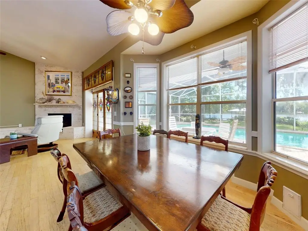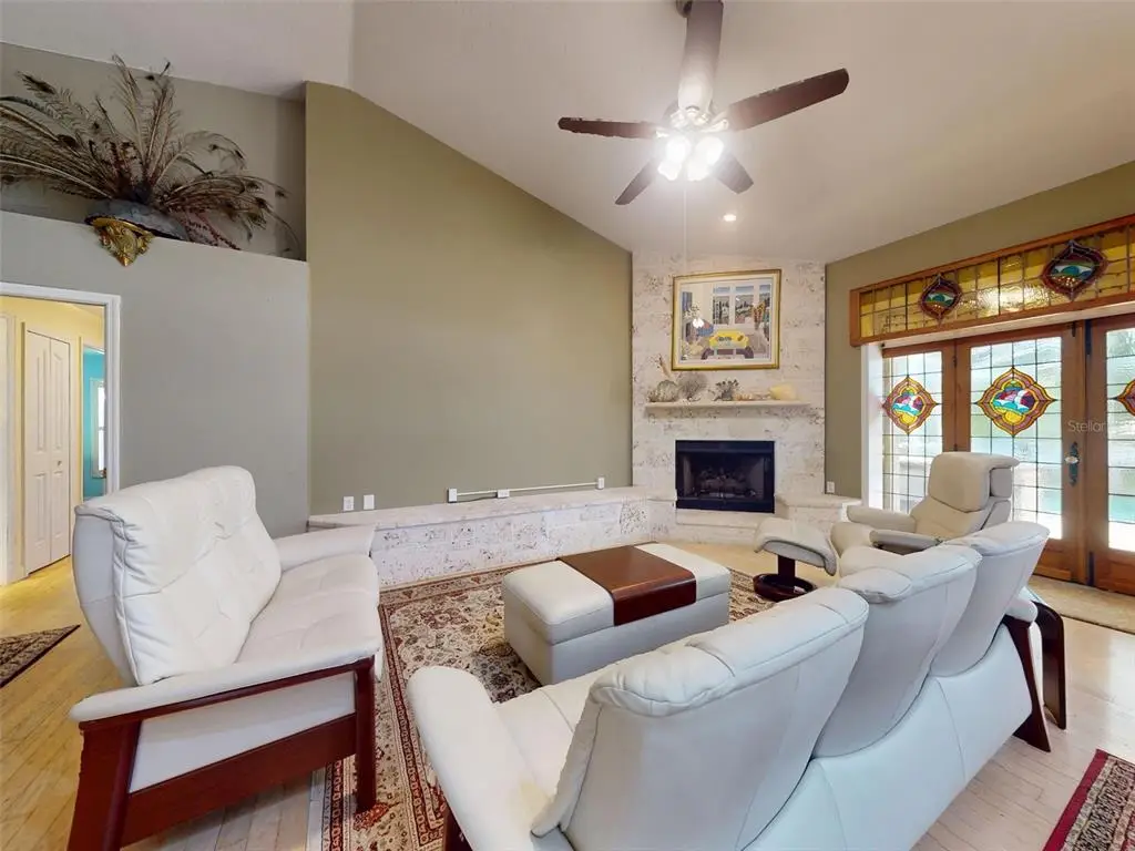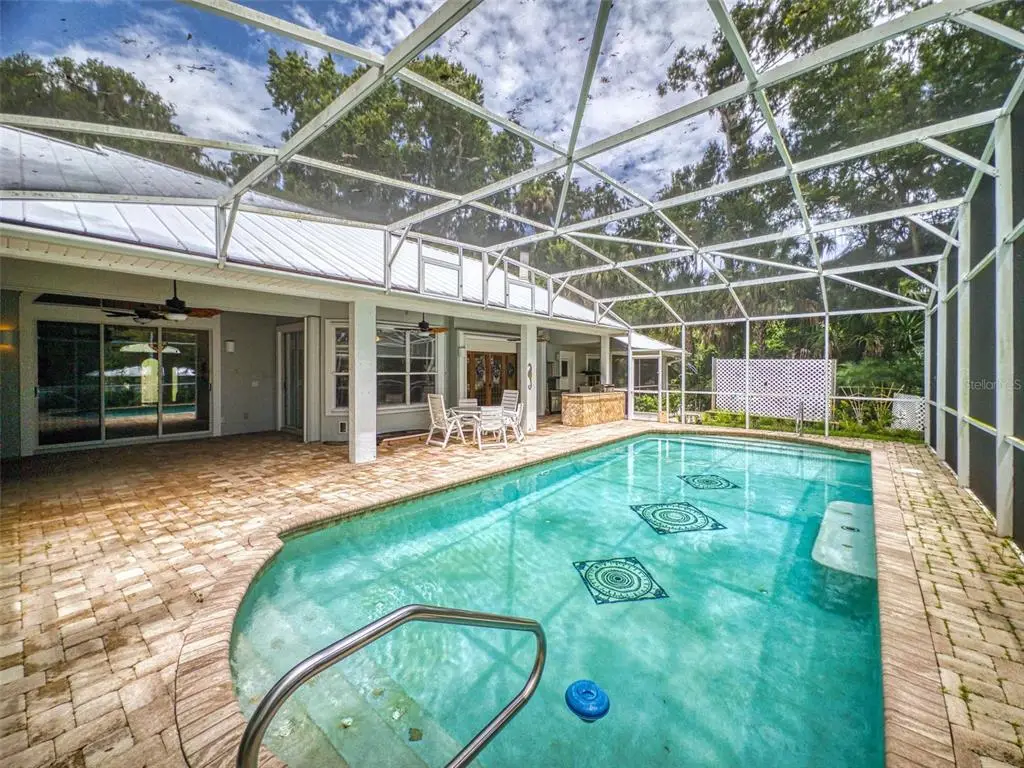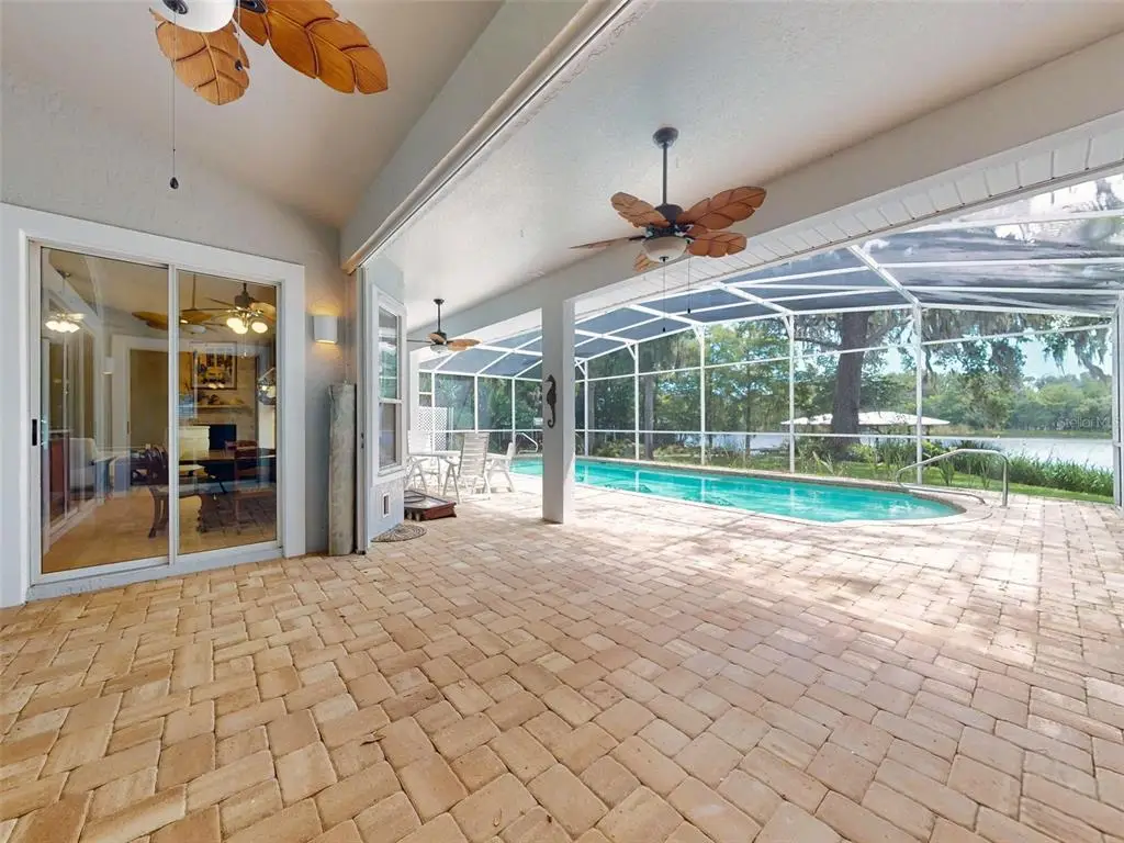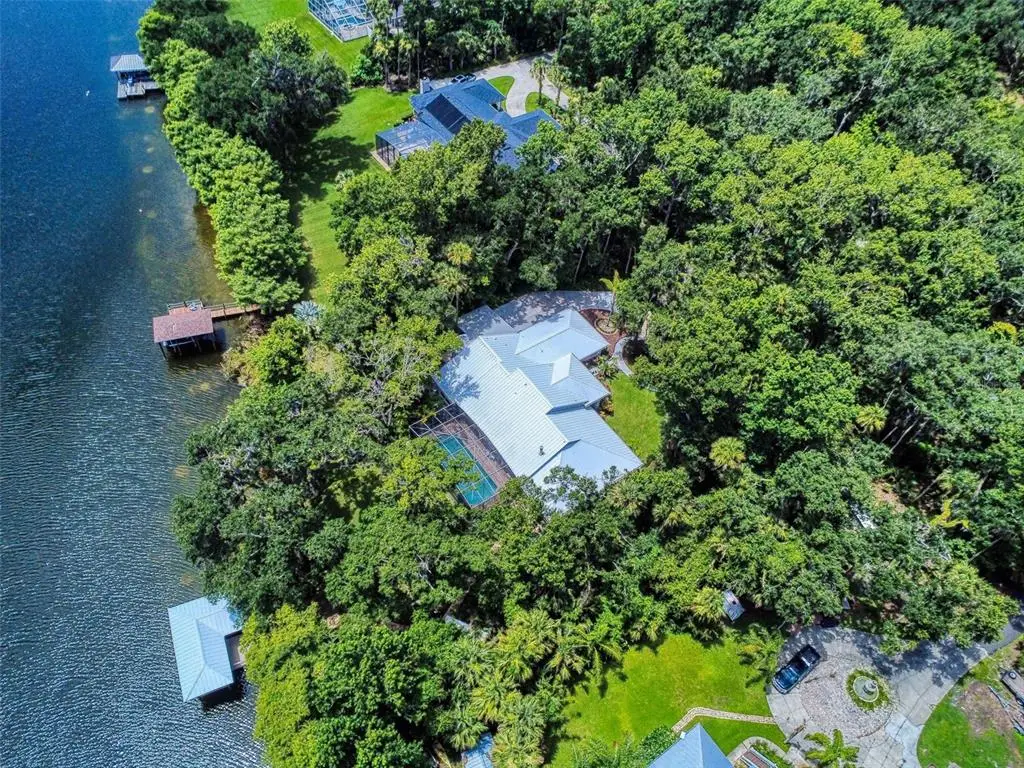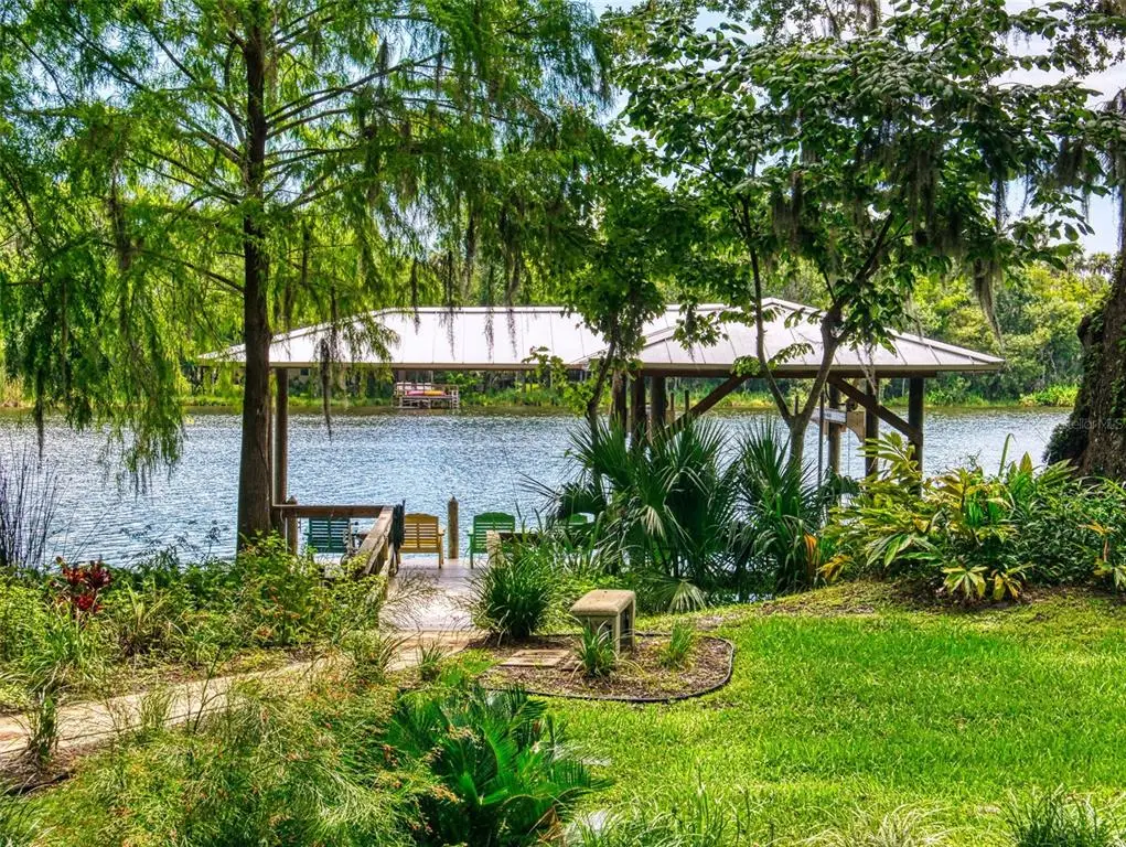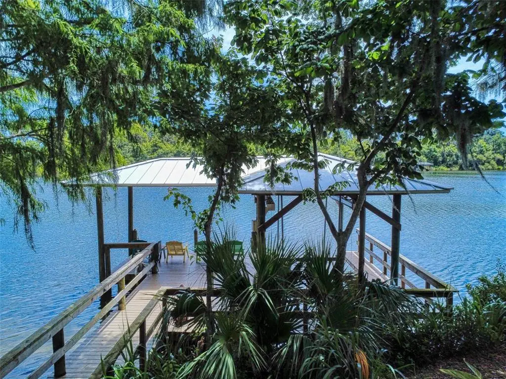 Beautiful 4 bedroom, 3 and a half bath, lakefront, pool home located in the highly desired gated community of Lake Waterford Estates in New Smyrna Beach. Lake Waterford is a 75 acre, spring fed lake perfect for boating, skiing, fishing and a number of other water sports. This spacious home sits on a 1.75 acre lot which is lush with a variety of mature trees, fruit trees and beautiful flora. Enter this home through the welcoming foyer where the eye is immediately drawn to the serene view of the tranquil lake in your own backyard. This home was designed for entertaining with a distinguished formal dining room and formal living room. The large primary bedroom, with expansive windows, letting in the beautiful views and two individual walk-in closets, will be a welcomed retreat at the end of the day. The ensuite bath comes equipped with double sinks, separate shower and a jetted garden tub. The 3 spacious guestrooms, each with ample closet space and natural light streaming through the windows, are comfortable and inviting. The hub of this amazing home is the open-concept, family room, dining nook and kitchen. This kitchen is a chef's dream with granite counter tops, stainless-steel appliances, gas stove and plenty of storage space. The kitchen opens to a dining nook and family room. As you enter the family room you are drawn to the massive natural stone fireplace. Exit the family room through custom, stained-glass french doors to your sparkling, screened-in pool and classic pavered patio deck. Sit and enjoy your morning coffee as you take in the beauty of life on the lake.Just beyond the pool is a pavered walkway that will lead you down to the boat-house and dock. This durable dock, made of WEARDECK material, is equipped with electricity, water and newer boat lift. What better way to end the day than with a relaxing boat ride or simply sitting on your own dock enjoying the beauty of nature in this breathtaking setting. Other outstanding features of this exquisite home: indoor laundry room with full bath, oversized 3-car garage, whole home diesel-powered generator, outdoor storage sheds, circular driveway, central vacuum system, custom stained-glass lighting and doors, high ceilings and plantation shutters. NEW METAL ROOF 2024. Air Conditioners, Refrigerator and Hot Water Heater new in 2024. The Lake Waterford Estates community amenities include a clubhouse, tennis courts and boat ramp. This sprawling, exquisite home offers the best of Florida living. This property is conveniently located less than 10 miles to the sandy beaches of New Smyrna and about an hour to the Orlando airport. Call today to schedule an appointment to see this truly spectacular and unique home.