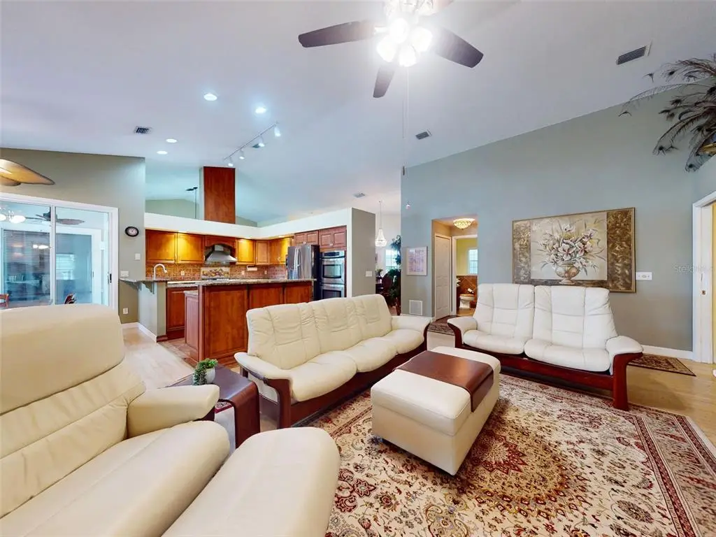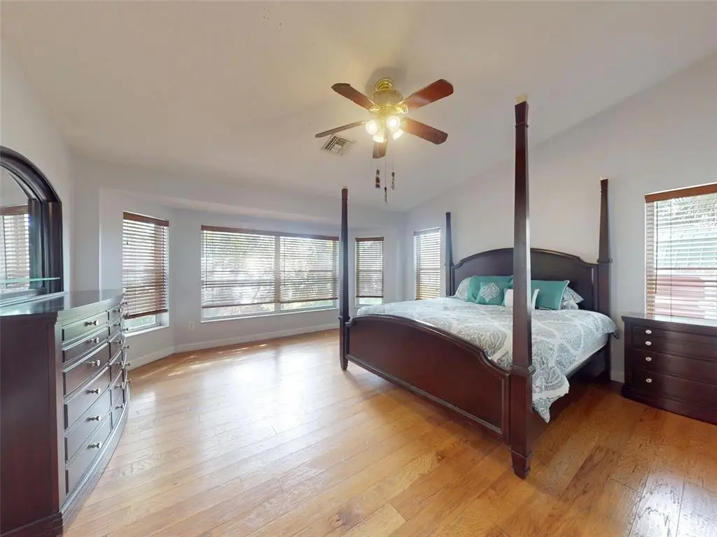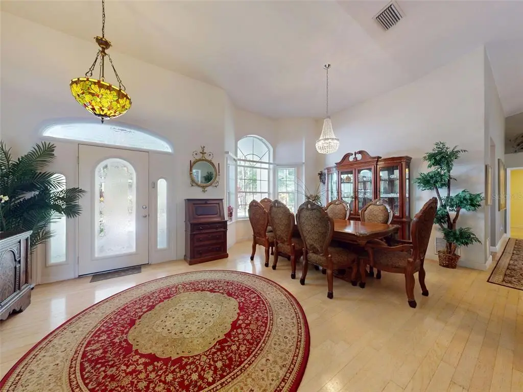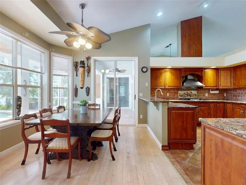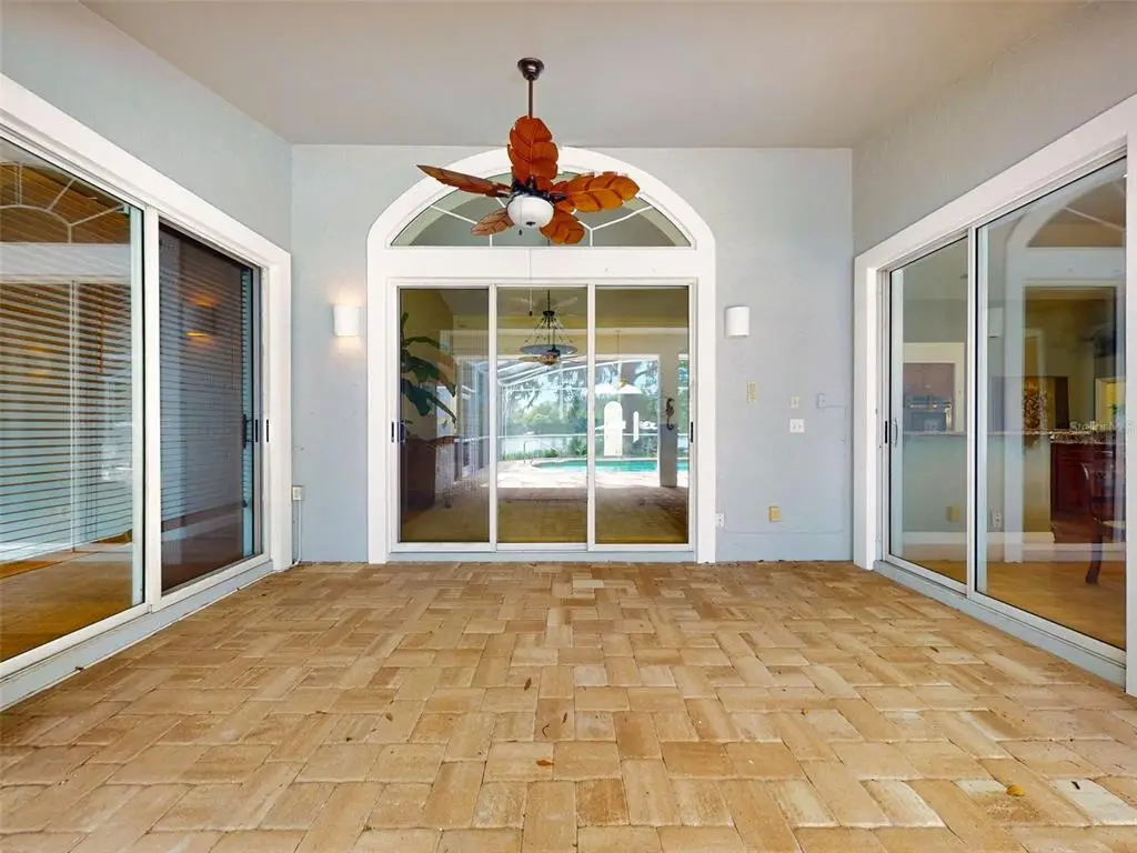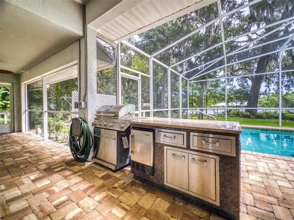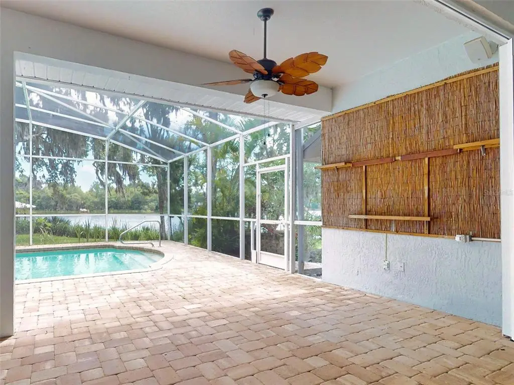 Beautiful 4 bedroom, 3 and a half bath, lakefront, pool home located in the highly desired gated community of Lake Waterford Estates in New Smyrna Beach. Lake Waterford is a 75 acre, spring fed lake perfect for boating, skiing, fishing and a number of other water sports. This spacious home sits on a 1.75 acre lot which is lush with a variety of mature trees, fruit trees and beautiful flora. Enter this home through the welcoming foyer where the eye is immediately drawn to the serene view of the tranquil lake in your own backyard. This home was designed for entertaining with a distinguished formal dining room and formal living room. The large primary bedroom, with expansive windows, letting in the beautiful views and two individual walk-in closets, will be a welcomed retreat at the end of the day. The ensuite bath comes equipped with double sinks, separate shower and a jetted garden tub. The 3 spacious guestrooms, each with ample closet space and natural light streaming through the windows, are comfortable and inviting. The hub of this amazing home is the open-concept, family room, dining nook and kitchen. This kitchen is a chef's dream with granite counter tops, stainless-steel appliances, gas stove and plenty of storage space. The kitchen opens to a dining nook and family room. As you enter the family room you are drawn to the massive natural stone fireplace. Exit the family room through custom, stained-glass french doors to your sparkling, screened-in pool and classic pavered patio deck. Sit and enjoy your morning coffee as you take in the beauty of life on the lake.Just beyond the pool is a pavered walkway that will lead you down to the boat-house and dock. This durable dock, made of WEARDECK material, is equipped with electricity, water and newer boat lift. What better way to end the day than with a relaxing boat ride or simply sitting on your own dock enjoying the beauty of nature in this breathtaking setting. Other outstanding features of this exquisite home: indoor laundry room with full bath, oversized 3-car garage, whole home diesel-powered generator, outdoor storage sheds, circular driveway, central vacuum system, custom stained-glass lighting and doors, high ceilings and plantation shutters. NEW METAL ROOF 2024. Air Conditioners, Refrigerator and Hot Water Heater new in 2024. The Lake Waterford Estates community amenities include a clubhouse, tennis courts and boat ramp. This sprawling, exquisite home offers the best of Florida living. This property is conveniently located less than 10 miles to the sandy beaches of New Smyrna and about an hour to the Orlando airport. Call today to schedule an appointment to see this truly spectacular and unique home.