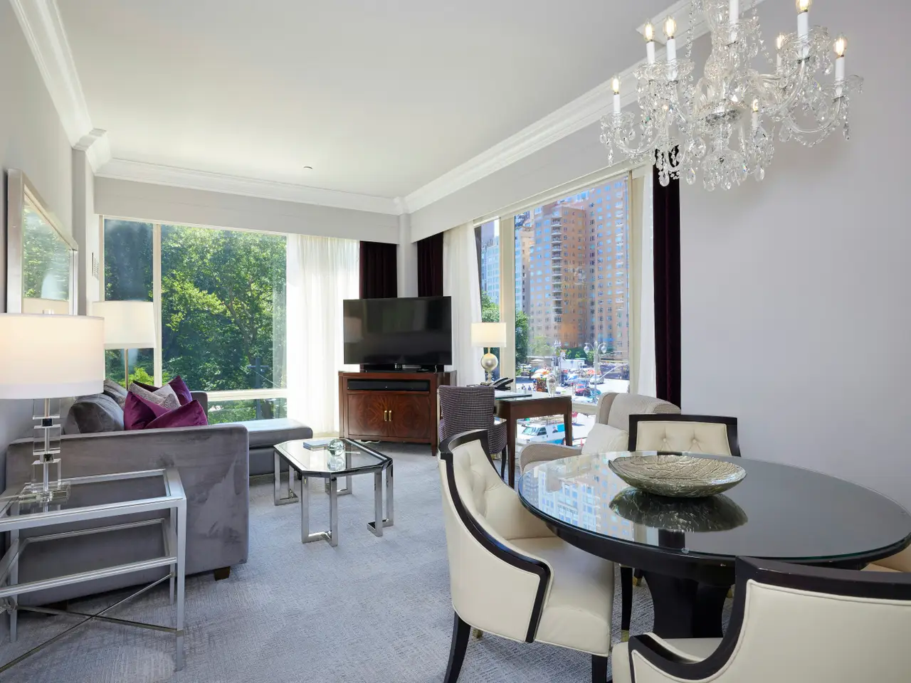 Park view corner one bedroom hotel suite. This 5 Star Condo Hotel Suite (1,016 square feet) rents for over $1,000 a night to the public. There are no restrictions for use by owners. Exciting Central Park and Columbus Circle views. Hotel has health club and pool. Room service by Jean Georges Restaurant. Walk-in owners' closet. Full kitchen! Stunningly low price.