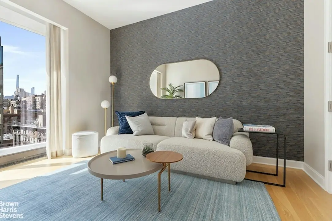 14B at 1289 Lexington truly has it all: four oversized bedrooms, a corner great room with loft-sized proportions, soaring ceilings to 11 feet, and southern and western exposures with beautiful views and light. A perfect pairing of functionality and style, this new tower was designed by the esteemed HOK Architects, with bespoke interiors by Architectural Digest 100 Designer Lee Mindel of SheltonMindel. SheltonMindel's commitment to quality materials and design is showcased in the ultraluxe kitchen and baths. The chef's kitchen features walnut cabinets, a full suite of Gaggenau appliances (including a vented stove hood), custom pendant lights, an elegant slab marble island and Glassos counters. The bathrooms are worthy of one of the world's great spas, with custom vanities, and slab and mosaic stonework in a soothing natural palate. In addition to aesthetics, the focus on comfortable living is echoed throughout this special residence. There is elegant art lighting, a large laundry closet with a vented dryer, designated Nest controls in each room, and custom window pockets with electricity. 1289 Lexington's amenities include a business center with four private study/Zoom rooms and a large meeting room; a Media Creation and Gaming room with Karaoke and musical instruments; an elegant lounge with a catering kitchen and landscaped terrace; a rooftop terrace with fireside seating and outdoor kitchen with grill; a windowed fitness center designed by The Wright Fit; a fun-filled playroom created by Silver Hill Atelier. Perfectly centered between two parks, and next to myriad forms of transportation, Apartment 14B is an oasis of quiet amid all the excitement that makes the Upper East Side so desirable. Private In-Person Appointments Available. Immediate Occupancy. Some photographs of this apartment are virtually staged. All dimensions and square footages are approximate and subject to, among other things, normal construction variances and tolerances. Square footage exceeds the usable floor area. Sponsor reserves the right to make changes in accordance with the terms of the Offering Plan, as amended ("Plan"). In the event of any inconsistency between this floor plan and the floor plans contained in the Plan, the floor plans contained in the Plan shall prevail and control. Plans and dimensions may contain minor variations from floor to floor. Any depictions of personal or condominium property, including, without limitation, any interior and exterior decorations, furniture, furnishings, fixtures, appliances, and landscaping (including the maturity of growth of landscaping), are for illustrative and conceptual purposes only. No representation or warranty is made that a unit owner will be able to implement the furniture layout shown above. Sponsor makes no representations or warranties except as may be set forth in the Plan. THE COMPLETE OFFERING TERMS ARE IN AN OFFERING PLAN AVAILABLE FROM SPONSOR. FILE NO. CD17-0315. SPONSOR: 86LEX OWNER, LLC, 445 PARK AVENUE, SUITE 1902, NEW YORK, NY 10022. EQUAL HOUSING OPPORTUNITY.