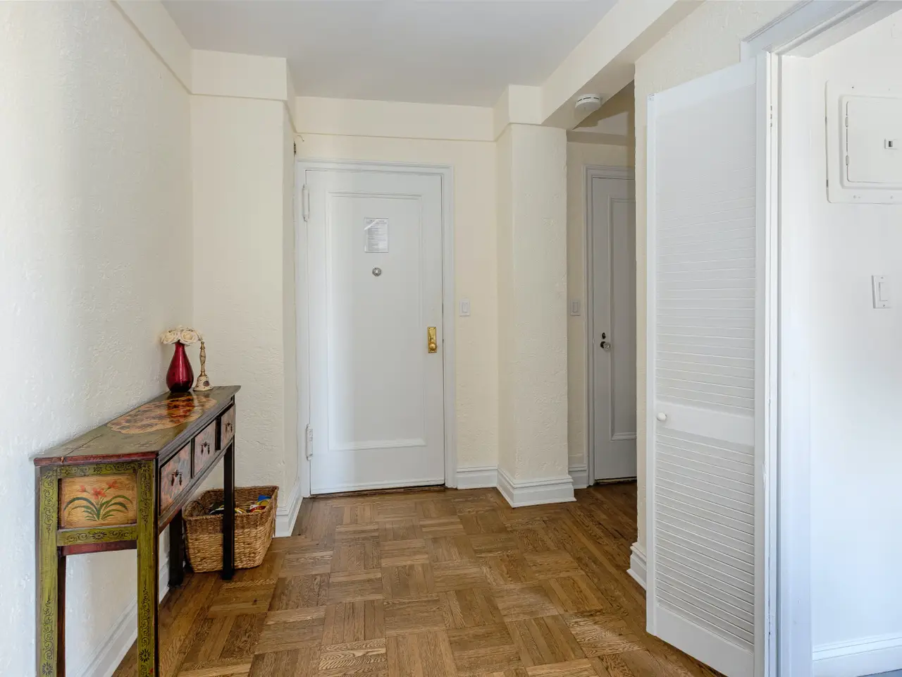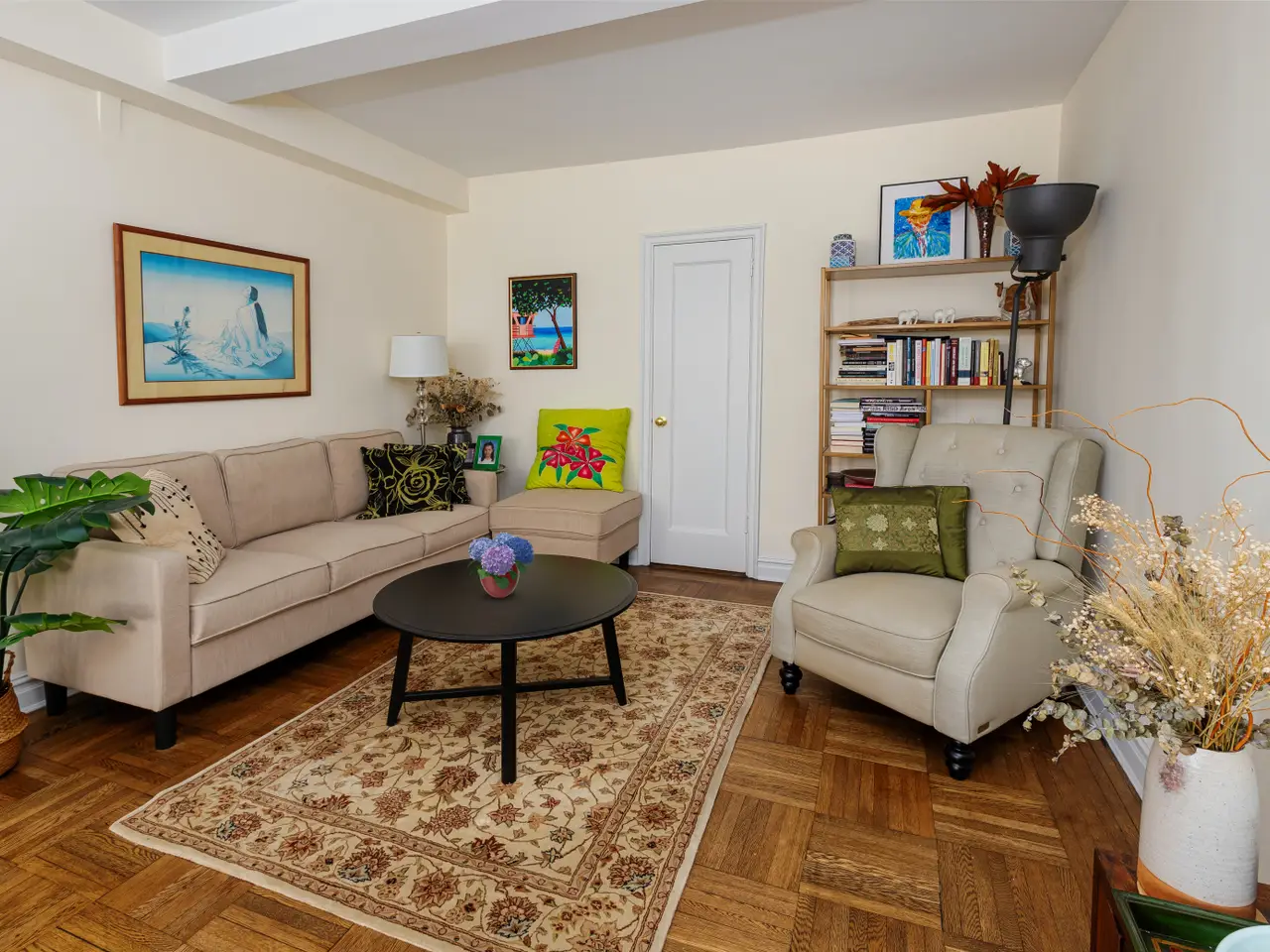 A must see-this super two-bedroom, 2 windowed bath is charmer, packed with all that you need for comfort and enjoyment, is the one to see. In move-in condition, every bit of space is so well utilized to make for easy living. High beamed ceilings, excellent conditioned original wood floors, and an arched doorway keep the prewar vibe throughout. A sweet entry foyer greets you and guides you to a living room with a windowed designated dining area. A newly renovated, easily accessed windowed hall bathroom adjacent to the primary corner bedroom with north and west windows fills the room with light. The second bedroom, on the other side of the entry foyer, with its own access to the building's outside corridor, provides the utmost privacy, if desired. This bedroom, den, or office has its own private windowed shower room with sink and toilet. The Gemstone is a highly desired rarity on the UWS, It is a pre-war condominium F/S building that is magnificently maintained, with a superb garden oasis, a beautiful rooftop, children's playroom, 24-hour accessible laundry, storage bins, and bike storage. It is in the perfect location near Riverside Park and all its Glories. The best food shopping imaginable-Fairway Trader Joe's, Citarella, to name a few, are at your fingertips. The best transportation with the 72nd street hub, the cross-town bus, provides multiple travel options. Lincoln Center is just a few streets away. If an investment property is something for now or later, this is the one to see.