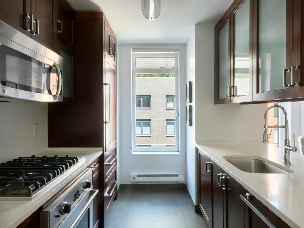 This beautiful, bright, high floor 1 bedroom home was impeccably designed by Robert A. M. Stern. The spacious 826 square foot layout features an open chef's kitchen with top of the line stainless steel appliances including a Subzero refrigerator and stunning Sapele mahogany cabinetry, a generous living room with a discreet dining area, a large bedroom with a huge, custom designed closet, and a lovely marble bathroom with a separate glass enclosed shower and tub. The apartment has oversized windows and herringbone flooring throughout, a Miele washer/dryer, 2-zone central air conditioning and heat, abundant closets and more. The Harrison, is a full service, luxury condominium with a friendly and attentive doorman and concierge and a live-in resident manager. The grand lobby has a gracious seating area complete with a warm and inviting fireplace. Incredible amenities include a landscaped rooftop, an outdoor patio with barbeque, a residents' lounge, a children's playroom, an in-house gym and direct access to a fabulous Equinox gym. The building is pet friendly and smoke-free. There is a garage (accessible from the building), a bike room, private storage, and there are only 4 apartments per floor. Nestled between the Museum of Natural History, Lincoln Center, Riverside Park and Central Park, The Harrison is in close proximity to many of the cultural and recreational landmarks that attract so many to the Upper West Side. Convenient to fantastic public transportation options, and sitting in a prime location, the building offers an unparalleled level of luxurious living. Subletting is permitted.