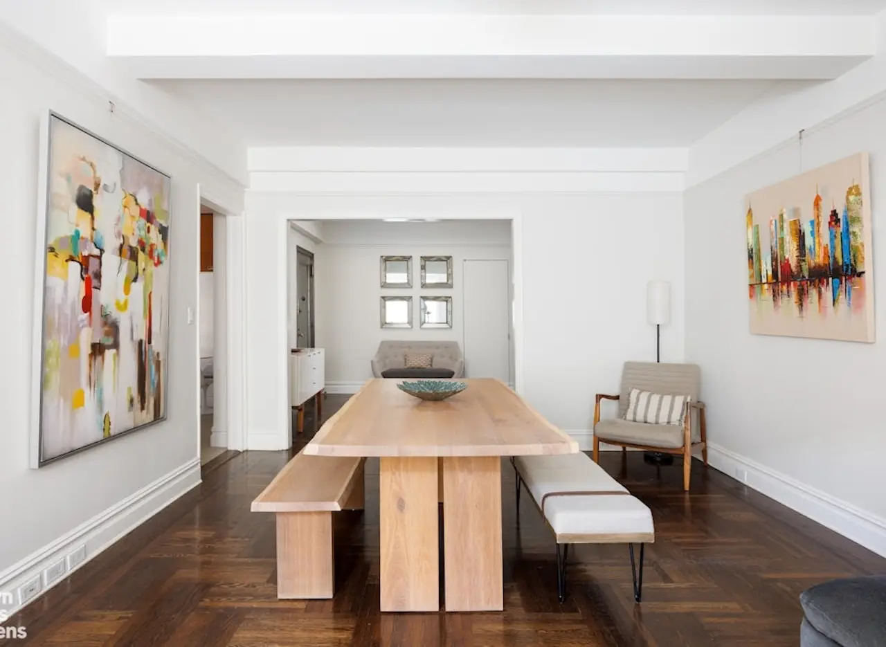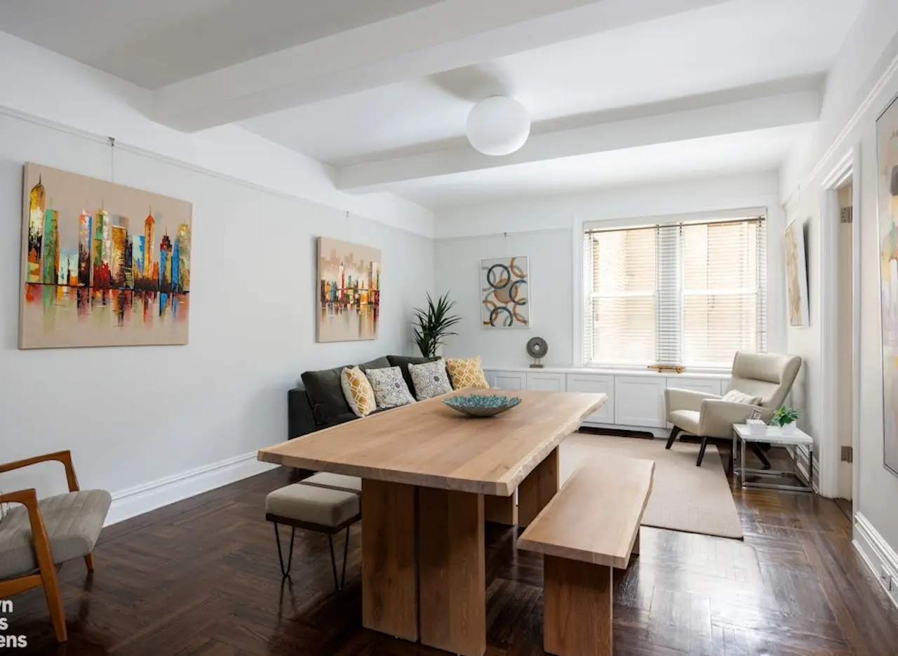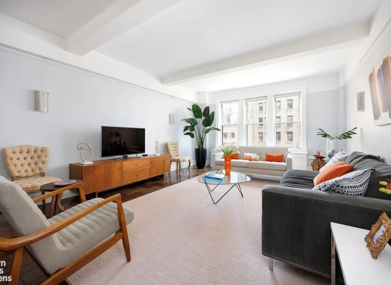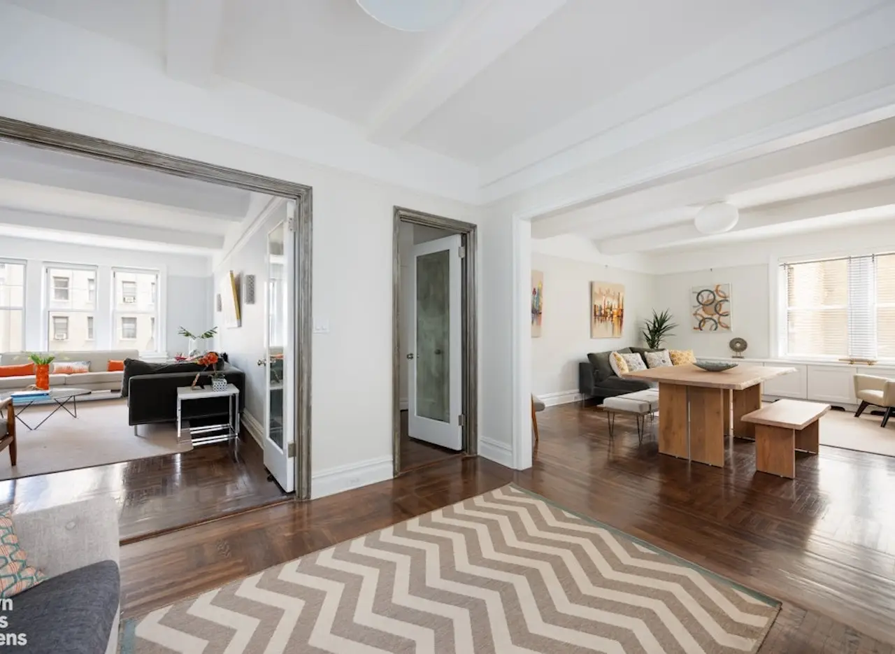 The New Children's Museum of Manhattan coming down the block! Bright and mint 3 bedroom PLUS 4th bedroom/ office right off Central Park! Step into a gracious entry foyer with a large coat closet and immediately you are impressed by charming pre-war details including high, beamed ceilings and beautiful hardwood floors. The foyer leads to the spacious and wide living room, which gets wonderful light from the three windows facing over double wide 96th Street. The massive dining room is an entertainer's dream, large enough to host huge dinners or use the space as both a dining room and a den. The wonderfully renovated, windowed eat-in chef's kitchen boasts a large eating area, a 6 burner Wolf range, Subzero refrigerator, Miele dishwasher, washer/dryer, and tons of storage space. It gets great Eastern light too! Nicely separated from the living area, the bedroom wing boasts three bedrooms that get nice light all day facing across 96th Street. The sumptuous primary suite features 4 very large closets and an en-suite, windowed bathroom with a double vanity and large glass shower. Both of the spacious secondary bedrooms have large closets and share a renovated, connecting bathroom. The staff room, perfectly located off the dining room (not behind the kitchen!) is great as either an office or guest bedroom, with a built-in desk and storage space as well as a full size en-suite bathroom. This amazing home has through the wall air conditioning throughout and is bright and tranquil too! 50 West 96th Street is a wonderfully maintained pre-war cooperative that features a 24-hour doorman and live-in resident manager. Additional amenities include a lovely roof deck, central laundry room, and bike storage (when available). Ideally located on a Central Park block and close to two great subway lines and multiple bus lines, as well as minutes away from Whole Foods and other great shops and restaurants! Please note there is an assessment in the amount of $190.72 per month. Pets are allowed as is 75% financing. Please call for a private appointment!