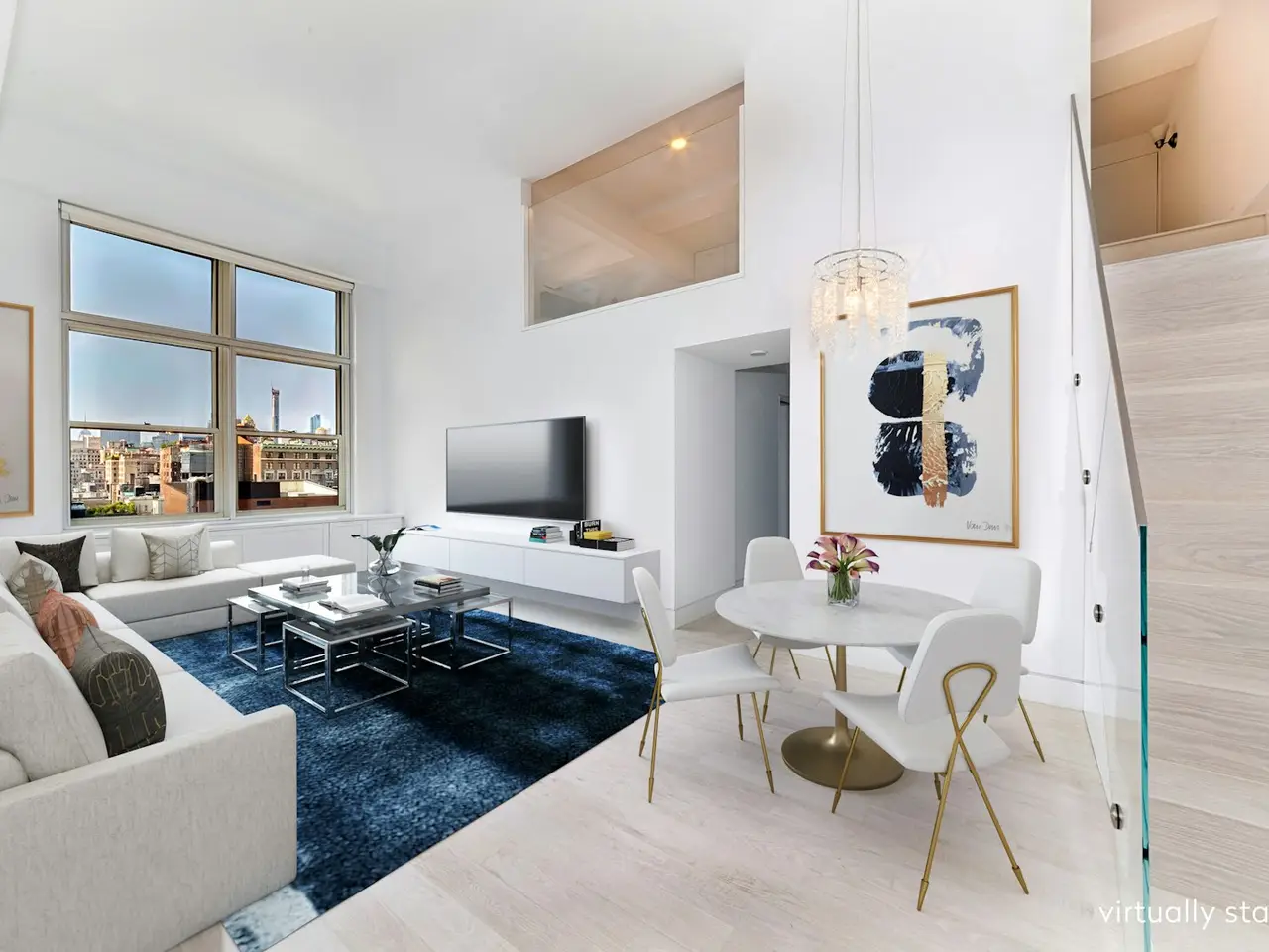 Enjoy living in this beautifully renovated 2 bedroom, 2 bath home with a great bonus loft and sunny southern views! This meticulously renovated apartment is located right off of Park Avenue and a few short blocks from Central Park. Park Avenue Court is an impressive white glove, fully staffed condominium with fabulous amenities. The apartment features soaring 14 foot ceilings throughout, beautiful white oak floors, recessed lighting, washer/dryer, endless storage space and soundproof windows with electric shades. The kitchen features all Bosch appliances including stainless steel refrigerator, 5 burner stove, dishwasher, microwave and a stainless steel Kraus deep sink. In addition, there are floor to ceiling white cabinets with Caesarstone counter-tops. The amazing back-splash is a handcrafted beautiful blue agate quartz with LED lighting. The serene primary suite has a generous walk-in closet and spa-style bathroom equipped with a Toto toilet, large shower/tub with beautiful tile and fixtures throughout. The 2nd bedroom has substantial built-ins and large closet with a renovated bathroom in hallway. A modern inspired glass enclosed oak staircase leads to the large loft space with great storage and multi-use potential. Please note that the total square footage does not include the loft space of approximately 400 sq. feet of bonus space. Residents will enjoy the convenience of a fitness room, indoor swimming pool, playroom, yoga studio, resident superintendent, courtyard, adjacent parking garage, full staff and concierge service adding a touch of luxury to everyday living. Located in the vibrant Upper East Side and in close proximity to the subway, bus, great shopping including Whole Foods and Fairway, Central Park, The Met and Guggenheim along with world class dining. Experience Upper East Side living at its finest.