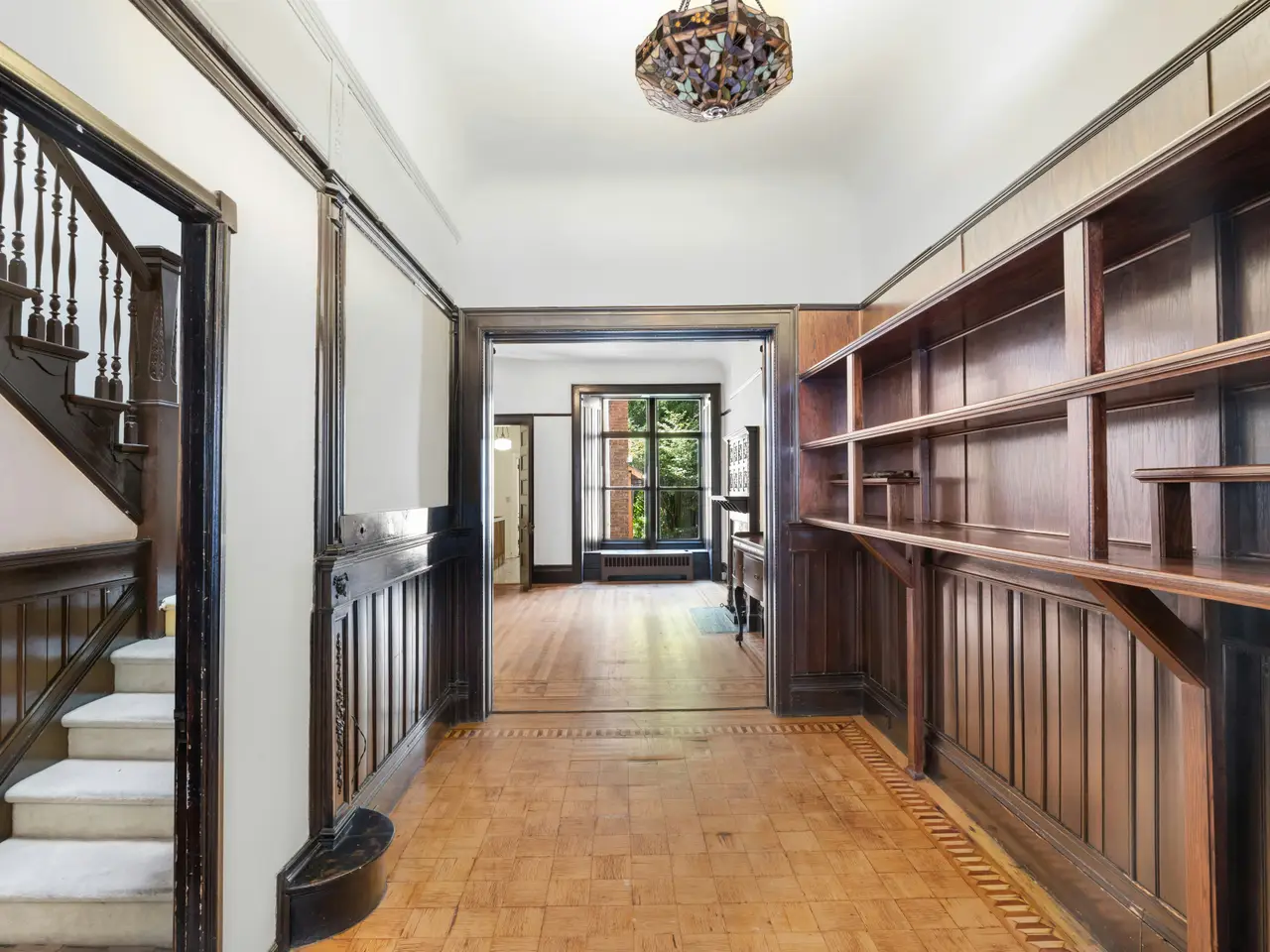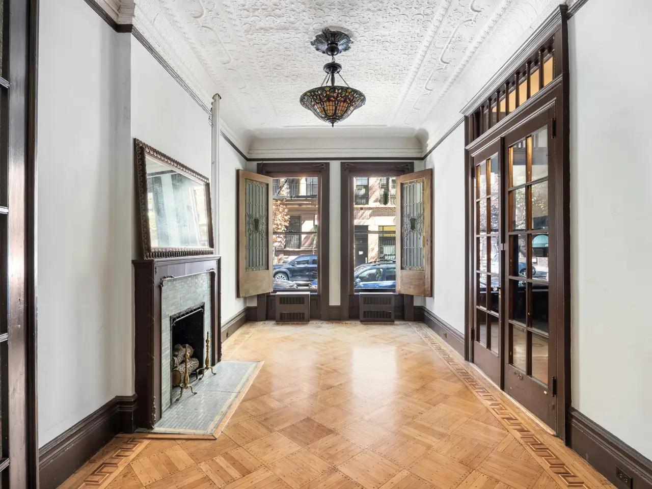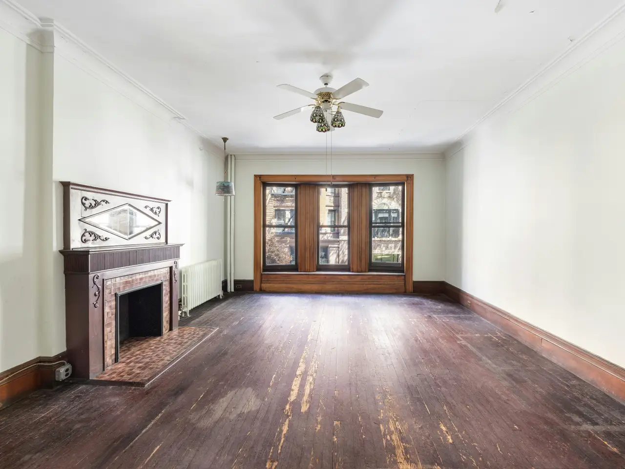 Tucked away on a quiet and pretty tree-lined block between West End Avenue and Riverside Drive, 324 West 85th Street is a rare and distinguished single-family townhouse rich in original architectural detail. This home has been owned by the same family since 1940 with only one previous owner. The property is in need of a complete renovation. One of six houses in a landmarked 1892 row designed by renowned architect Clarence True, this residence is a superb example of late 19th-century design. The stately north-facing facade of red sandstone, light orange Roman brick, and red pantile roof tiles is remarkably well preserved. The interior of this home is rich with historic charm and includes original details such as four fireplaces, inlaid wood floors, an oversized pocket door, intricate moldings, and rich wood paneling. Layout Overview: Parlor Floor: Enter through a paneled vestibule into a dramatic front parlor with soaring ceilings and exceptional natural light. The library and south facing rear living room are separated by a large original pocket door adjacent to a classic box stair that is illuminated by a large new skylight on the top floor. Past the rear living room is the expansive kitchen featuring original wooden cabinetry. A south-facing eat-in area overlooks the tranquil garden, creating many possibilities for a large chef's kitchen. Garden Level: Accessible from both the kitchen and its own under-stoop front entrance, this level includes two separate open areas and two separate entrances to the garden. There is a window at the front of the space facing the street and windows on the west side of the house. The south-facing garden is 570 square feet. Third Floor: Two full bedrooms with two bathrooms. Both bedrooms have original fireplaces. Fourth Floor: Two spacious bedrooms that share a full bathroom. Large skylight that brings sunlight down to the parlor floor.