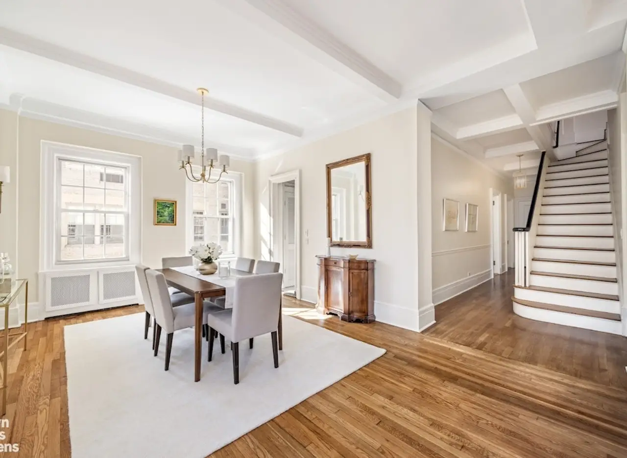 DUPLEX DREAMING ON PARK AVENUE If you're looking for an incredible amount of charm, character and high ceilings in a prime Park Avenue building, look no further! A private elevator landing leads you to your front door of this RENOVATED duplex 3 bedroom, 3 bathroom apartment. While the apartment faces East, one enjoys the peacefulness of not being right on the Avenue and does not sacrifice in natural sunlight. Upon walking into the entry gallery, you enter the impressive and sun-drenched double living room and dining room. The room measures about 36 feet. The apartment has 10'3" ceilings and a wood-burning fireplace, and new Panorama 6 over 6 double paned windows from three exposures. Off of the dining room, the windowed kitchen is in triple mint condition having been completed in 2020 and hardly ever used! The kitchen features Bosch appliances with a gas stove and a stacked and vented gas washer/dryer. Off the kitchen is a great home office. Currently the primary bedroom and bathroom ensuite with large soaking tub is located downstairs, but either bedroom upstairs could be used as the primary. On top of the stairs are two bright, well-proportioned bedrooms, each with bathrooms ensuite. This apartment features through wall air-conditioning, a cedar closet on the top of the stairs, beautiful hardwood floors and updated windowed bathrooms. Built in 1909, this preeminent pre-war co-op has a full-time doorman, live-in resident manager, private storage and a state-of-the-art fitness center. The building allows pets and 50% financing. There is a 2% flip tax paid by the buyer.