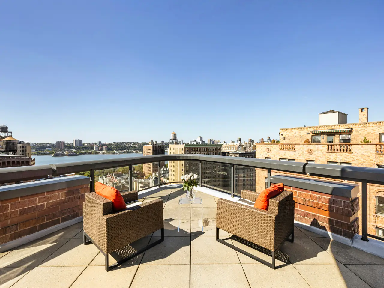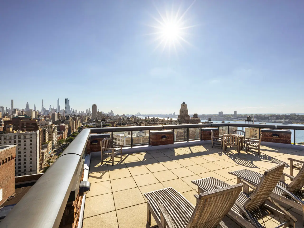 Elegant 4-Bedroom Residence with Expansive Terrace & River Views in Morningside Heights Welcome to #18B at the Straus Park Condominium. From the moment you arrive, this remarkable penthouse like home distinguishes itself with a rare and expansive wraparound terrace of nearly 1,000 square feet. Offering sweeping views of the Hudson River, the city skyline, and treetops below, it provides an extraordinary outdoor retreat that seamlessly extends the living experience. Whether for quiet mornings with a cup of coffee or evening gatherings under the open sky, this terrace is the true heart of the residence. Inside, a gracious foyer sets the tone before opening into an airy, open-concept living, dining, and kitchen area. With 10-foot ceilings and oversized windows the space invites natural light from three exposures, creating a bright and uplifting ambiance throughout the day. The great room, measuring more than 25 feet across, is both grand and versatile-ideal for elegant entertaining or tranquil evenings by the gas fireplace, with sunsets painting the horizon. The thoughtfully designed floor plan separates the private sleeping quarters from the main living space. The primary suite is a serene retreat, complete with four closets and a marble-clad spa five fixture bathroom featuring a deep soaking tub, a steam shower, and dual vanities. Three additional bedrooms are bright and well-proportioned, complemented by two full baths-one en suite and the other centrally located for convenience. Throughout the home, rich hardwood floors, abundant closet space, a washer/dryer, and abundant storage enhance both comfort and function. Life here is further elevated by the full-service amenities of Straus Park Condominium. Residents enjoy the attentiveness of a 24-hour doorman and concierge, a modern fitness center, a children's playroom, stroller and bike storage, and beautifully landscaped roof terraces that offer additional private escapes. Equally compelling is the home's location in Morningside Heights, a neighborhood defined by both natural beauty and cultural richness. This rare setting offers proximity to three signature parks: Riverside Park, with its waterfront promenades and open lawns; Morningside Park, with its dramatic cliffs, shaded paths, and hidden waterfall; and Central Park, just a short walk away, with its iconic landscapes, meadows, and cultural treasures. What's more is the intimacy of the famous Straus Park, just a block away. Along Broadway and Amsterdam, neighborhood cafés, bookshops, and restaurants add to the welcoming, small-village character of this Upper Manhattan enclave. This penthouse like residence is more than just a home-it is a rare combination of space, light, and tranquility, offering a refined lifestyle in one of Manhattan's most graceful and storied neighborhoods.
