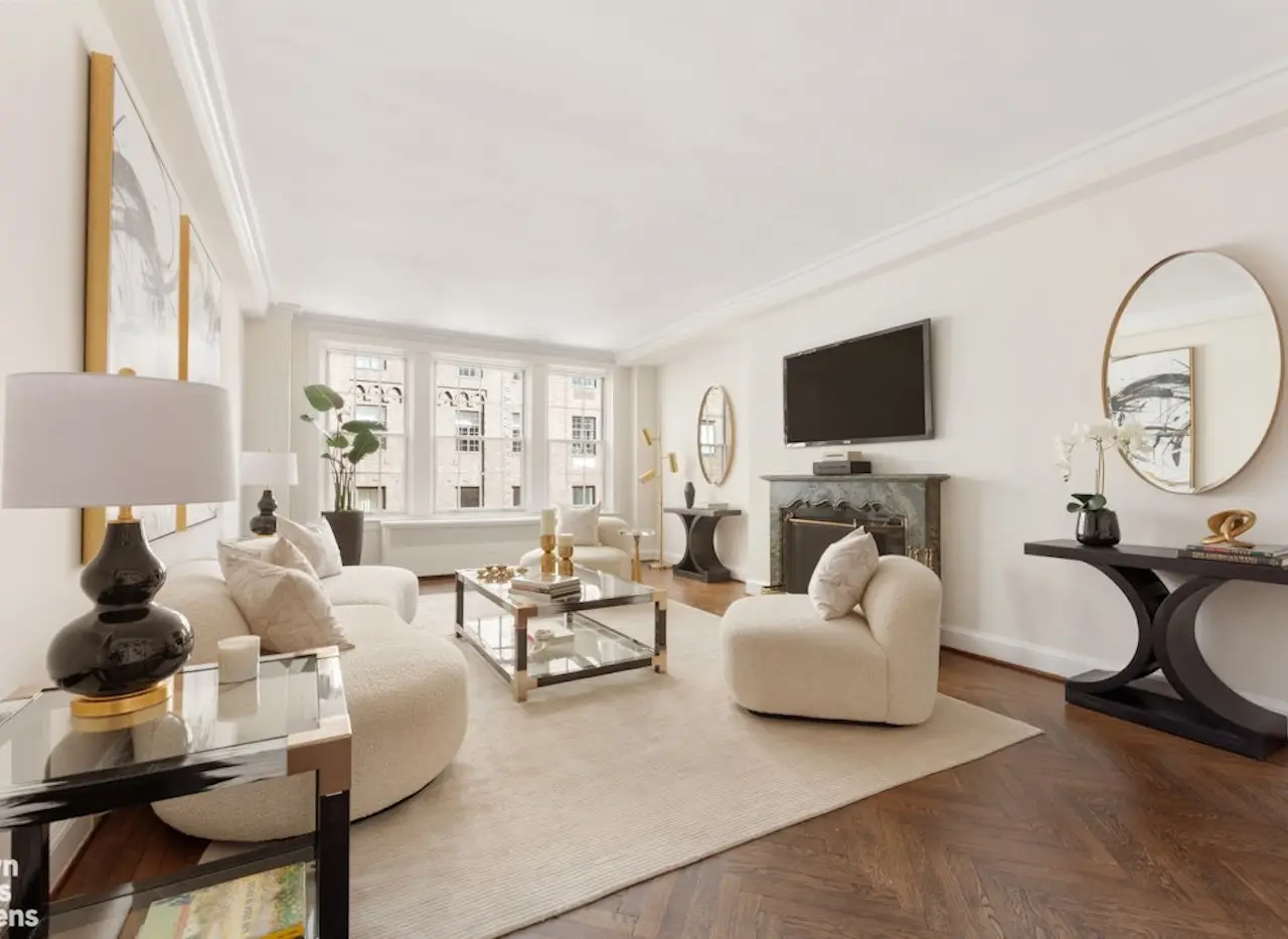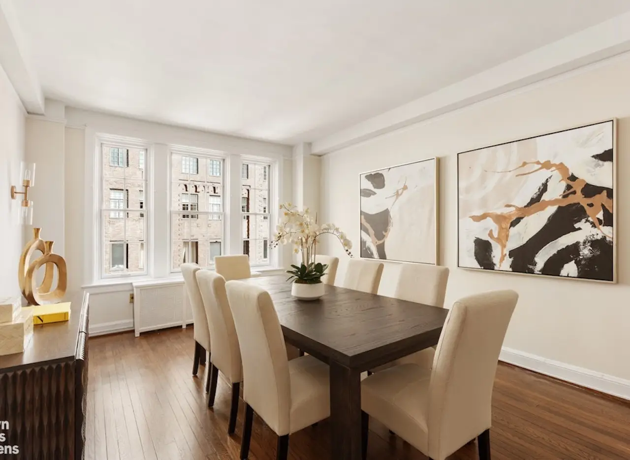 Elegant Park Avenue Pre-War 8-Room Estate This sunny, high-floor three-bedroom, three-bathroom apartment showcases the hallmark pre-war elegance and charm of one of Carnegie Hill's most desirable cooperatives. With open north and south exposures, every room enjoys abundant light and city views. A gracious gallery with arched doorways leads from a semi-private landing and provides access to all the major rooms. There is an expansive living room with original oak herringbone floors and wood burning fireplace, and a spacious formal dining room, currently configured as a den/office. The eat-in-kitchen, with butler's pantry has a separate laundry room with washer and vented dryer, as well as an adjacent staff room with full bath. The three main bedrooms all enjoy southern light, ample closets and generous proportions. 1088 Park Avenue, with its distinctive vaulted entrance and private courtyard garden, is a full-service, pre-war cooperative designed by renowned architect Mott B. Schmidt. The building has two renovated gyms, private storage, and is pet friendly. 50% financing is allowed and there is a 2% flip tax payable by buyer.