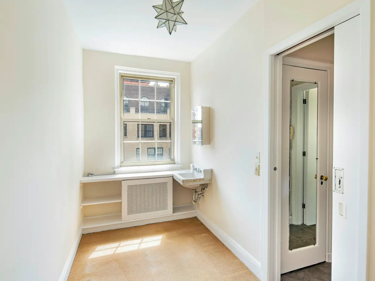 Bring your designer along to this elegant south facing six room apartment located in one of Rosario Candela's premier Park Avenue buildings built in 1927. Books published about New York Architecture give overwhelming praise to Candela's genius. His design of buildings with generous proportions, high ceilings, and stunning layouts are prized and emulated by today's architects. This apartment was once the main part of a ten room apartment and has large scale rooms not typical for a Classic Six room apartment. Entering the gallery there is light poring in from every direction and 10'8" ceilings and flame oak floors throughout. There are two WBFP, one in the glorious 17ft X 27ft living room and the other in the library or second bedroom. The private quarters feature a corner primary bedroom and a hallway that connects to the library or second bedroom both with bath en-suite. Centered off the gallery is a glamorous formal dining room with an oversized east facing window, next to a sunny eat-in kitchen and pantry. In addition there is a maids room and bath. There is an additional outside staff room offered separately.