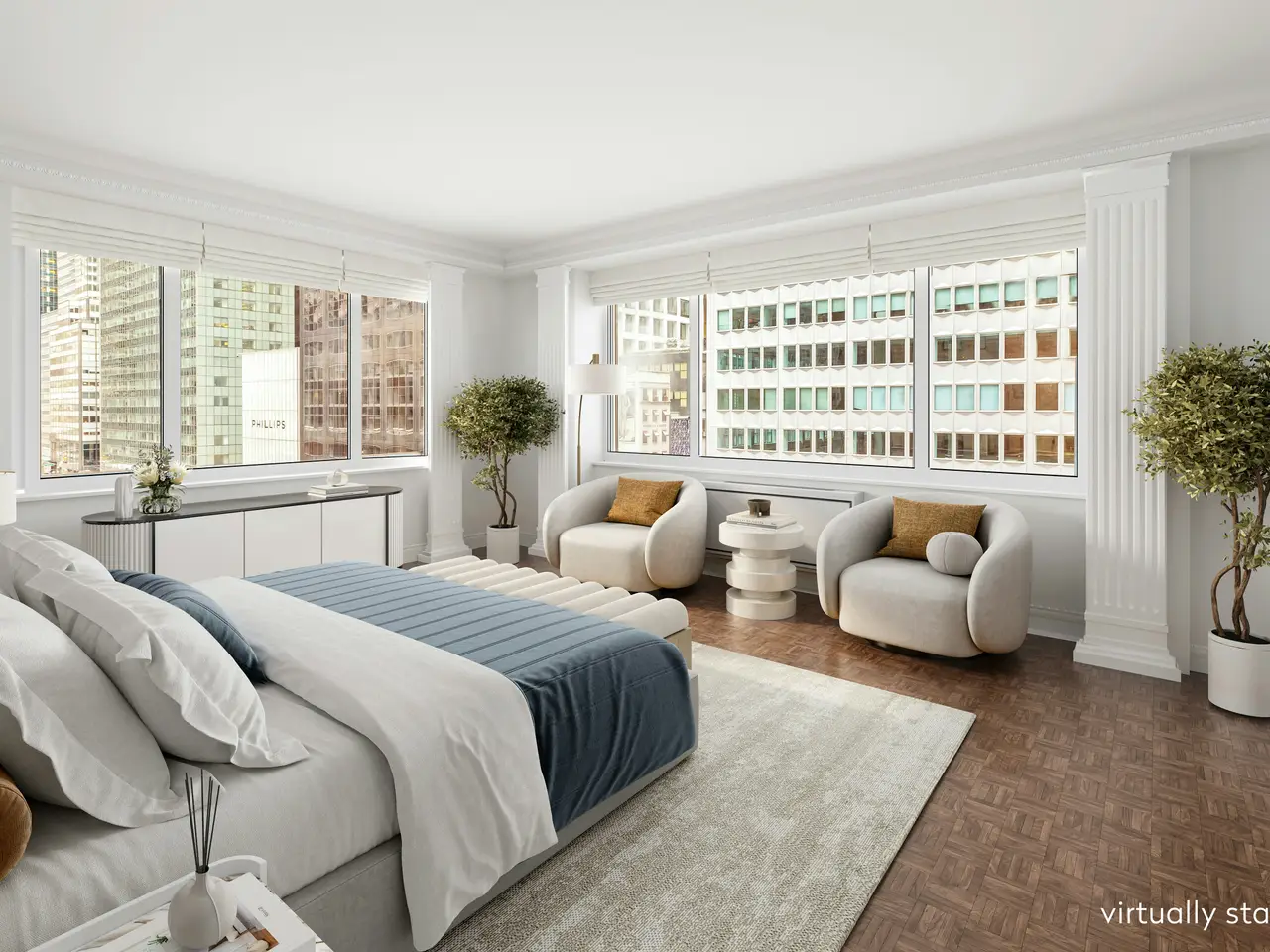 A Long Family Lineage Elegant Six-Room Co-op Apartment on Park Avenue A prominent international businessman and philanthropist and owner of a global retail empire in the 1930's known for his philanthropic endeavors, his family gained international recognition and lived around the world- including this very apartment. Apartment 7A Discover luxury living in this exceptional corner six-room, 3 bedroom, 3 bathroom co-op residence, perfectly situated overlooking Park Avenue with views south of the Met Life Building and west across the avenue leading to 57th Street. This home boasts two generously sized bedrooms, three full baths, and a charming staff room with full bath that can be easily transformed into a third bedroom, home office or guest space.. The expansive great room, adorned with a fireplace, provides an ideal setting for both entertaining and everyday living. High ceilings, classic architectural details, and an abundance of natural light create a timeless and sophisticated ambiance throughout. The kitchen is perfect for culinary enthusiasts, gracefully flowing into the pin-drop quiet and very large formal dining room. With its prime location and elegant features, this apartment offers a rare opportunity to enjoy the finest in city living. Incorporate your vision to create the home of your dreams. 475 Park Avenue. Built in 1908 the 14-story cooperative was originally constructed as duplex apartments reinvented in 1959 with simplex units and a white brick facade. Staff includes a 24-hour doorman, resident manager, porter and elevator man. The cooperative permits 50% financing and pied a terres are considered.