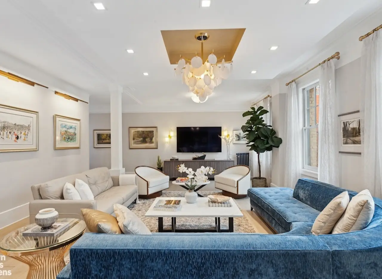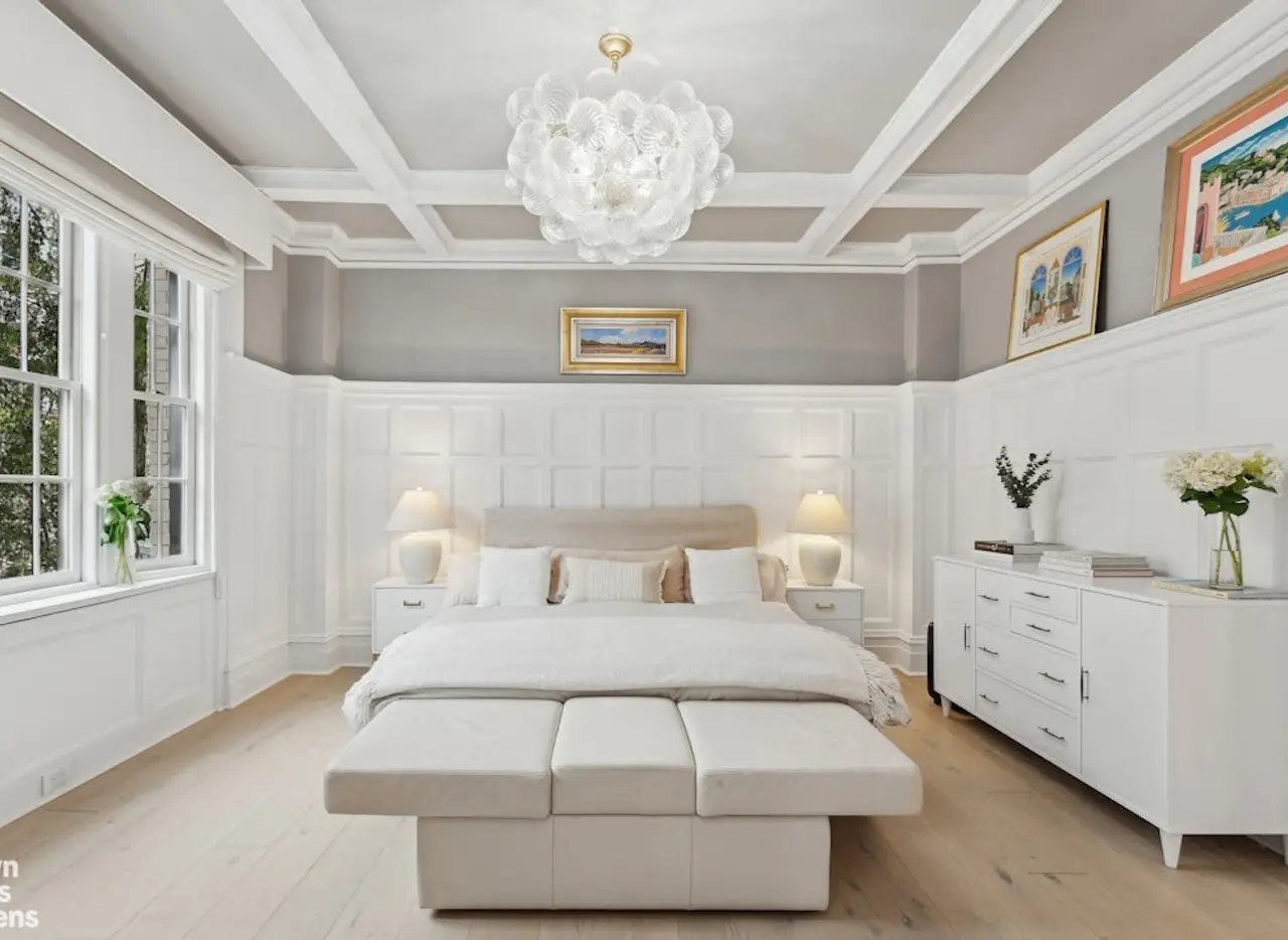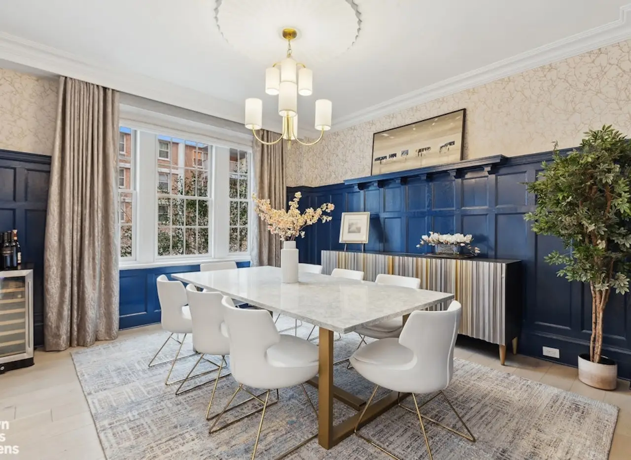 A truly exceptional opportunity awaits in this elegantly renovated 4-bedroom + home office, 3-bathroom duplex co-op, just half a block from Central Park. Blending pre-war charm with modern luxury, this stunning 10-room residence spans the 4th and 5th floors, offering an exquisite Parisian-style layout. Upon entering the top-floor foyer, you're greeted by double coat closets and a striking stained-glass window above the staircase, setting the stage for elegance. The gallery hall leads to an exceptional double-wide living room, bathed in natural light from oversized south-facing windows. Flowing seamlessly into the oak-paneled dining room-complete with a charming bay window-this space is perfect for both grand entertaining and intimate gatherings. The heart of this home is the beautifully renovated, windowed eat-in kitchen. Thoughtfully designed, it features custom floor-to-ceiling cabinetry, Bosch suite of appliances, and exquisite quartz countertops. A center island and banquette seating provide ample workspace and dining options, while a rare floor-to-ceiling pantry-spanning nearly ten feet-offers unmatched storage for every kitchen necessity. Every detail of this chef's kitchen has been custom-crafted for style and efficiency. One the same floor, a classic library boasts floor-to-ceiling built-in shelving and additional closet space. High ceilings, tree-lined street views, recessed lighting, and luminous chandeliers add to the home's refined atmosphere. Brand-new wide-plank oak hardwood floors further enhance its sophistication. Downstairs, the private bedroom wing serves as a serene retreat. The south-facing primary suite includes a spacious sitting room and a beautifully appointed bedroom, cleverly separated by bi-fold French doors to allow for flexible use. Oversized windows, a Juliet balcony, and a charming bay window bathe the space in natural light. The primary bath is a work of art, featuring a custom-designed black-and-white origami-inspired glass mosaic, dolomite and emperador marble, satin brass fixtures by Brizo, a porcelain double-wide sink by Lacava, a custom wood vanity, a rain shower fixture, and a privacy glass-enclosed Toto toilet. Two more bedrooms add comfort to this level, while a third flexible bedroom or office provides further versatility. A full windowed guest bath boasts decorative tiling, polished high-gloss onyx fixtures by Brizo, swooping marble countertops, a custom wood vanity, a Toto toilet, and an oversized shower, exuding understated luxury. A third windowed full bath features black-and-white pebble tiles, Nero Marquina marble, Rubinit fixtures, and another oversized shower, ensuring every detail of this residence is designed for comfort and style. This masterfully gut-renovated home was designed by Suzanne Cook, one of the Upper West Side's premier interior designers. Built in 1909 by Norman Tishman, The Norman is a well-maintained, pet-friendly building offering the convenience of a live-in superintendent and financing options up to 80%. Nestled among some of the city's most sought-after amenities-including Symphony Space, Whole Foods, Trader Joe's, the Children's Museum, and multiple subway lines (1/2/3 and B/C)-this historic gem is moments from Central Park's tennis courts, playgrounds, and the Jackie Kennedy Onassis Reservoir. Additional storage is included.