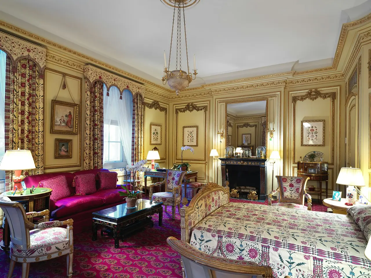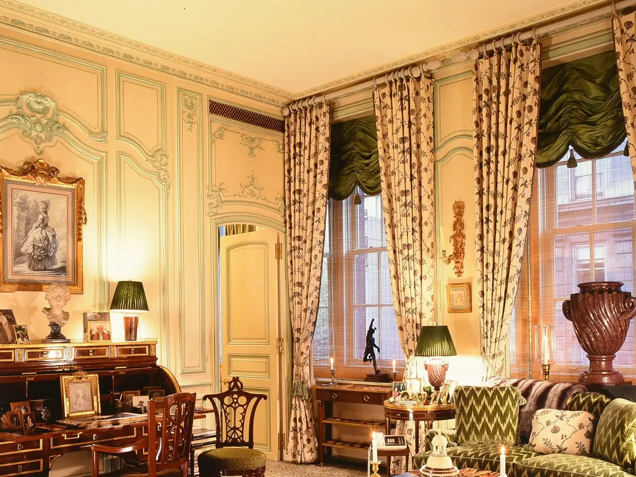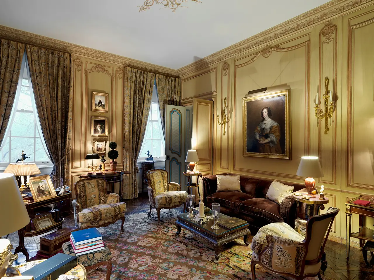 Arguably one of the most important residences on Fifth Avenue, this exceptionally grand and architecturally important 18-room home is being offered for sale for the first time in over 60 years. It occupies an entire private floor in one of Fifth Avenue's most sought-after white glove, limestone-clad cooperatives on the northeast corner of East 63rd Street and Fifth Avenue. The home has 100 feet of frontage facing Central Park, and an impressive enfilade of elegant entertainment rooms spanning over 70 feet along Fifth Avenue. Oversized windows capture beautiful views of Central Park and the Midtown Manhattan skyline. A private elevator landing opens onto an impressive and stately 45-foot gallery with Parquet de Versailles floors and a wood-burning fireplace. The gallery provides access to all of the entertainment rooms of the home. The grand drawing room, formal dining room and inviting library, all have Parquet de Versailles floors, soaring 12-foot ceilings, extraordinary Louis the XV and XVI marble mantles and outstanding Boiseries that were carefully curated from important private homes in Europe. The private bedroom suites are situated in the south wing of the residence, and include five full bedrooms, each with an en-suite bathroom, as well as a south facing study that could easily be converted into a sixth bedroom. The generous primary bedroom suite occupies the front south corner of the home, and is flooded with sunlight throughout the day. There are three additional fireplaces in the bedroom wing of the home, one in each of the south-facing bedrooms. Altogether there are six wood burning fireplaces in the apartment. The north wing of the residence offers over 700 square feet of flexible and expansive kitchen space, and an additional adjacent family room for casual dining. Two double staff bedrooms, one full bath and one half bath, complete this wing of the home. In addition, and available for sale separately for $2.5M, there is a guest/staff apartment on the first level of the building. The apartment faces south, east and north. It consists of a living room and three full bedrooms, each having an en-suite bathroom. There is also a fourth bathroom located adjacent to the living room. 820 Fifth Avenue is one of Fifth Avenue's most exclusive addresses. It was built and designed in 1916 by Starrett & Van Vleck in the Neo-Italian Renaissance Palazzo style. Residents enjoy the highest level of privacy, service and security. There are also a private laundry room, wine cellar, large storage room and file room located in the basement levels of building. There is a 3 percent flip tax payable by the buyer, and renovations are now permitted throughout the year.