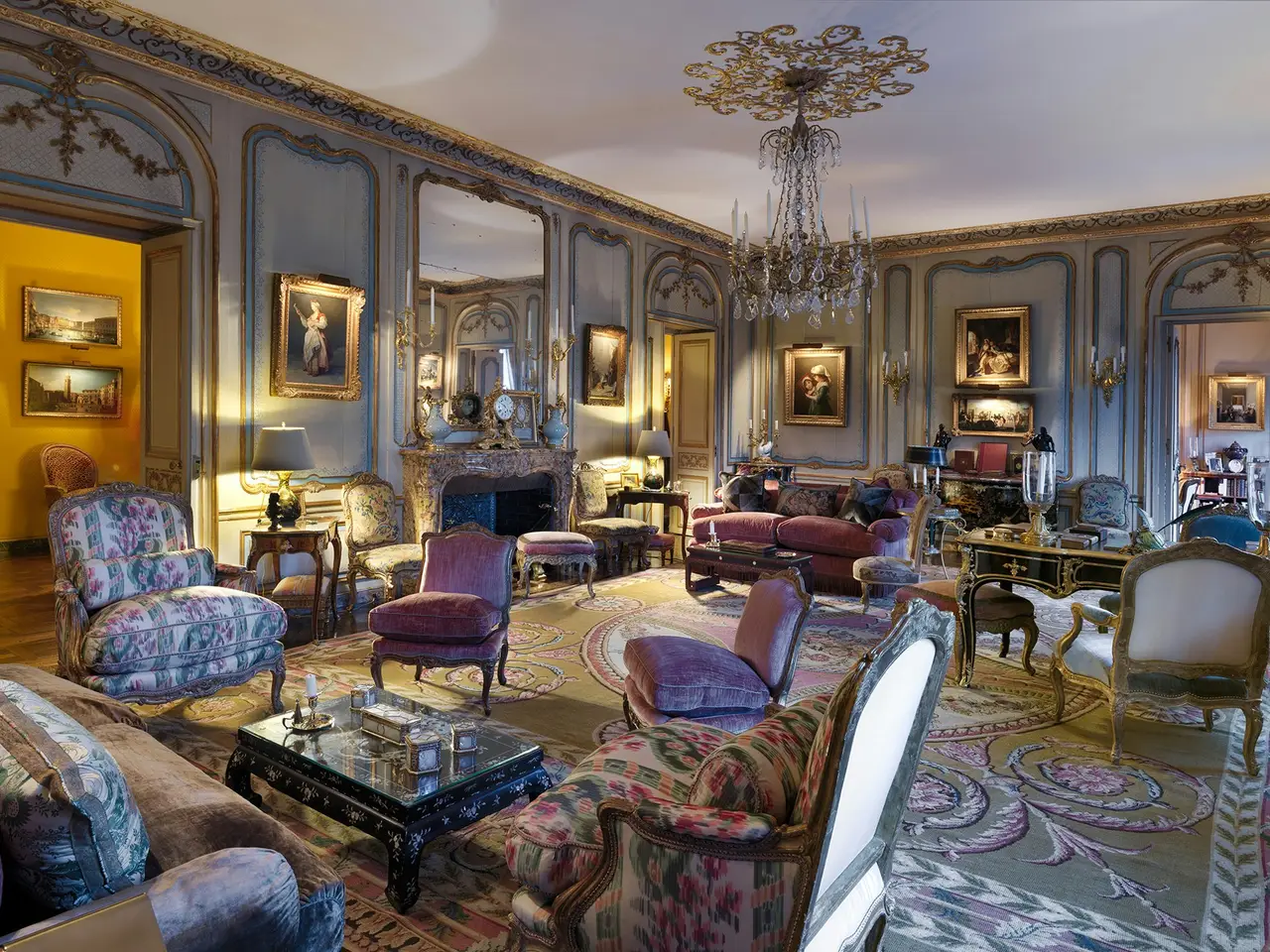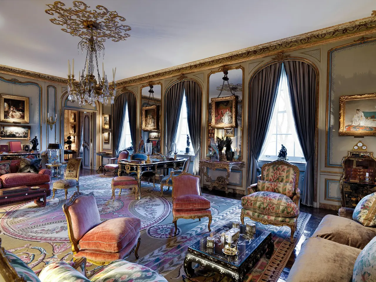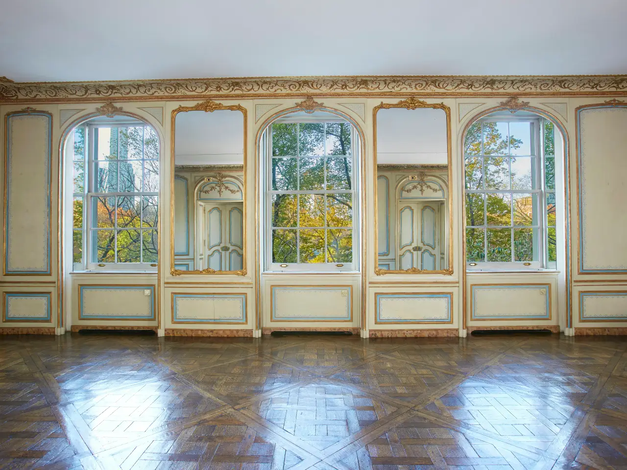 Arguably one of the most important residences on Fifth Avenue, this exceptionally grand and architecturally important 18-room home is being offered for sale for the first time in over 60 years. It occupies an entire private floor in one of Fifth Avenue's most sought-after white glove, limestone-clad cooperatives on the northeast corner of East 63rd Street and Fifth Avenue. The home has 100 feet of frontage facing Central Park, and an impressive enfilade of elegant entertainment rooms spanning over 70 feet along Fifth Avenue. Oversized windows capture beautiful views of Central Park and the Midtown Manhattan skyline. A private elevator landing opens onto an impressive and stately 45-foot gallery with Parquet de Versailles floors and a wood-burning fireplace. The gallery provides access to all of the entertainment rooms of the home. The grand drawing room, formal dining room and inviting library, all have Parquet de Versailles floors, soaring 12-foot ceilings, extraordinary Louis the XV and XVI marble mantles and outstanding Boiseries that were carefully curated from important private homes in Europe. The private bedroom suites are situated in the south wing of the residence, and include five full bedrooms, each with an en-suite bathroom, as well as a south facing study that could easily be converted into a sixth bedroom. The generous primary bedroom suite occupies the front south corner of the home, and is flooded with sunlight throughout the day. There are three additional fireplaces in the bedroom wing of the home, one in each of the south-facing bedrooms. Altogether there are six wood burning fireplaces in the apartment. The north wing of the residence offers over 700 square feet of flexible and expansive kitchen space, and an additional adjacent family room for casual dining. Two double staff bedrooms, one full bath and one half bath, complete this wing of the home. In addition, and available for sale separately for $2.5M, there is a guest/staff apartment on the first level of the building. The apartment faces south, east and north. It consists of a living room and three full bedrooms, each having an en-suite bathroom. There is also a fourth bathroom located adjacent to the living room. 820 Fifth Avenue is one of Fifth Avenue's most exclusive addresses. It was built and designed in 1916 by Starrett & Van Vleck in the Neo-Italian Renaissance Palazzo style. Residents enjoy the highest level of privacy, service and security. There are also a private laundry room, wine cellar, large storage room and file room located in the basement levels of building. There is a 3 percent flip tax payable by the buyer, and renovations are now permitted throughout the year.