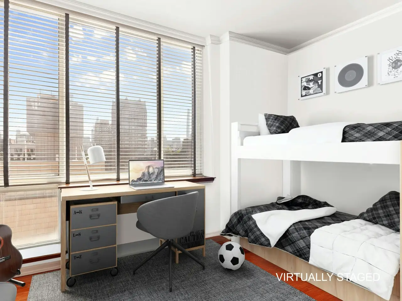 Floor-to-ceiling windows with panoramic skyline views