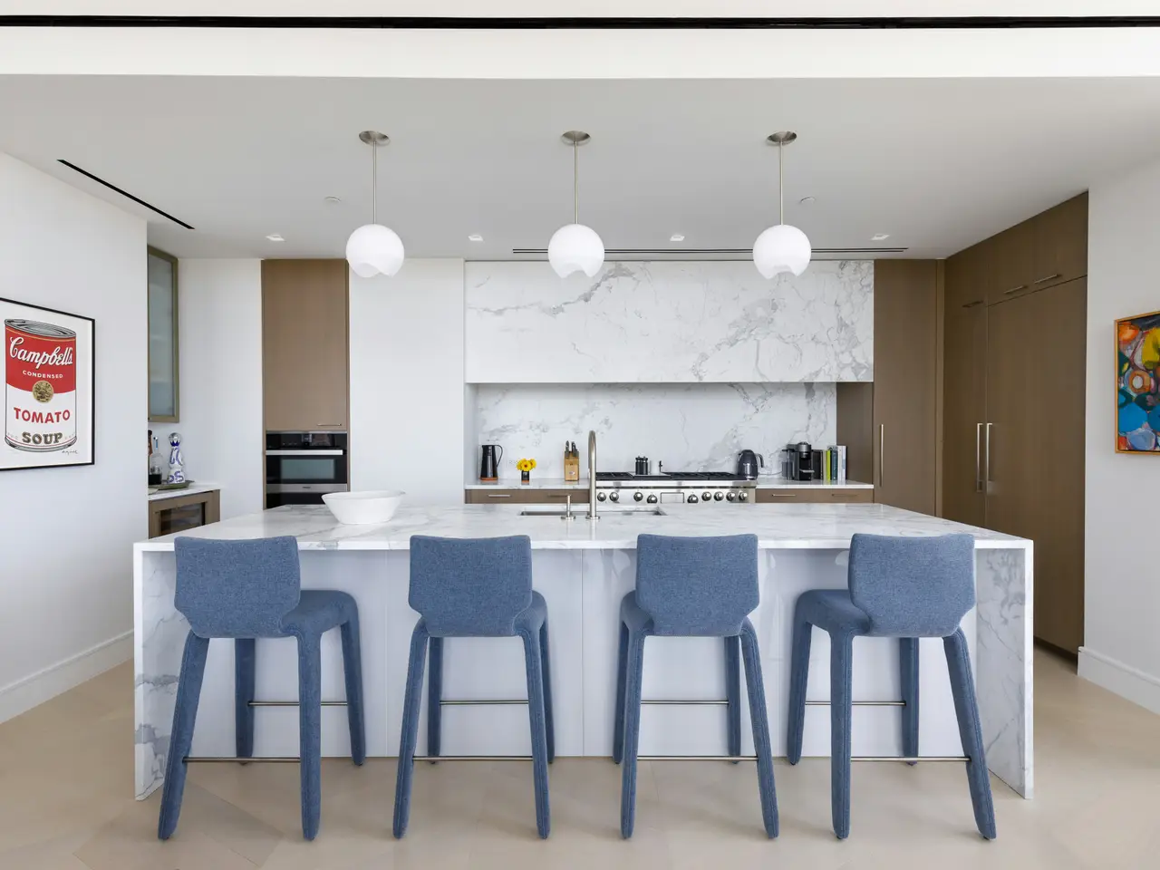 First RESALE of the BEST high floor 3-bedroom residence. A grand space with breathtaking Central Park, Hudson River, open City views with custom designer upgrades throughout! Enter this nearly 2,700 square foot, exquisite residence via a semi-private landing shared with only one other apartment on the floor. An elegant entry gallery sets the tone for this stunning home, with soaring 10 foot ceilings, 3 gigantic exposures, an enormous and show-stopping living space and 3 bedrooms and 3.5 bathrooms. Upon entering the corner living and dining room, stunning North and Eastern light and Central Park views from floor-to-ceiling glass windows will take your breath away! Conveniently open to the dining area is the fabulous chef's eat-in kitchen, complete with an impressive Calacatta island, and custom white oak cabinetry with satin nickel hardware. Top-of-the-line appliances include 2 Miele dishwashers, a Sub-Zero refrigerator, freezer and wine cooler, an 8-burner Wolf stove, a Miele speed oven, a warming drawer, and a fabulous marble, vented hood. Situated on the North West corner of the home is the luxurious primary bedroom suite, overlooking the Hudson River, with a custom outfitted walk-in closet, two supplemental closets, and a spa-like primary bathroom. The windowed primary bathroom is a true tranquil sanctuary, featuring radiant heated flooring made of white Iceberg marble, a lacquered vanity with double sinks, a deep soaking tub, a rain shower with a marble bench, a separate water closet, and polished nickel sink and bathroom finishes by Fantini. There are two additional spacious and well-proportioned bedrooms, each offering an en-suite bathroom and custom fitted and generous closet space. One bedroom enjoys Hudson River views, while the other has equally special views of Central Park. Completing this spectacular home is a glamorous jewel box powder room featuring a custom mirror and Pearl and Saint Laurent marble custom mosaic floors. The home also includes a separate laundry room with a vented washer/dryer and a sink, a state of the art smart-home system, and multiple zones of central air conditioning. Additional fabulous upgrades made by the owners include custom built-out closets throughout, installation of ceiling molding and new baseboards, stunning designer light fixtures, Lutron lighting system, electronic shades in all rooms (with blackout in the bedrooms), Sonos music system speakers in the primary bedroom suite and living room (surround sound with subwoofer), and an integrated living room TV sound system. Two bike storage licenses are offered with the sale. Please note that there is a working capital contribution equal to one month's common charges payable by the buyer. 200 Amsterdam is an iconic new condominium designed by Elkus Manfredi and CetraRuddy, perfectly positioned in Lincoln Square, just moments from Lincoln Center, world-class dining, and luxury shopping. It features 3 floors of indoor and outdoor amenities, including a resort level Spa featuring a 75" saltwater pool, rejuvenation rooms with steam and sauna, treatment rooms, a top-of-the-line fitness center curated by The Write Fit with yoga and pilates studios, a golf simulator, "The Club" with a landscaped terrace, lounge and dining room, billiards table, library with grand piano, teleconference rooms, soundproofed Rehearsal Room, and a children's playroom featuring a performance stage. 200 Amsterdam's level of service is unmatched featuring a 24-hour doorman and concierge, lifestyle management services provided by LIVunLtd, and a live-in resident manager.