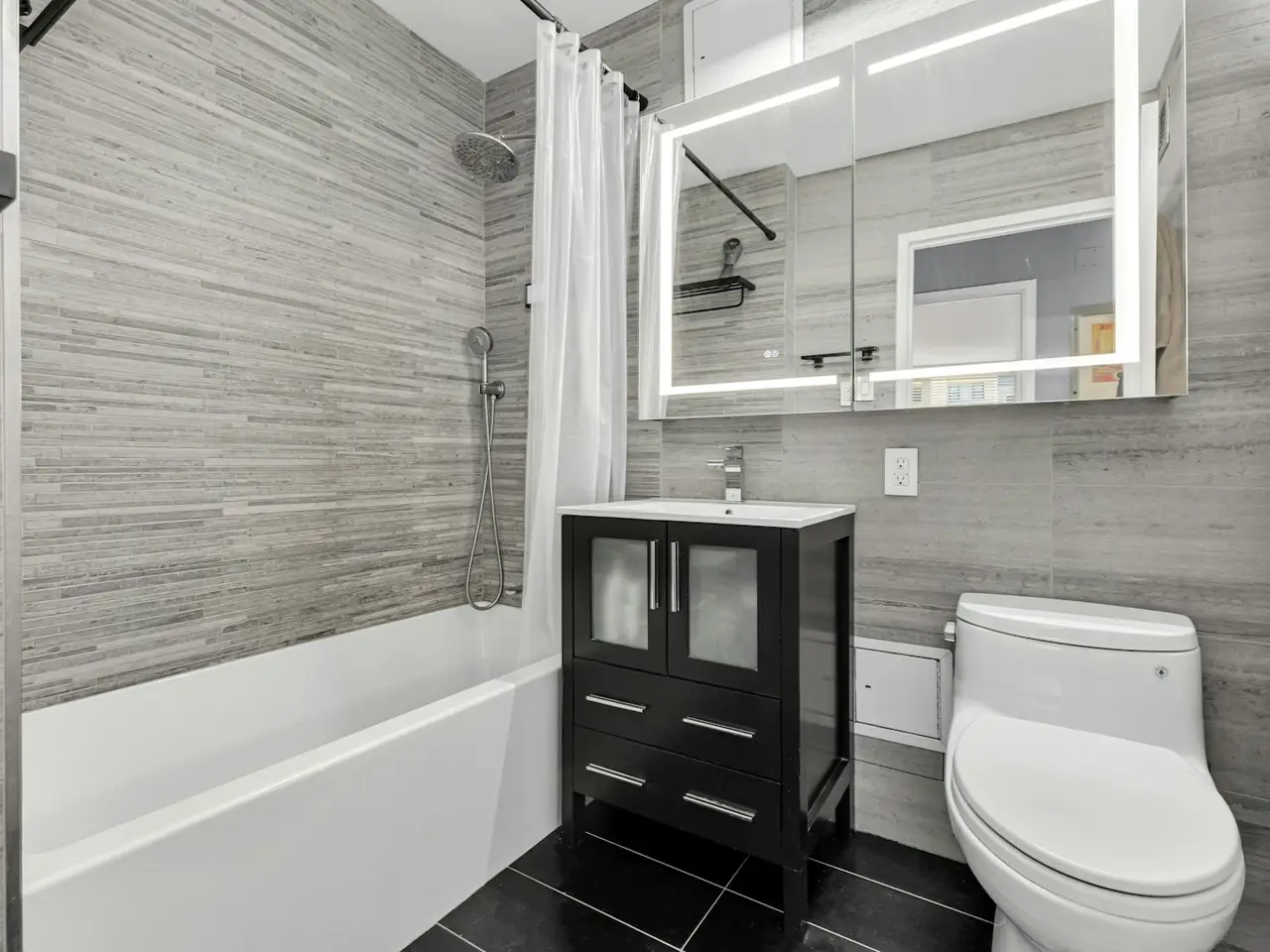 Introducing this fully renovated north/west corner one bedroom in the famed Sheffield building. This tastefully designed home has custom natural wood cabinetry in the living room below the windows creating a clean sleek look, ideal for storage. All the closets are are outfitted with auto-on lights when opening the doors, and new hardwood flooring. The custom kitchen with a window has stone countertops with Filtered cold water, and the entire bathroom is outfitted with Italian travertine stone. The bath is includes Moen Digital shower controller that can be engaged manually by app and voice command, with battery back up, and digitally controlled water temperature and flow of water via overhead and/or handheld shower. This is a tech savvy home, and here are some of the additional features: Overhead soffit lighting built into both living room and bedroom, all light switches are "smart" and have dimmers, with remote access. The owner installed a new electrical panel, with new stem plumbing throughout kitchen and bath. Its a must see! This unique building offers so much, it has amenity space on the 57th, 58th and 59th floors with a year round heated pool, patios throughout the top floors, two resident lounges, also available for rent, a fully equipped gym with top of the line machines, a dance studio, a play room, lockers with saunas and steam rooms, and BBQ terrace. The Sheffield condominium is centrally located in the Columbus Circle area, within walking distance to from Lincoln center, the theatre district and two blocks from Central Park. There are fine restaurants in the Time Warner shopping Mall, Whole Foods, and eclectic varied cuisines on 9th Ave. Major trains are steps away