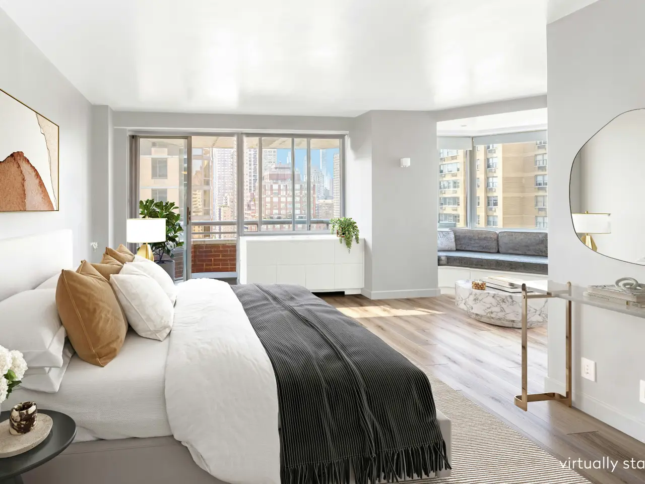 Expansive and Glamorous UES Duplex with Private Outdoor Space Measuring over 3,000 interior square feet and boasting an unbelievable five private outdoor spaces, this sensational duplex combines the scale of a townhouse with the light, views, and elevation of a high-floor home on the Upper East Side-housed in an impeccably run full-service condo with amenities. Every room opens to greenery or skyline vistas. Balconies extend from each bedroom, with additional terraces off the living and dining rooms-rare in any Manhattan residence. To the west, tree-lined 84th Street offers a glimpse of the Park. The main level is designed for entertaining, with fluid transitions that define the living, dining, lounge, and kitchen spaces while preserving an airy, loft-like openness. Light and views flow poetically across the rooms and out to multiple terraces-ideal for relaxing in the sun or grilling. At the heart of the home, the chef's kitchen is anchored by an oversized L-shaped island with seating for six, complemented by a banquette dining nook. Dark-stained cabinetry with stainless-steel accents conceals an appliance garage, built-in spice rack, and abundant storage. Appliances include a Sub-Zero 30" Classic Refrigerator, Wolf six-burner range and oven, Miele dishwasher, and multiple Sub-Zero beverage drawers. The adjoining formal dining room spans nearly 18 feet and opens to a balcony with an electric grill. With space for large gatherings and two Sub-Zero wine refrigerators, the main level was designed for entertaining. Completing this level is a secondary suite generous enough to rival many primaries. This flexible suite includes a home office with built-ins and a spacious guest bedroom or alternative primary with sitting area. The floor also features a discreet powder room and an additional bedroom with a full bath and dressing room. A dramatic floating staircase with a sculptural steel railing anchors the living space and leads gracefully to the upper level, basking in double-height city views. On the upper landing, a built-in desk for two, bathed in natural light, serves as a central home office hub, while a proper laundry closet with a Miele washer/dryer and shelving adds convenience. The primary suite is a private sanctuary of exceptional scale, framed by a terrace and a windowed seating area that invites slower starts to the day-perfect for coffee, reading, or even a light-filled mini gym or lounge. Expansive custom storage, including a walk-in closet, enhances both functionality and elegance. Two full bathrooms complete this retreat, a rare luxury in any home. One offers a Jacuzzi soaking tub and glass stall shower set beside a large window overlooking the city. The second features a walk-in shower and generous counter space. Both include radiant heated floors and sophisticated tilework. Across the landing, another generous bedroom with a windowed en-suite bathroom and excellent storage completes the upper level. Additional highlights include hammered metal sinks, curated architectural lighting, City Quiet Windows in the bedrooms, a generous pantry, and multiple walk-in closets. 401 East 84th Street offers the convenience of a full-time staff and resident manager, paired with a collection of amenities- all with no additional amenity fees. Residents enjoy a rooftop deck, fitness center, laundry facilities, children's playroom, and a versatile event space. The lobby was newly updated as well. The Dunhill all moments from the Q train, the neighborhood's dining scene, Carl Schurz Park, and top-rated private and public schools. Note: Buyer responsible for a reserve fund contribution equal to three months of common charges, due at purchase application submission. This sale uniquely includes ownership of 4 private storage units.