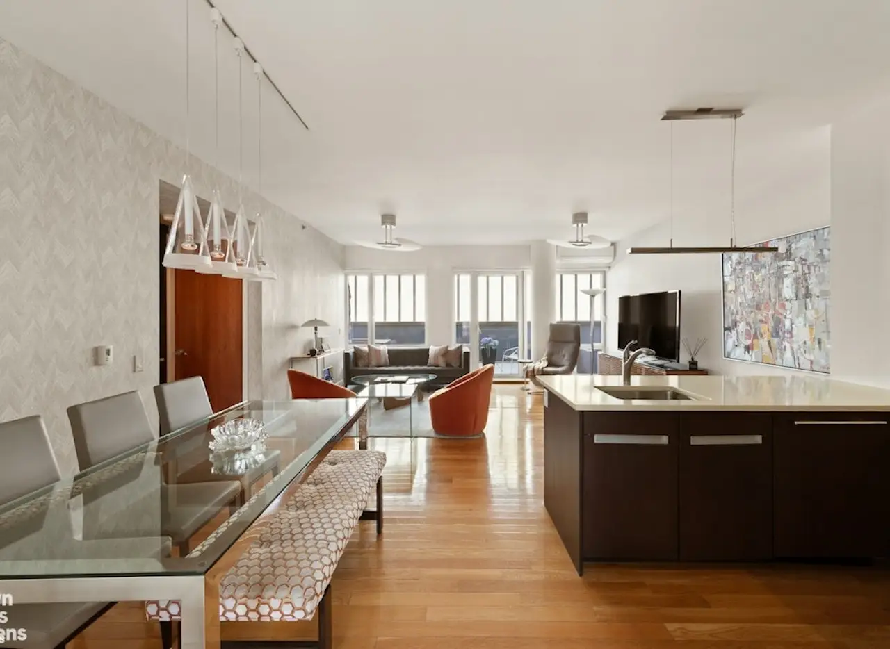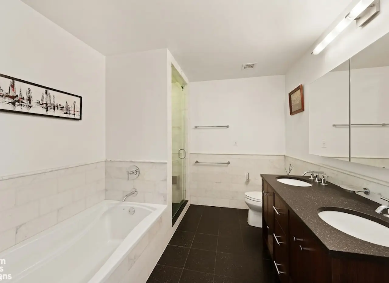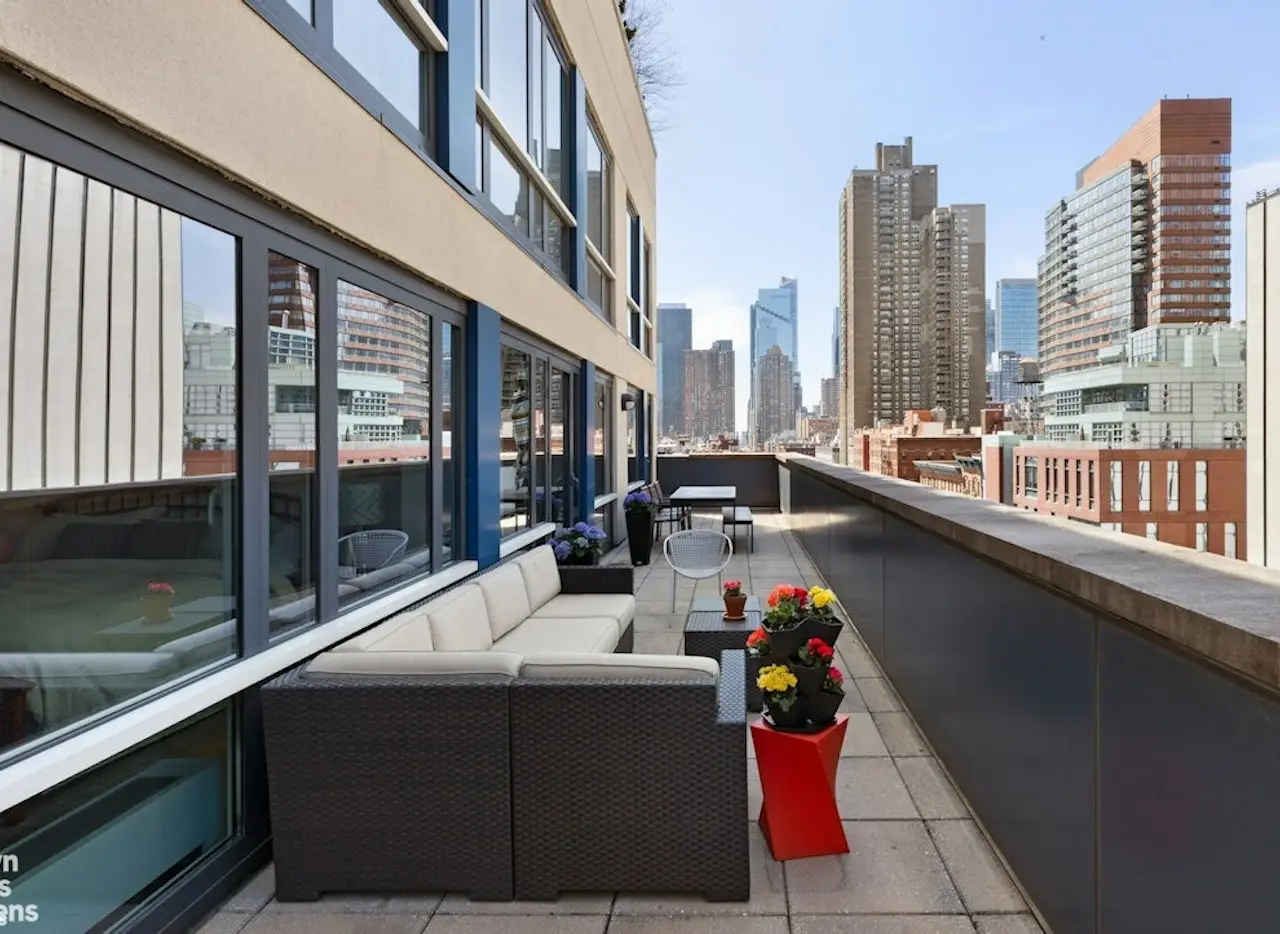 OVER 700sf OF OUTDOOR SPACE INCLUDING MASSIVE 588 sf MAIN TERRACE Presenting Apartment #7A, a gorgeous sun-drenched 3 bedroom, 3.5 bathroom home with magnificent outdoor space. This perfectly maintained and move-in ready apartment is an absolute showpiece. Step into an elegant entry hallway, lined with large dramatic windows, that leads to an impressive and stylish living room. The space is flooded with light from a wall of windows, leading directly to the remarkable 588sf main terrace, ideal for hosting impressive gatherings. In total, the home boasts over 700 square feet of outdoor space. The spacious kitchen, open to the living room, features top-of-the-line Viking and Bosch stainless steel appliances, a Caesarstone countertop, and sleek Poggenpohl cabinetry. The generous dining area is perfectly located adjacent to the living room. The oversized primary bedroom includes not one but two expansive walk-in closets. The luxurious primary bathroom offers a soaking tub, steam shower, and double sinks. The second bedroom has direct access to the main terrace, while the third bedroom enjoys its own private balcony with breathtaking city views. Both of the secondary bedrooms feature en-suite bathrooms, and there's a stylish powder room for guests. All bathrooms are equipped with radiant heated floors. Every room is filled with wonderful natural light and other highlights include a W/D, an updated mini-split air conditioning system, remote-controlled shades, 9" ceilings, a wet bar, and beautiful oak flooring. Plus, a large deeded storage unit is included with the apartment! Griffin Court is a full-service, pet-friendly condominium offering a 24-hour doorman, live-in superintendent, state-of-the-art fitness center, and a beautifully landscaped 8,000+sf, two-level common courtyard. Ideally located in prime Hell's Kitchen, this residence is close to top restaurants, Columbus Circle, Central Park, supermarkets and multiple transportation options, including access to the A/C/E/B/D/N/Q/R/W/1 trains.