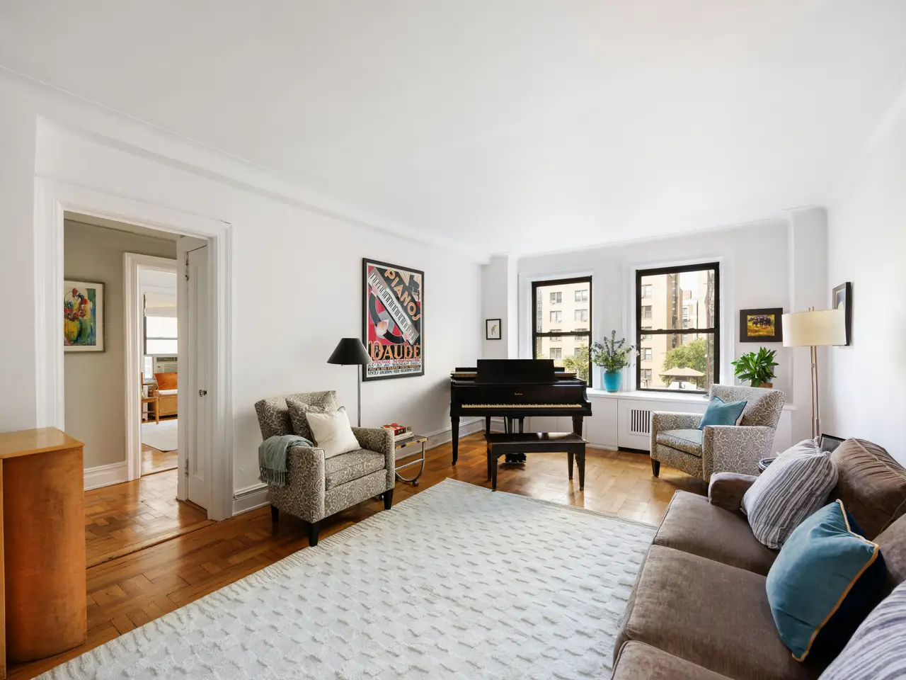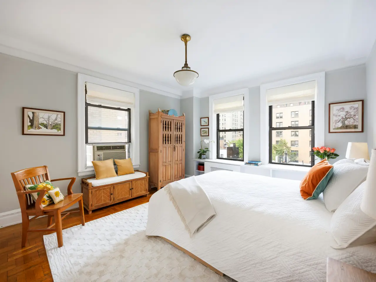 Discover the charm and elegance of this gracious corner four bedroom residence at the prestigious 875 West End Avenue, designed by architect Rosario Candela. This classic six room, now four bedrooms, epitomizes sophistication and comfort. Apartment 6E boasts sprawling proportions, stunning pre-war details, generous storage, and three lovely exposures facing North, West, and South. The elegant foyer with a coat closet welcomes you into the oversized approx. 13 x 30'6" living room with charming Northern tree-lined views. Adjacent to the expansive living room and set in their own private wing, you'll find two generously sized bedrooms and a beautifully appointed, windowed bathroom. Both bedrooms offer ample closet space and built-in storage, with the primary bedroom positioned on a sunny corner, providing delightful North/West views. This side of the home also includes two convenient linen closets for added storage. On the opposite side of the apartment, you'll find a dining area that seamlessly connects to a bright, windowed kitchen-ideal for intimate gatherings or entertaining. The kitchen is fully equipped with ample storage and well-designed preparation stations. This side of the apartment also features 2 additional bedrooms: one situated next to the dining area, and one off the kitchen, which includes a newly renovated en-suite full bathroom. 875 West End Avenue epitomizes New York elegance and luxury, designed in the Italian Renaissance palazzo style by the renowned architect Rosario Candela. Completed in 1924, and celebrating its 100 year anniversary, this 15-story building boasts a brick fa ade and a grand lobby adorned with marble walls, terrazzo floors, intricately carved plaster ceilings, and stunning stained-glass windows. Residents enjoy a full range of services, including a full-time doorman, a fitness center with natural light (with a $125 annual fee), a spacious laundry room, storage bins (when available for a $45 monthly fee), bicycle storage (when available for a $75 annual fee), a community center, and a playroom. The building is also pet-friendly. This home is perfectly positioned in the charming Upper West Side, with easy access to Riverside Park, major transportation lines, and a vibrant array of dining and shopping options. Please note, 75% financing is allowed, there is an assessment of an energy surcharge of $27.28 until 12/2024.