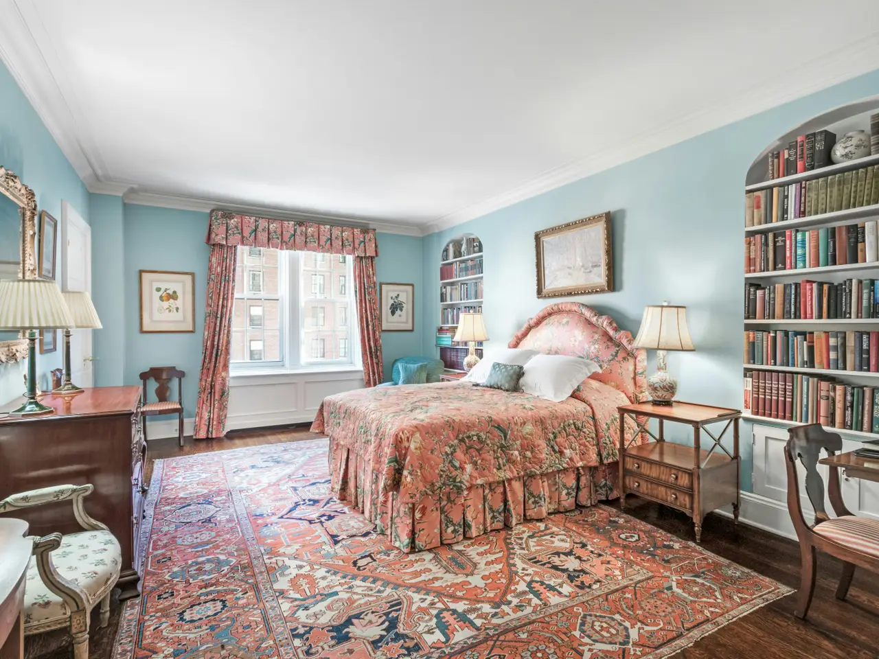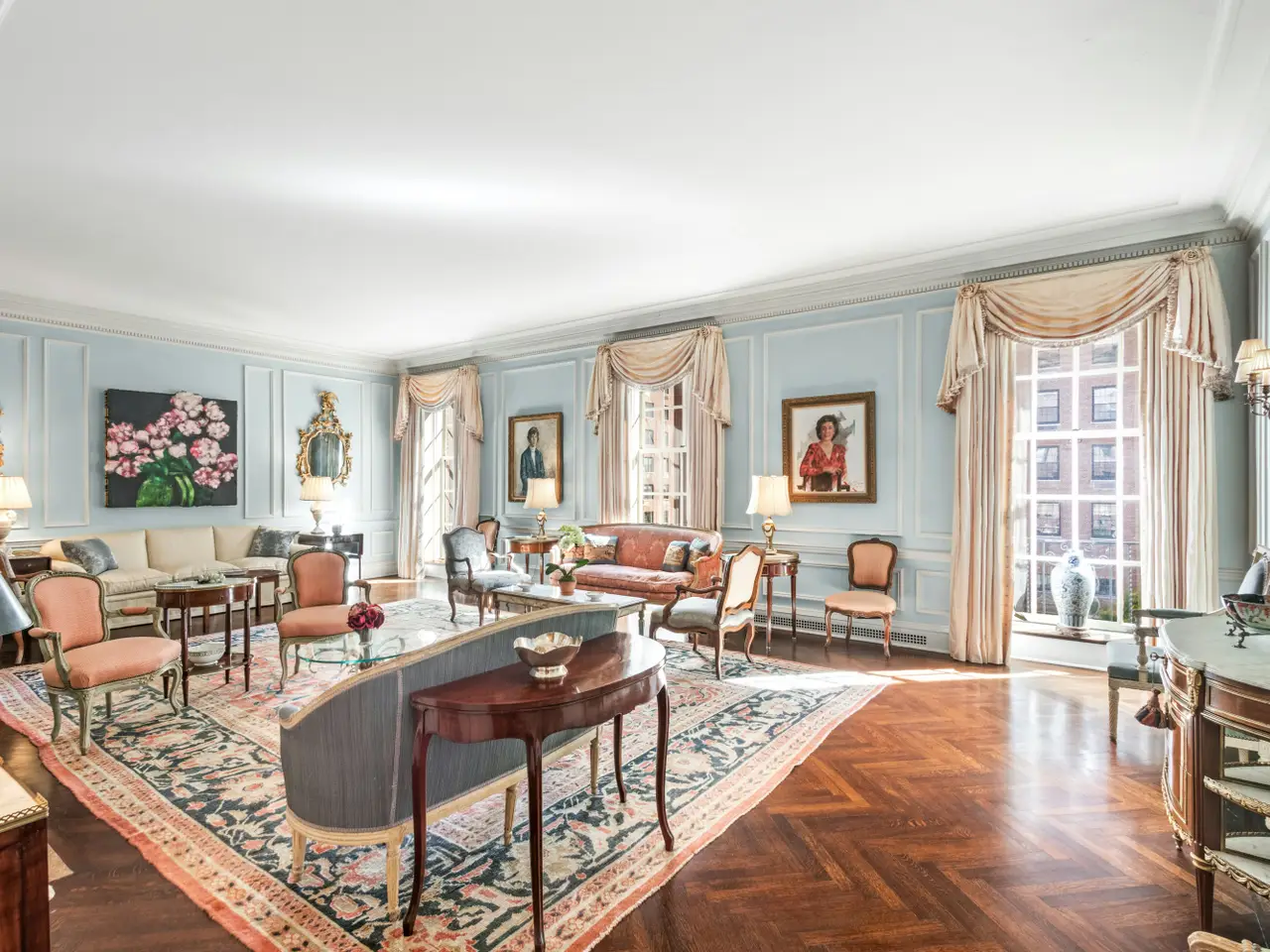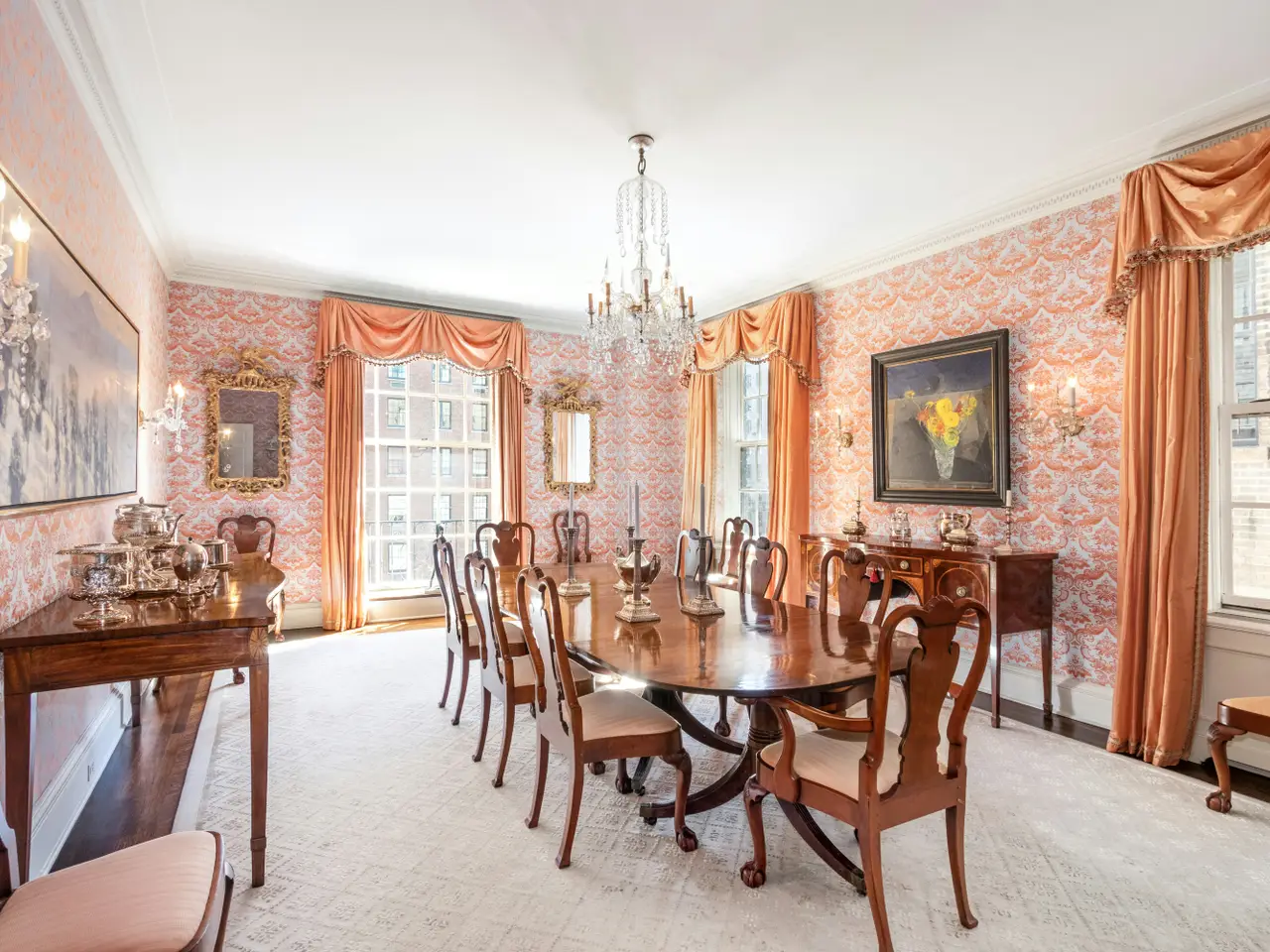 This grand and sophisticated duplex residence is located in the esteemed Rosario Candela-designed building at 770 Park Avenue in the heart of the Upper East Side. The apartment boasts a gracious layout with superb prewar details throughout. The entertaining rooms and three of the four bedrooms have an eastern exposure overlooking Park Avenue. Upon entering, you are greeted by an impressive entrance gallery with a sweeping curved staircase. The dramatic 30-foot living room with a wood-burning fireplace is sun-flooded through floor-to-ceiling windows with Juliet balconies. It is adjacent to the library with its own wood-burning fireplace and handsome built-in bookcases. The beautifully proportioned corner formal dining room is ideal for entertaining. The windowed gourmet eat-in kitchen offers custom cabinetry, ample countertops, two Subzero refrigerators, Viking 6-burner range, an additional oven, two sinks, two dishwashers and an icemaker. A staff room with full bath is conveniently located off the kitchen, as is a windowed laundry room that leads to the secondary staircase. The upper level houses four bedrooms, including the sun-filled corner primary bedroom which features two large closets, a decorative fireplace and a spacious windowed ensuite bath. The secondary bedrooms are all generously proportioned with large ensuite baths and abundant closet space. There is also an office and second staff room with full bath on this floor. Additional features of this residence include dentil or acanthus moldings distinctive to each of the public rooms, herringbone floors, through the wall air-conditioning, a powder room and ample storage throughout. A separate staff room located on the third floor of the building is included in the sale. Built in 1930, 770 Park Avenue is a prestigious white-glove cooperative that is comprised of 42 residential units. The building is fully staffed with full-time doormen and a live-in resident manager. Additional amenities include a fitness center, laundry room, private storage and wine storage. Renovations are permitted between May 15th through September 15th. The building does not permit financing and there is a 3% flip tax payable by the purchaser. Pets and pied-a-terres are permitted with board approval.