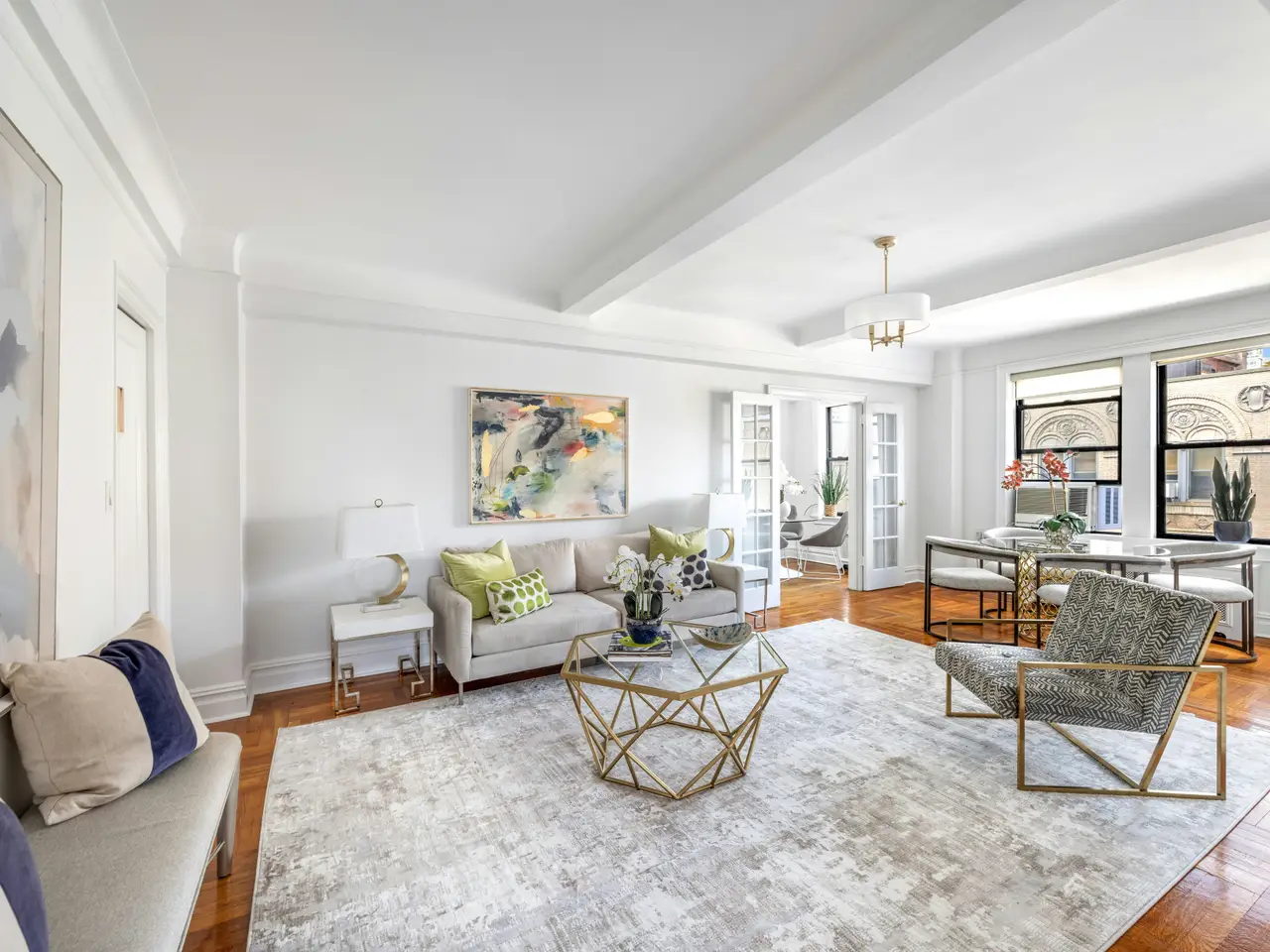 Prewar details: parquet floors, beamed ceilings