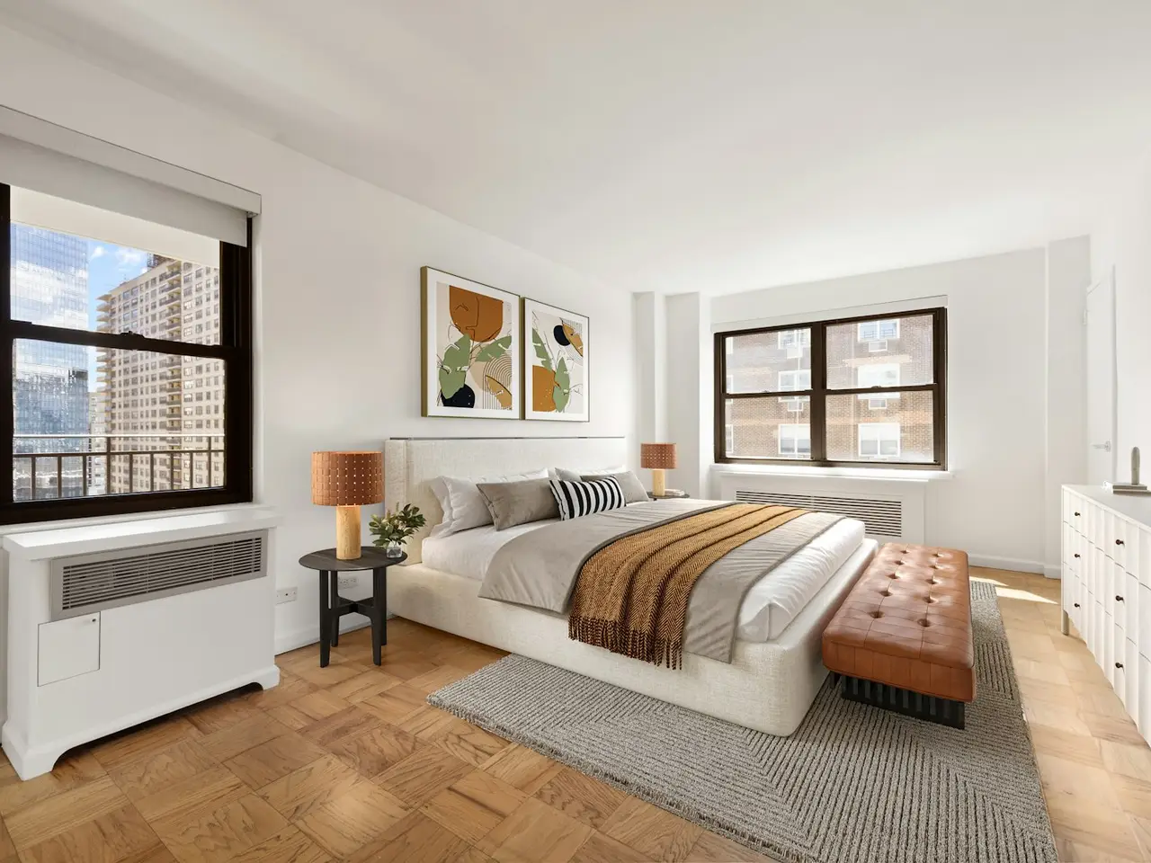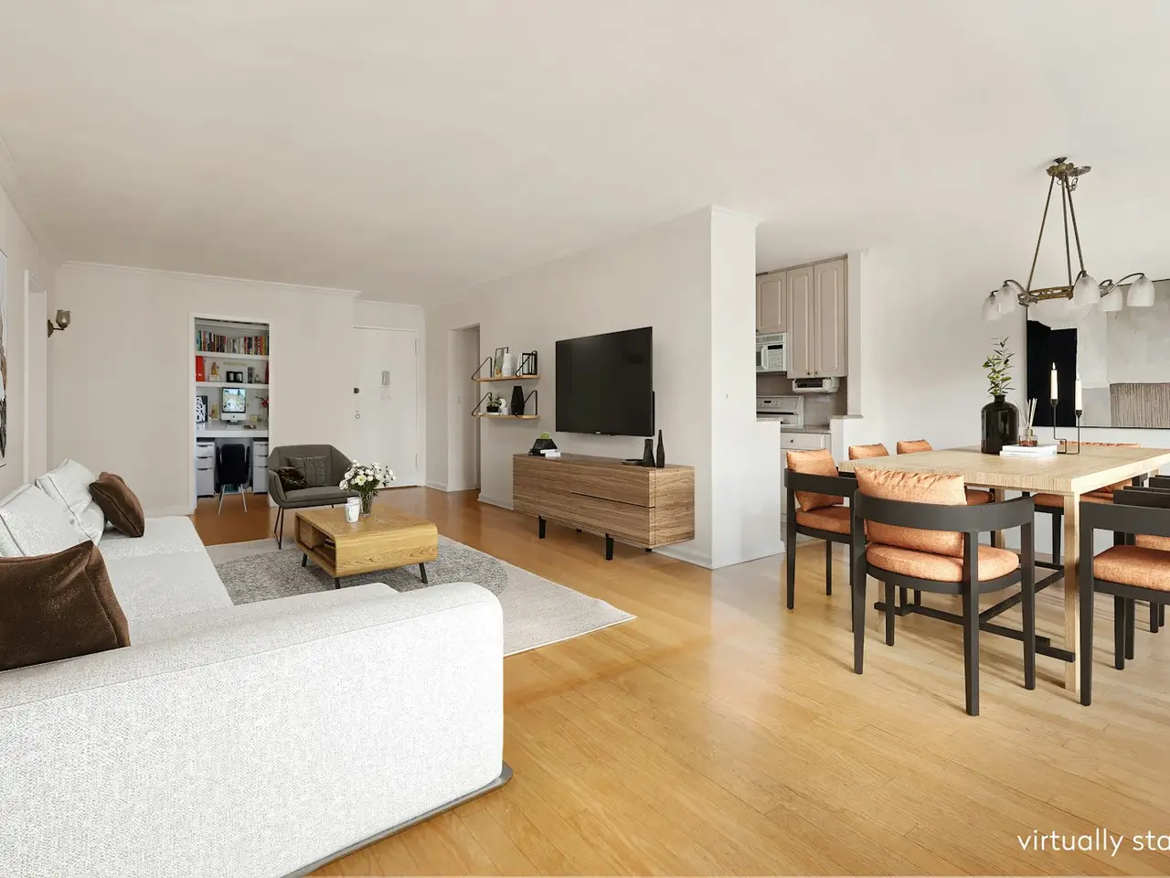 High Above It All at Lincoln Towers - Spacious 2BR/2BA with Private Balcony & Panoramic Views Perched on the 17th floor of 165 West End Avenue, this light-filled, corner two-bedroom, two-bath home offers sweeping eastern views over the city skyline by day and a twinkling city landscape by night. The expansive 26-foot living and dining space is flooded with natural light from four oversized east-facing windows. A sunny over sized gracious living area with a separate large windowed dining alcove which is perfect for entertaining. A large private balcony-stretching almost 27 feet-invites you to start your mornings with coffee above the treetops or unwind in the evening as the city comes to life. The updated galley kitchen features stylish cabinetry, generous counter space, and a large pantry, with room to expand into a chef's dream. A tucked-away workspace and abundant storage-four closets including a massive walk-in-add comfort and convenience to daily life. The king-sized primary suite is a true retreat, offering dual exposures, a full wall of custom closets, and a renovated, windowed en-suite bath. The second bedroom is equally generous, with southern light, a large walk-in closet, and flexibility to serve as a guest room, second bedroom or home office. Additional highlights include hardwood floors, custom built-ins with under-window storage, and tasteful updates throughout. Oversized windows bathe every room in natural light, creating an inviting and uplifting atmosphere. Residents of this full-service co-op enjoy a beautifully renovated lobby, 24-hour doorman, live-in superintendent, fitness center, community room, central laundry, on-site dry cleaner, storage (waitlist), bike room (waitlist), and an on-site parking garage. A circular driveway provides convenient pickup and drop-off. 165 West End Avenue is part of the desirable Lincoln Towers complex, with direct access to a private park featuring landscaped gardens, picnic areas, playgrounds, basketball and pickleball courts, and a ping pong table. Located in the heart of the Upper West Side, you're moments from Lincoln Center, Riverside and Central Parks, Fairway, Trader Joe's, and the Time Warner Center. Enjoy world-class dining at nearby favorites like Caf Luxembourg, Boulud Sud, Per Se, The Smith, and Harry's Table. Excellent transportation options include the M66, M57, and M72 buses, and the 1, 2, 3 subway lines close by. Monthly maintenance includes all utilities (gas, electric, heat, and water), offering true peace of mind and exceptional value. Assessment in place through May 2027 for 564.59 monthly. Private parking space available for an additional $150,000 with a monthly maintenance of $203.00.