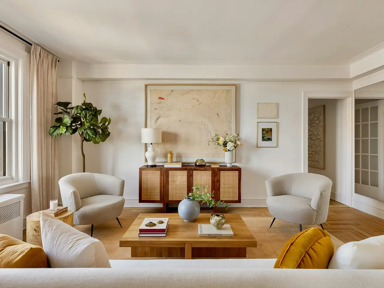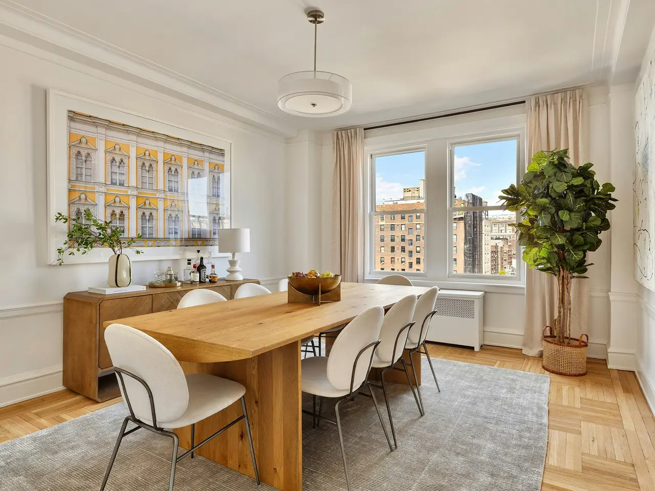 Welcome home to 11C at 315 West 106th Street - a High-Floor Classic Six with Exceptional Light, Hudson River Views from Every Room, and Timeless Character. Perched on a high floor of Rosario Candela's elegant 315 West 106th Street, this beautifully proportioned classic six offers two bedrooms, two full bathrooms, and a flexible maid's room that functions perfectly as a third bedroom, den, or home office, with a closet that can accommodate a washer/dryer or ensuite half bathroom, pending board approval. This home has just undergone a thoughtful renovation, blending prewar elegance with modern comfort through classic hardwood floors in a beautiful light stain and a fully updated, top-of-the-line kitchen. Together, these elements enhance the home's open and airy feel and amplify the abundant natural light and views that define this residence. A gracious entry foyer opens into a sun-flooded living room with open sky and Hudson River views. The adjoining formal dining room, framed by elegant French doors, provides a natural flow for entertaining with the river view to enhance the already impressive setting. The renovated, windowed kitchen impresses as well with brand-new stainless-steel appliances, stone countertops, abundant cabinetry, and a gas range. Tucked quietly at the opposite end of the home, the corner primary suite enjoys three exposures - north, east, and south - filling the room with light throughout the day and offering a striking view of the Hudson River. It's a serene retreat with its own windowed ensuite bathroom. The second bedroom easily accommodates a king-sized bed and nightstands and similarly showcases peaceful Hudson River and tree-top views. Both bedrooms offer exceptional privacy and comfort, while original prewar details - high ceilings, elegant moldings, and timeless architectural elements - blend effortlessly with modern updates to create a warm, sophisticated atmosphere. 315 West 106th Street is a full-service and immaculately maintained cooperative featuring a 24-hour doorman, live-in superintendent, bike and storage rooms, and central laundry. The building also boasts one of the most spectacularly landscaped and beautifully furnished roof decks in all of New York City - a true urban oasis. Multiple seating areas are thoughtfully arranged throughout, including comfortable lounge chairs, classic Adirondack seating, high-top tables, and a pergola-covered dining area perfect for intimate dinners or hosting gatherings under the stars. Surrounded by lush plantings and offering enchanting panoramic views of the city and the Hudson River, this rooftop retreat is as inviting as it is breathtaking. Perfectly positioned between West End Avenue and Riverside Drive, residents enjoy a tranquil, tree-lined block adjacent to Riverside Park, and moments from Central Park, express trains, and the best of the Upper West Side's shopping, dining, and culture. Please note, the building permits up to 75% financing.