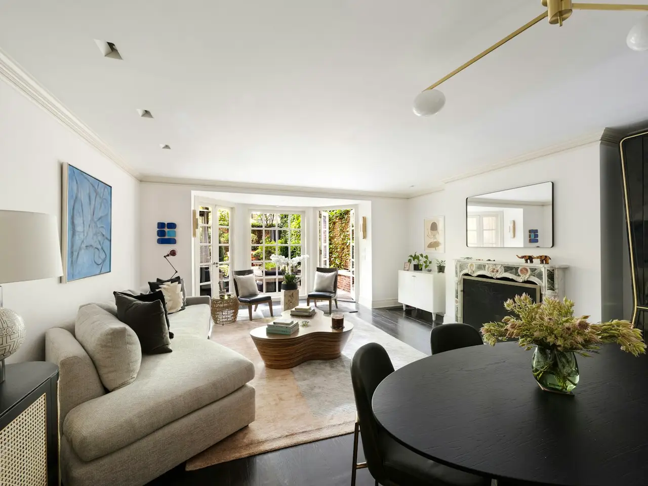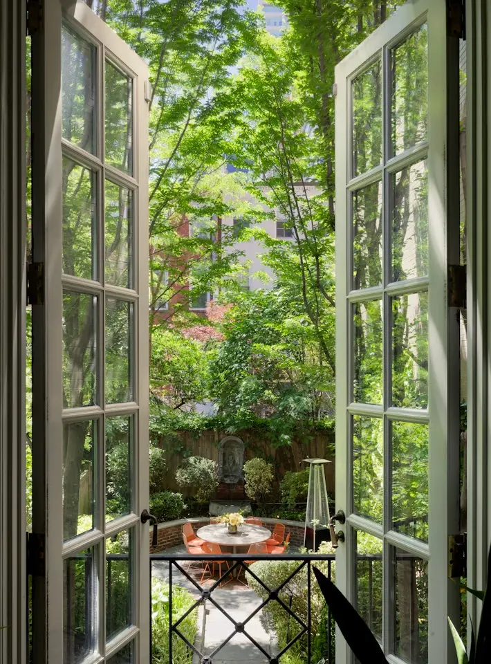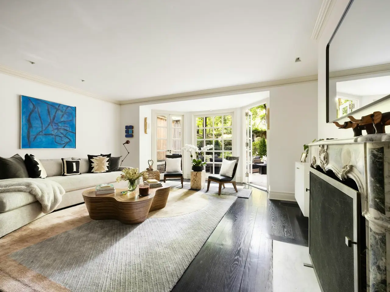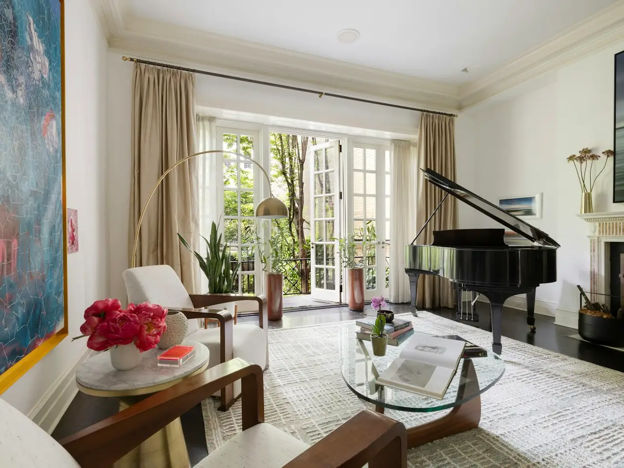 Exceptional Historic Townhouse in Treadwell Farm Impeccably maintained and move-in ready, this four-story single-family townhouse in pristine condition, features nearly 5,000 square feet of elegant living space (including cellar) and a stunning south-facing garden. This remarkable 1870 residence sits on the coveted south side of East 62nd Street, a tranquil tree-lined block within the distinguished Treadwell Farm Historic District. This home showcases the perfect marriage of historic charm and modern luxury, having been thoughtfully updated while preserving its architectural integrity. Garden Level The garden level welcomes you through both formal and service entrances. The formal dining room features floor-to-ceiling windows and elegant French doors that open directly to the professionally landscaped garden, originally designed by renowned landscape artist Edwina Von Gal. The spacious chef's kitchen boasts premium appliances including Sub-Zero refrigeration, Miele dishwasher, and a sophisticated reverse-osmosis water filtration system. Custom cabinetry extends into the butler's pantry, where a private elevator provides access to all floors for maximum convenience. Parlor Floor The parlor floor showcases gracious entertaining spaces with over 11-foot ceilings. The light-filled living room overlooks the serene garden, while an intimate mahogany-paneled library provides a quiet retreat facing the tree-lined street. Enhanced with five zone-zone climate control, every detail has been considered for effortless and modern living. Third Floor - Primary Suite The primary bedroom is a sanctuary of natural light, featuring three large south-facing windows and a striking 19th-century working fireplace. The luxurious en-suite includes a spacious dressing room with custom built-ins, leading to a marble-appointed bathroom with double vanities, soaking tub, and oversized dual-head shower. A versatile north-facing room, currently utilized as an office, completes this private floor. Fourth Floor Two additional bedrooms occupy the top floor, including a sun-drenched room with charming Juliet balcony overlooking the garden. The front bedroom features a marble fireplace, walk-in closet, and private en-suite bathroom. Cellar & Mechanicals The approximately 930-square-foot cellar provides abundant storage, powder room, and laundry facilities. Naturally lit through front window, the space is dry and meticulously maintained. All mechanical systems are in excellent condition. Notable Features - Four exquisite wood-burning fireplaces with variable fan inducers - Five-zone air conditioning - Comprehensive humidification system for art preservation - Private elevator servicing all floors - Air rights available for fifth-floor expansion This is a rare opportunity to own a timeless townhouse in one of Manhattan's most cherished historic districts. A truly exceptional home of character, comfort, and pedigree.