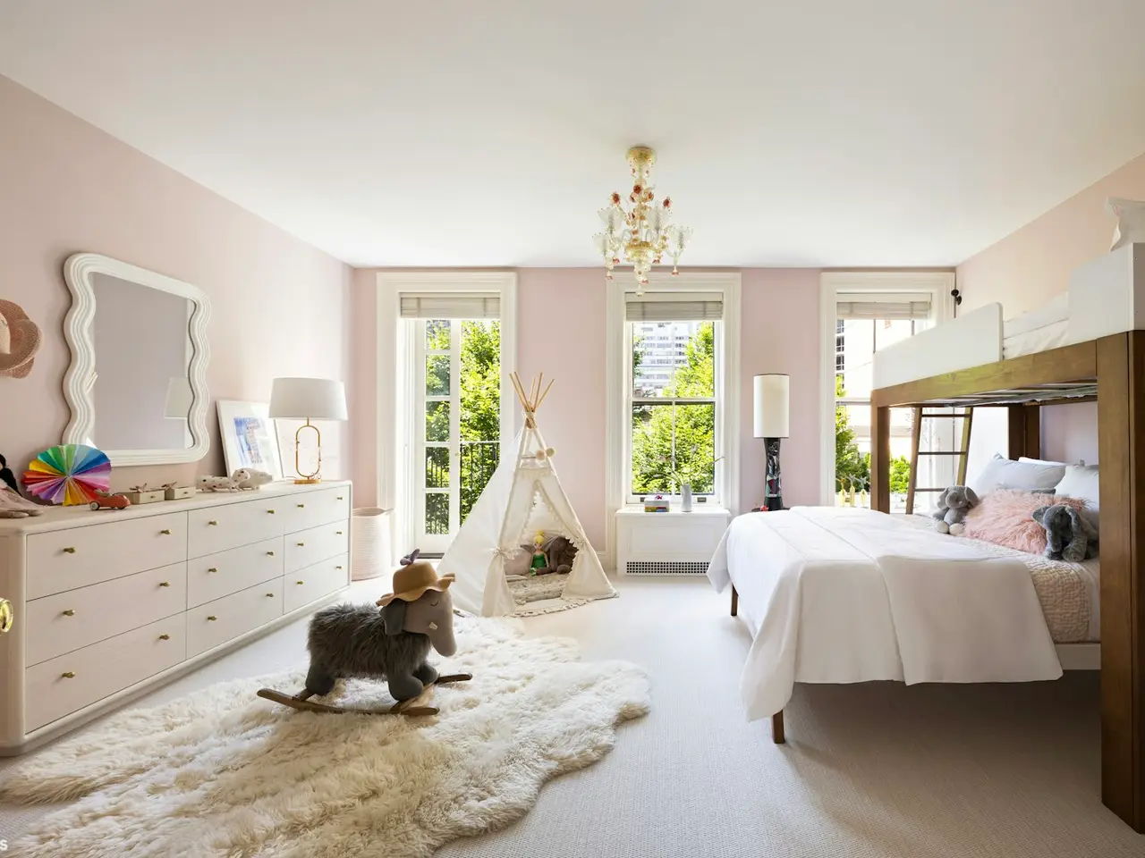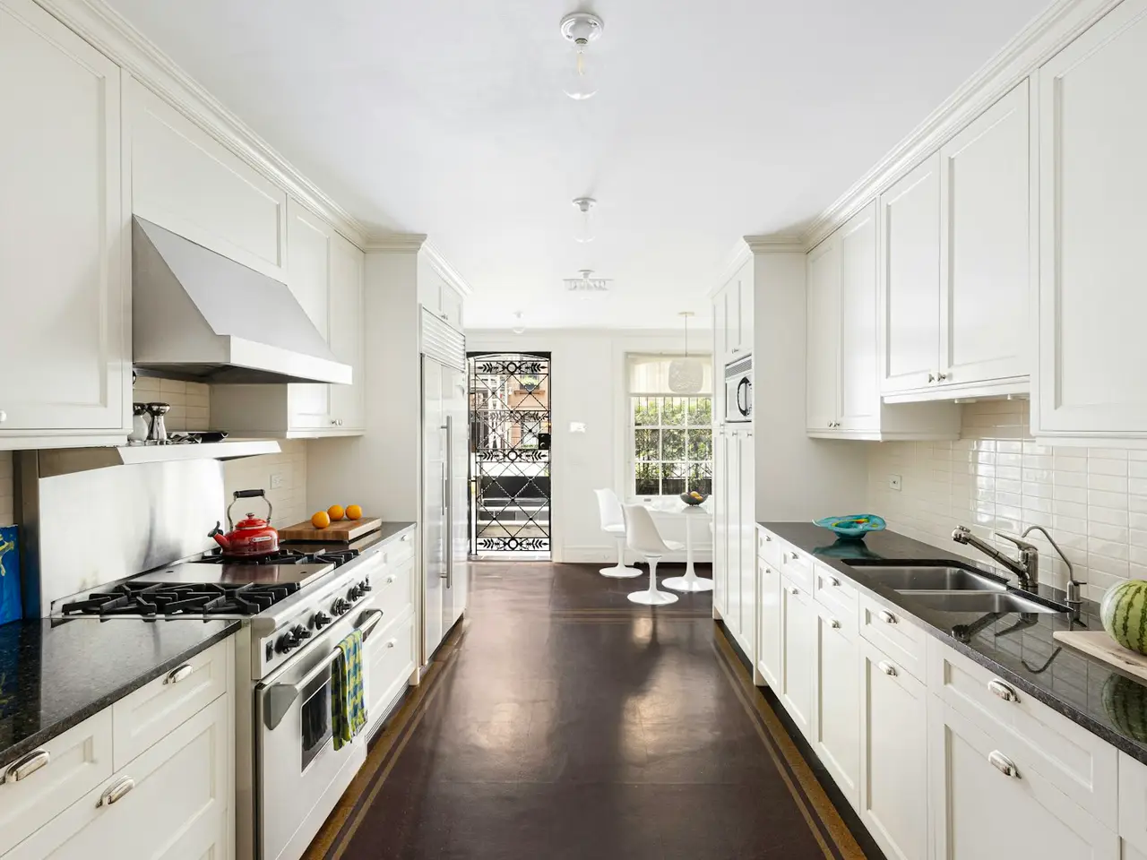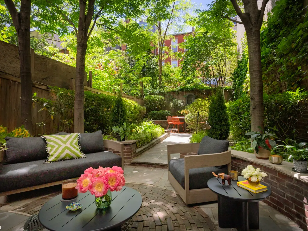 Exceptional Historic Townhouse in Treadwell Farm Impeccably maintained and move-in ready, this four-story single-family townhouse in pristine condition, features nearly 5,000 square feet of elegant living space (including cellar) and a stunning south-facing garden. This remarkable 1870 residence sits on the coveted south side of East 62nd Street, a tranquil tree-lined block within the distinguished Treadwell Farm Historic District. This home showcases the perfect marriage of historic charm and modern luxury, having been thoughtfully updated while preserving its architectural integrity. Garden Level The garden level welcomes you through both formal and service entrances. The formal dining room features floor-to-ceiling windows and elegant French doors that open directly to the professionally landscaped garden, originally designed by renowned landscape artist Edwina Von Gal. The spacious chef's kitchen boasts premium appliances including Sub-Zero refrigeration, Miele dishwasher, and a sophisticated reverse-osmosis water filtration system. Custom cabinetry extends into the butler's pantry, where a private elevator provides access to all floors for maximum convenience. Parlor Floor The parlor floor showcases gracious entertaining spaces with over 11-foot ceilings. The light-filled living room overlooks the serene garden, while an intimate mahogany-paneled library provides a quiet retreat facing the tree-lined street. Enhanced with five zone-zone climate control, every detail has been considered for effortless and modern living. Third Floor - Primary Suite The primary bedroom is a sanctuary of natural light, featuring three large south-facing windows and a striking 19th-century working fireplace. The luxurious en-suite includes a spacious dressing room with custom built-ins, leading to a marble-appointed bathroom with double vanities, soaking tub, and oversized dual-head shower. A versatile north-facing room, currently utilized as an office, completes this private floor. Fourth Floor Two additional bedrooms occupy the top floor, including a sun-drenched room with charming Juliet balcony overlooking the garden. The front bedroom features a marble fireplace, walk-in closet, and private en-suite bathroom. Cellar & Mechanicals The approximately 930-square-foot cellar provides abundant storage, powder room, and laundry facilities. Naturally lit through front window, the space is dry and meticulously maintained. All mechanical systems are in excellent condition. Notable Features - Four exquisite wood-burning fireplaces with variable fan inducers - Five-zone air conditioning - Comprehensive humidification system for art preservation - Private elevator servicing all floors - Air rights available for fifth-floor expansion This is a rare opportunity to own a timeless townhouse in one of Manhattan's most cherished historic districts. A truly exceptional home of character, comfort, and pedigree.