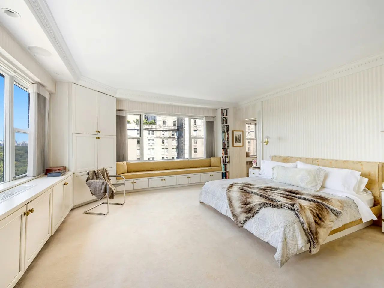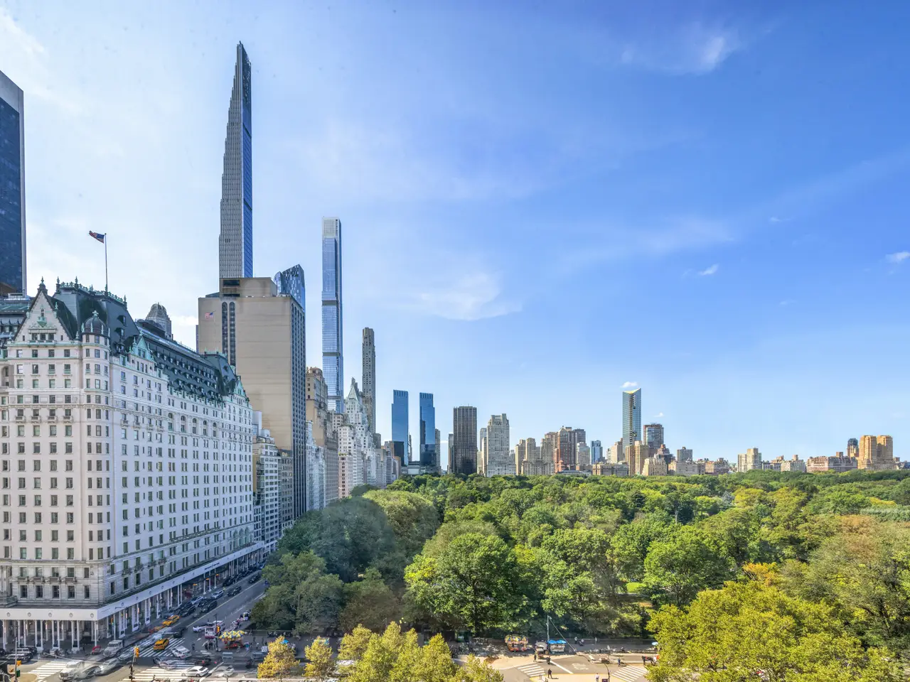 ICONIC FIFTH AVE HOME OVERLOOKING CENTRAL PARK An exceptional and rare offering of one of the most iconic vantage points in all of New York City. Perched high above Fifth Avenue, Residence 14A at The Parc V boasts uniquely sweeping, cinematic views over Central Park, The Plaza Hotel and the glittering skyline of Billionaire's Row through oversized picture windows wrapping the building's facade. This majestic corner six-room residence offers approximately 2,600 SF of elegantly arranged interior space and open views from every single window, all within one of the finest white-glove cooperatives on Fifth Avenue's coveted Gold Coast. Entered from a semi-private landing, 14A welcomes you with a gracious central gallery glimpsing dramatic postcard views of Central Park through the living room's wall of windows. The living room is adorned with intricate crown molding, handsome built-ins and tasteful custom millwork throughout. Immediately adjacent to the living, the library continues the glorious views over Central Park and the surrounding medley of prewar and modern architecture. Originally a second park-facing bedroom, the library has an en-suite marble bathroom with a stall shower as well as a large walk-in closet and can easily be restored as a full-time bedroom, per your needs. A sanctuary in the sky, the corner primary suite is enveloped in oversized picture windows to the West and the North framing uninterrupted panoramas of Central Park and its skyline, providing a daily ritual of waking up and going to sleep to the city's most glorious and iconic views. There is a custom window seat, a dedicated vanity overlooking the park to the North, two walk-in closets and two marble bathrooms, one of which is a four-fixture retreat with a deep soaking tub and a glass-enclosed stall shower. Central Park is visible from every room of this home, including the formal dining room which has views onto the lush park foliage beyond the masonry of The Pierre to the northwest. Perfectly scaled for entertaining at any level, the dining room easily accommodates even the most lavish dinner parties. Guests are serviced by a powder room off of the gallery, adjacent to a walk-in coat closet. Perfectly situated off of the dining room, the windowed eat-in kitchen features a plush corner banquette, creating a cozy scene for casual dining and/or quiet morning coffee. The kitchen is outfitted with sleek high-gloss cabinetry and generous pantry storage, granite countertops and a neutral tiled backsplash. The appliance suite includes a Thermador six-burner gas range with double ovens, a Sub-Zero refrigerator with double freezer drawer as well as a full-size LG dishwasher. Just beyond the kitchen is an unusually large home office/staff room with a side park view, and there is a third bathroom with a stall shower as well as a laundry closet with a washer/dryer off of the service entry. The Parc V occupies a premier position at the southern edge of Central Park, surrounded by some of Manhattan's most prestigious landmarks, including The Plaza, The Sherry Netherland and The Pierre, and at the center of the city's finest culture, shopping and dining. Built in 1963 by renowned architectural firm Emery Roth & Sons, the limestone-clad cooperative offers residents full-time lobby attendants, a live-in resident manager, a newly renovated fitness room, private storage, central laundry and a parking garage. The lobby has recently undergone a stunning designer renovation, and service includes mail and newspaper delivery to your door. Monthly maintenance includes utilities. Pieds-a-terre are welcome, but pets are not permitted. Financing is allowed up to 50% and there is a 2.5% flip tax payable by purchaser.