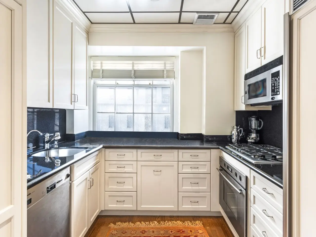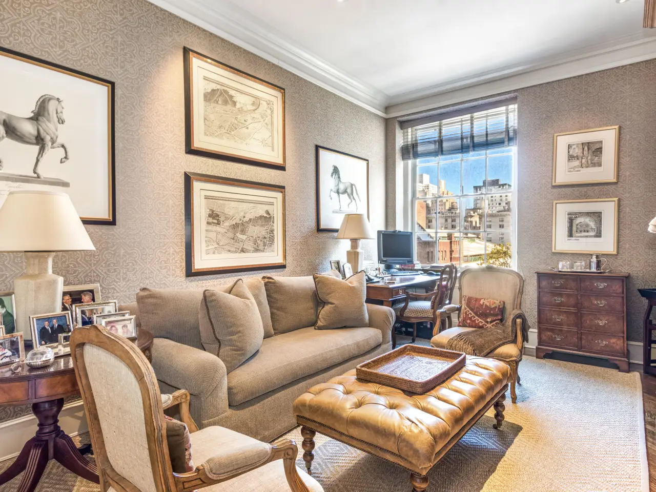 This mint five room, two bedroom, two bathroom apartment has incredible scale and proportions with 11-foot ceilings. Every major room faces directly onto Park Avenue offering superb light and open city views to the East and North. A large gallery leads into a living room with double exposure, tall windows, beautiful built-in bookshelves, and a wood-burning fireplace. The dining area is open to the Living Room, off the windowed kitchen with top of the line appliances and a washer/dryer. There is a service entrance leading into this area which could be transformed into a large pantry. Extending off the Gallery is a grand foyer leading to the primary bedroom with an abundance of closets and windowed en suite bath, and a second bedroom with an adjacent bath that serves as a powder room. Beautiful hardwood floors and prewar moldings complete this home. The apartment comes with two large storage rooms on the second floor that could be used as an office. This apartment can be purchased fully furnished. 630 Park Avenue is a premier white-glove cooperative. Impeccable staffing includes a full-time doorman and a resident manager, and amenities include a state-of-the-art private fitness center and bicycle storage. The building no longer enforces summer work rules. Pets are welcome. Designed in 1916 by master architect and builder J. E.R. Carpenter, 630 Park Avenue is a distinguished and classically elegant Upper East Side address. Perfectly located, it is convenient to many of New York City's best restaurants, museums, and galleries, and is but moments to the idyllic pleasures of Central Park.