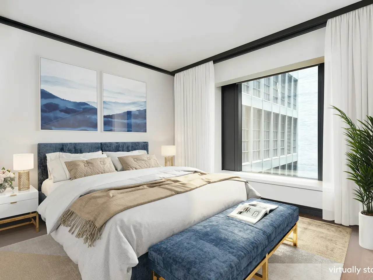 Floor-to-ceiling windows with western/southern views