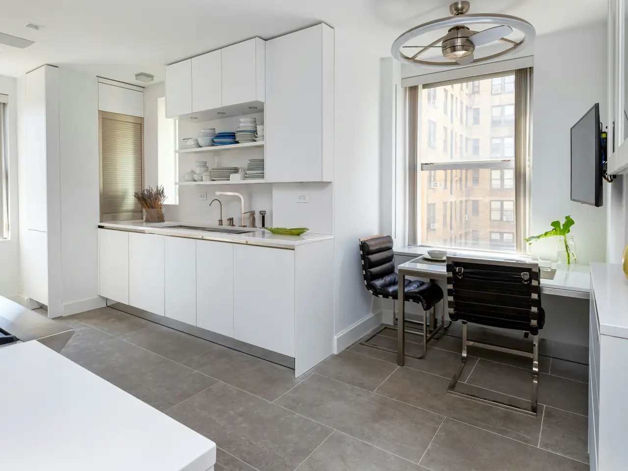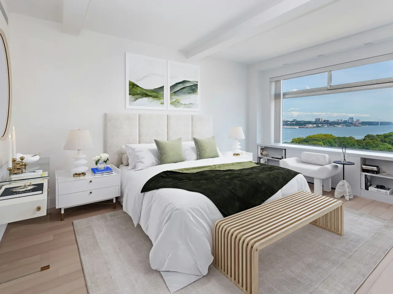 Glorious Light and Views Perfectly positioned on the 12th floor of 37 Riverside Drive at 76th Street-with stunning river and open city views from every window-this newly renovated classic prewar home offers elegant space in pristine condition, in an ideal location. A grand slate-paved gallery welcomes you off the semi-private landing. Directly to the west is the breathtaking corner living room with a nearly floor-to-ceiling window showcasing cinematic views of the splendid Hudson River and a direct sightline to the GW Bridge. To the east is an open city panorama of West Side landmarks, with the entire home filled with natural sunlight all day long. Through antique French oak paneled doors is the formal dining room/library, also with lovely east views. The true gourmand's professional kitchen incorporates the former staff room and bath to create an eat-in sun-filled space with storage for every implement: appliance garage, vented Blue Star stove, Sub-Zero fridge, heated stone floors, water filtration, limitless counter space, and custom white Italian cabinetry. The wet bar serves as a butler's pantry off the dining room and is the ideal setting for entertaining and hosting home-cooked meals. The bedroom wing is comprised of two sizable bedrooms-the primary with a sitting area and private home office, both with glorious river views. Each features a windowed en-suite renovated modern bathroom with heated floors and premier fixtures and materials. A powder room for guests is discreetly located off the gallery, which is lined floor-to-ceiling with paneled storage, cleverly hiding all household items from sight, including the in-unit washer/dryer. Two zones of central AC ensure year-round comfort, and the entire home was rewired for maximum power and AV/Smart Home capabilities. 37 Riverside Drive offers a boutique full-service experience with only 32 units, and provides a full-time doorman, resident building manager, new fitness room, and deeded storage and bike space. An easy stroll to Broadway for delightful shopping, top schools both public and private are moments away, as is express and local train service. 75% financing is permitted, and pets are welcome.
