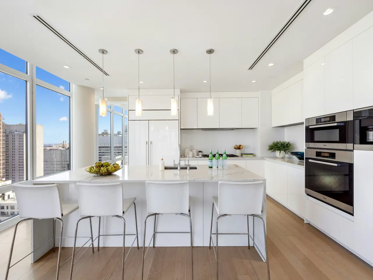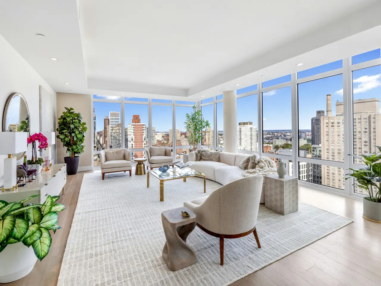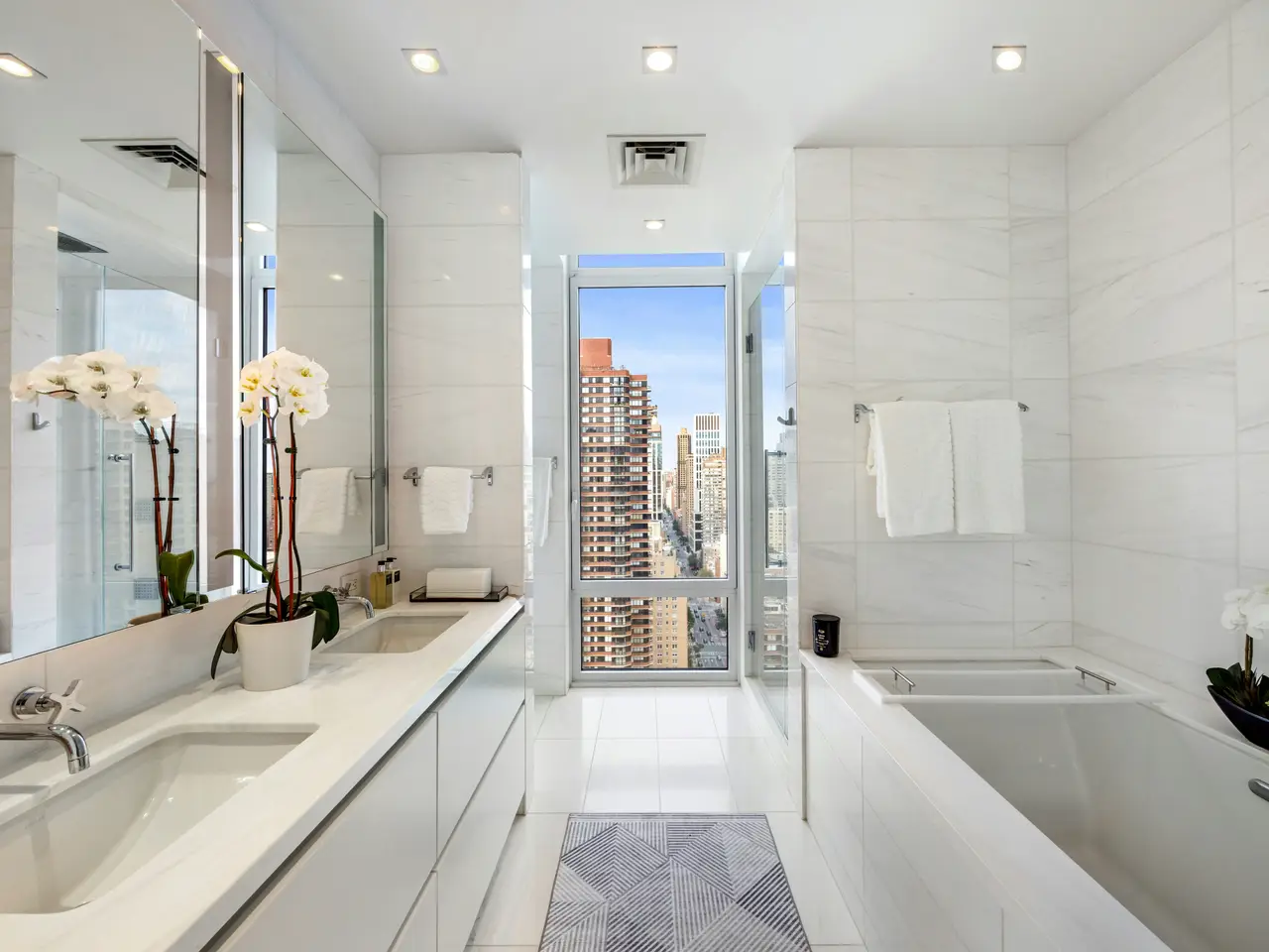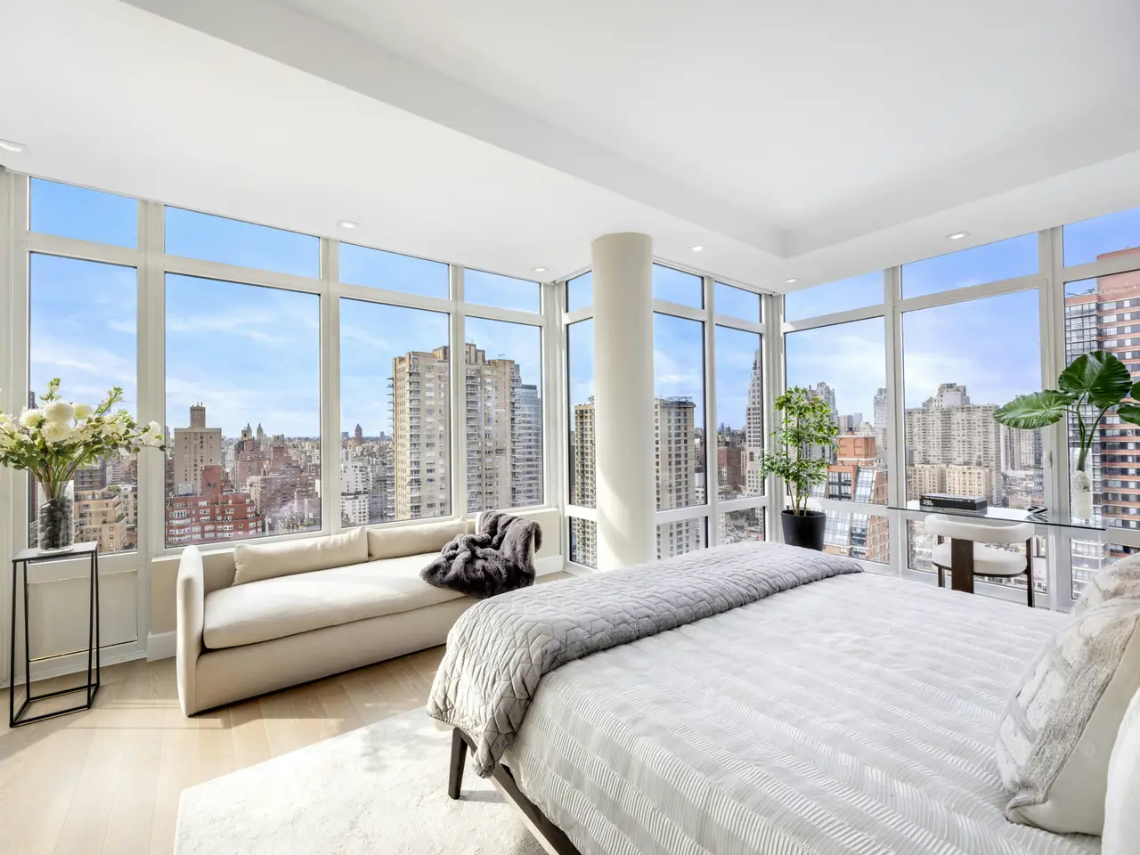 Floor-to-ceiling windows with sweeping Manhattan skyline views