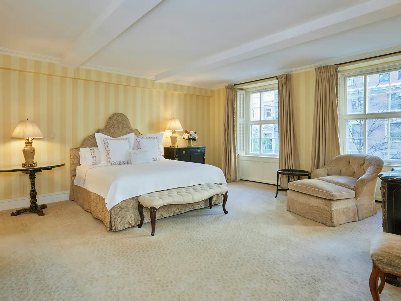 This elegant, masterfully designed pre-war cooperative apartment in one of Manhattan's most distinguished buildings, has lovely north and south exposures. It shares an elevator landing with only one other apartment. A gracious foyer leads to the spacious square living room/dining room with three large windows, built-in bookcases and fireplace. Also accessed from the foyer are a generously proportioned primary bedroom with huge closets and bathroom en suite and a charming library, currently used as a bedroom; a second bathroom adjoins both bedrooms. The cheerful eat-in kitchen is well-equipped and includes a washer/dryer and large pantry. There is CAC in the bedrooms and thru-wall air conditioning in the kitchen. Built in 1926 by renowned architects Pleasants Pennington & Albert W. Lewis, 66 E. 79th Street was converted to cooperative in 1986. Featuring 15 stories and only 20 apartments, this boutique, white glove cooperative is less than two blocks to Central Park with proximity to transportation, fine restaurants, shops and museums. The building offers a 24 hour doorman and live-in resident manager. There is a gym and storage room that transfers with the apartment. Cats and dogs up to 40lbs. are permitted. 2% flip tax is paid by seller. Windows must be replaced within 12 months of closing.