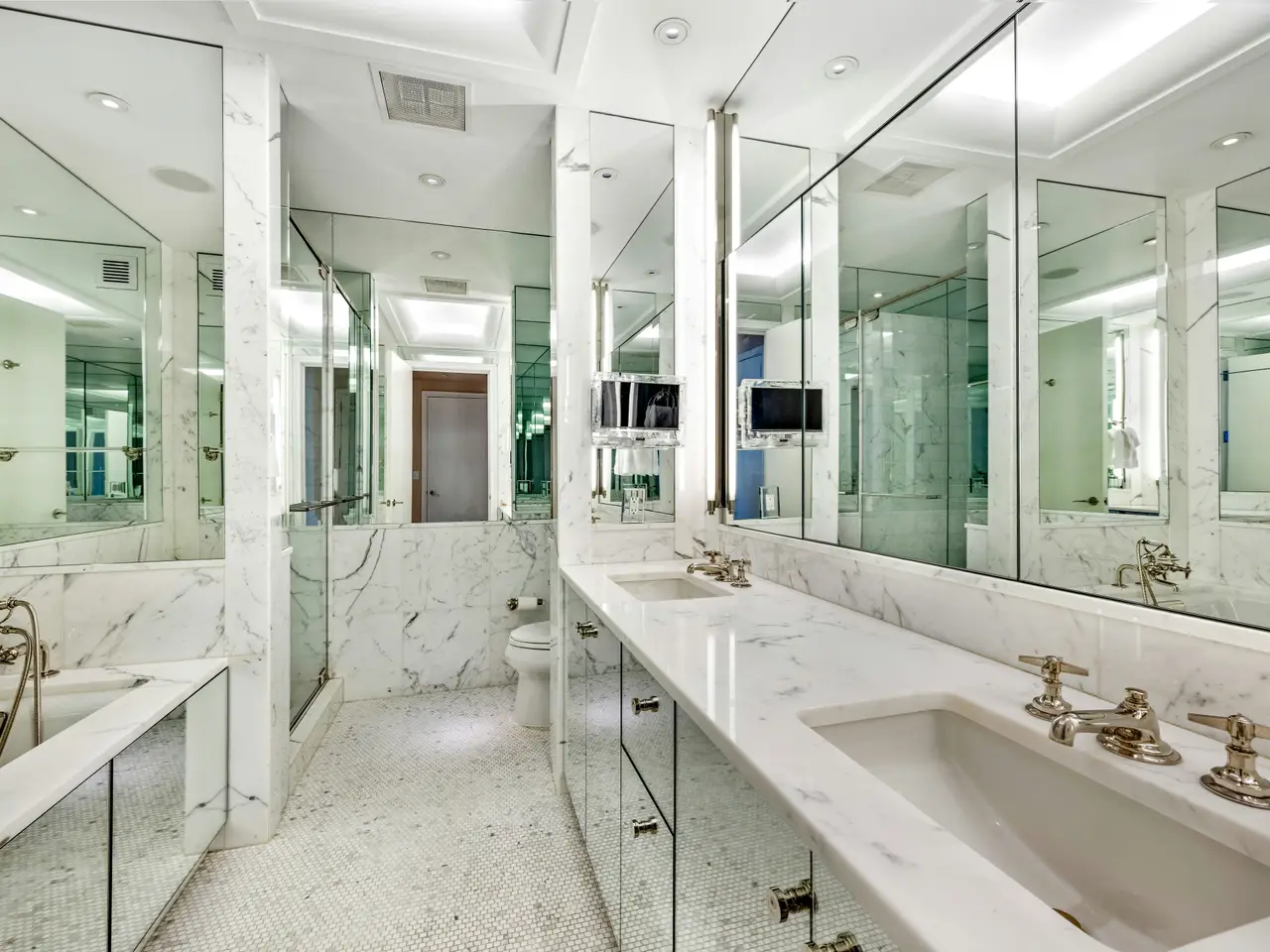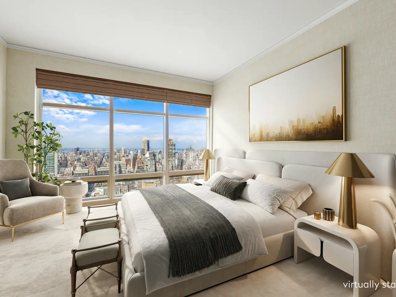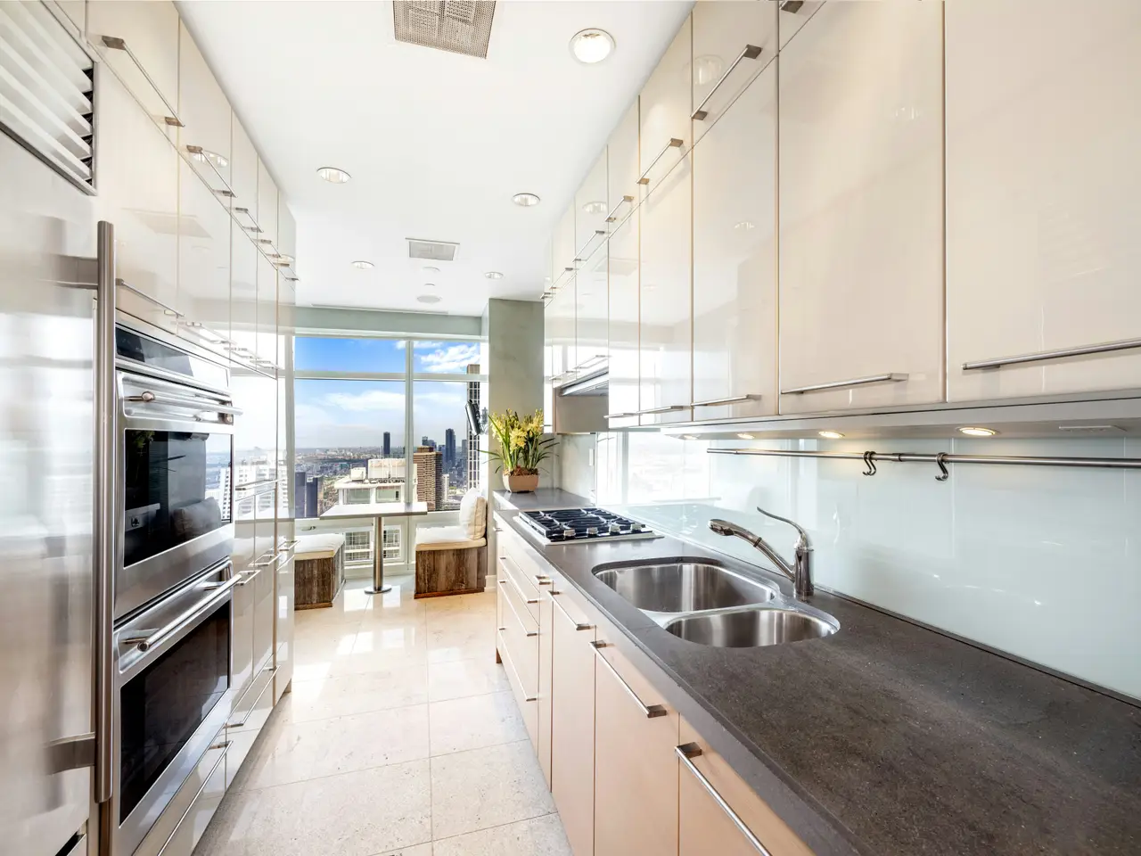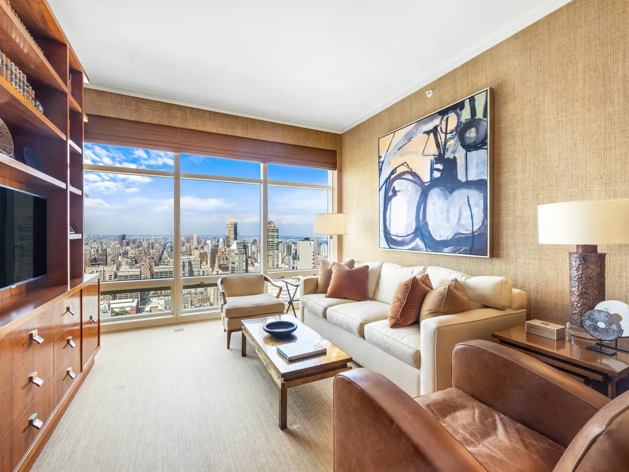 Perched on the 35th floor, this mint-condition two-bedroom, two-and-a-half-bath corner residence spans 1,757 square feet and showcases sweeping, uninterrupted vistas of Manhattan's iconic skyline. Bathed in extraordinary natural light from three exposures, this home combines scale, sophistication, and breathtaking panoramas. A gracious foyer and gallery lead into the expansive corner living and dining room, where floor-to-ceiling windows frame New York's most coveted views. With north, east, and west exposures, the vistas extend directly over Central Park, from the East River across the Hudson to the George Washington Bridge and beyond. The Poggenpohl-designed chef's kitchen is equally impressive, featuring a windowed breakfast nook with commanding city and East River views. Finishes include Basaltina stone countertops, Pannafragola granite flooring, sleek cabinetry, dry wine storage, and top-tier appliances by Wolf, Sub-Zero, and Miele. The north-facing primary suite is a serene retreat, offering three closets-including a custom walk-in-and a spa-inspired en suite marble bath with double vanity, deep soaking tub, oversized walk-in shower, and mounted Apple TV. The second bedroom, currently configured as a den with custom built-ins, features its own closet and en suite bath, and enjoys equally spectacular views. Additional highlights include a powder room, in-unit washer/dryer (venting permitted), walnut floors, remote-controlled shades, carpeted bedrooms, an abundance of storage, a Crestron smart home system, zoned central air-conditioning, and warm seagrass wall coverings. Designed by world-renowned architect César Pelli, One Beacon Court (the Bloomberg Tower) crowns the headquarters of Bloomberg L.P. Its dramatic circular driveway, courtyard, private garage with valet, and dedicated security define a grand arrival. Interiors by acclaimed designer Jacques Grange enhance the building's stature, with a striking lobby and white-glove services including full-time concierge, doormen, and resident manager. The Beacon Club, exclusively for residents, occupies the 29th floor and offers panoramic views alongside exceptional amenities: a state-of-the-art fitness center with massage rooms, an entertainment suite with catering kitchen, a playroom, and a high-tech business lounge. This premier condominium allows pied-à-terre, corporate and trust ownership, gifting, co-purchasing, parent participation, and subleasing. Financing up to 90% is permitted. This is a pet friendly community. Perfectly positioned across from Bloomingdale's and moments from Central Park, One Beacon Court places you at the heart of Manhattan's most celebrated dining, shopping, and cultural destinations-all while offering a residence curated to the highest standards of luxury living.