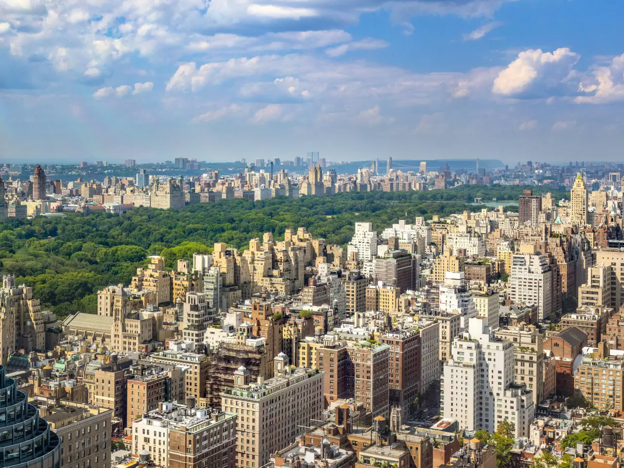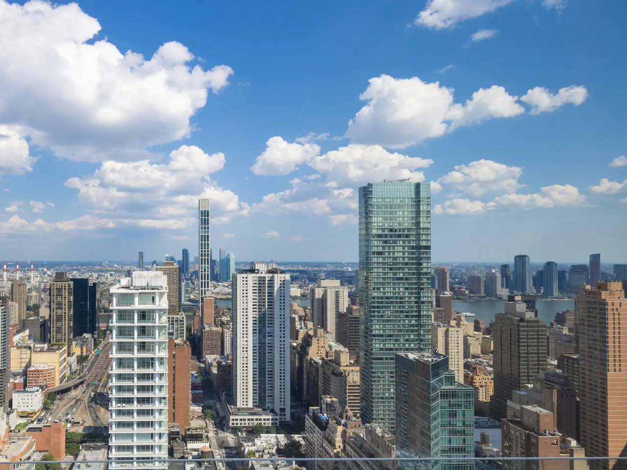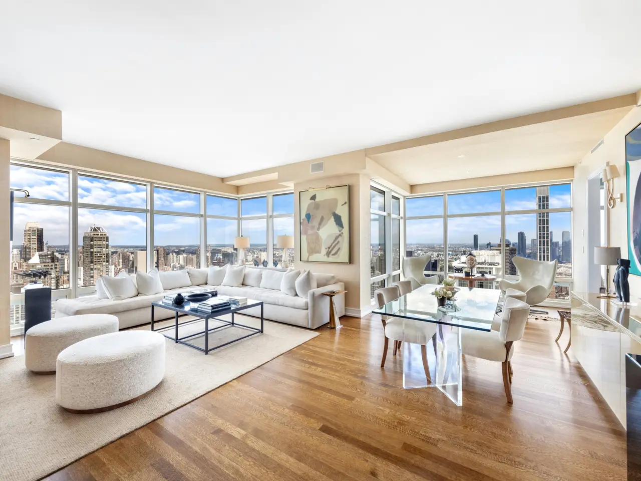 Floor-to-ceiling windows with panoramic Manhattan skyline views