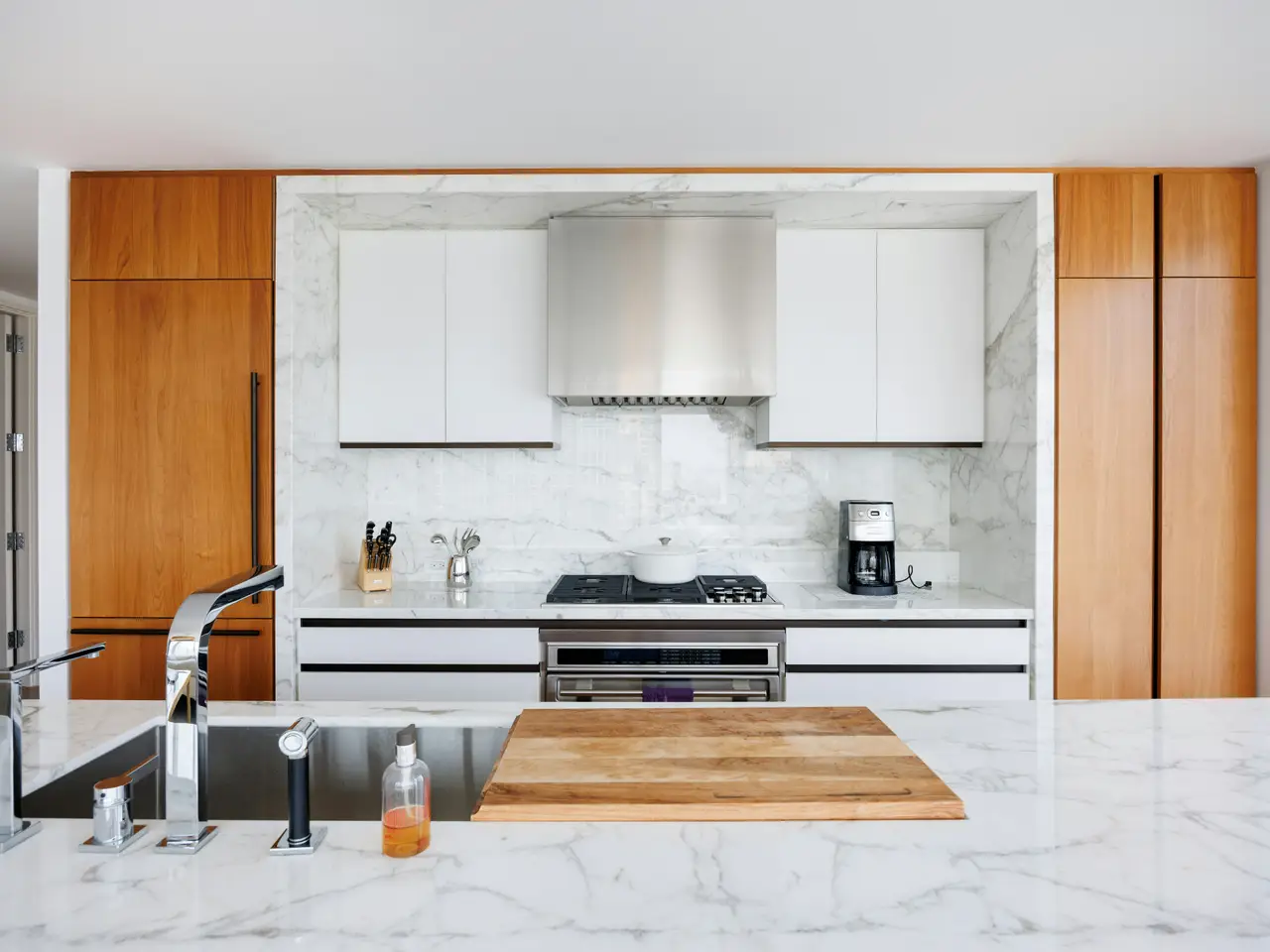 Custom Scavolini chef's kitchen with Vagli Fine Vein marble countertops