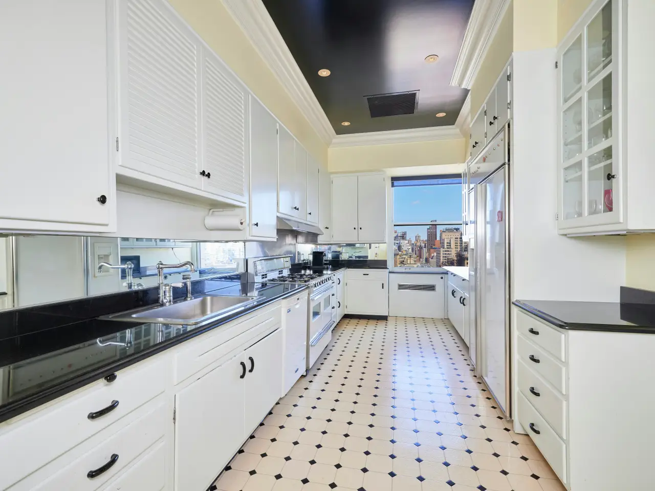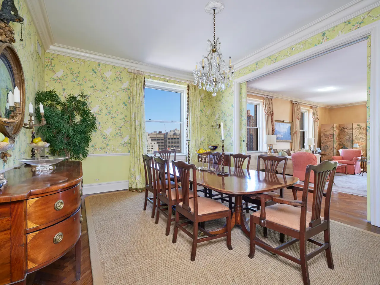 Grand, sun-flooded 3 bedroom residence with soaring 10+ foot ceilings and panoramic skyline views of Park Avenue and beyond -- reaching all the way to the East River. This elegant home is abound with classic pre-war details featuring: crown, dental and chair rail moldings, beautiful herringbone floors, oversized windows and copious closet space. One enters from the semi-private elevator landing into a stately formal entry gallery where a paneled archway leads to the 27-foot, expansive corner living room, with multiple seating areas and a marble-mantled gas fireplace. The traditional formal dining room is accessed from the living room through pocket doors, making this sublime home perfect for large or intimate entertaining. Off the dining room is a spacious windowed kitchen with glass-front cabinets and granite countertops replete with a sizeable walk-in pantry. On the far side of the gallery is the well-appointed library lined with custom bookcases, built-ins and a charming dry bar. The shared en-suite bath connects to the spacious second bedroom with light-filled Eastern views. A long, private hallway lined with mirrored floor-to-ceiling wardrobes accesses the enormous corner primary bedroom with walk-in closet and a luxurious en-suite bath. There is central air in the public rooms and a basement storage unit is included. Can be combined with neighboring apartment 16AE to create a full floor residence. Built in 1917 by renowned architect J.E.R. Carpenter, 550 Park Avenue is one of the City's premier, full-service co-ops in close proximity to Central Park and the best shops and restaurants. Washer/Dryer and pets allowed. Up to 50% financing is permitted and a 3% flip tax is paid by the purchaser.