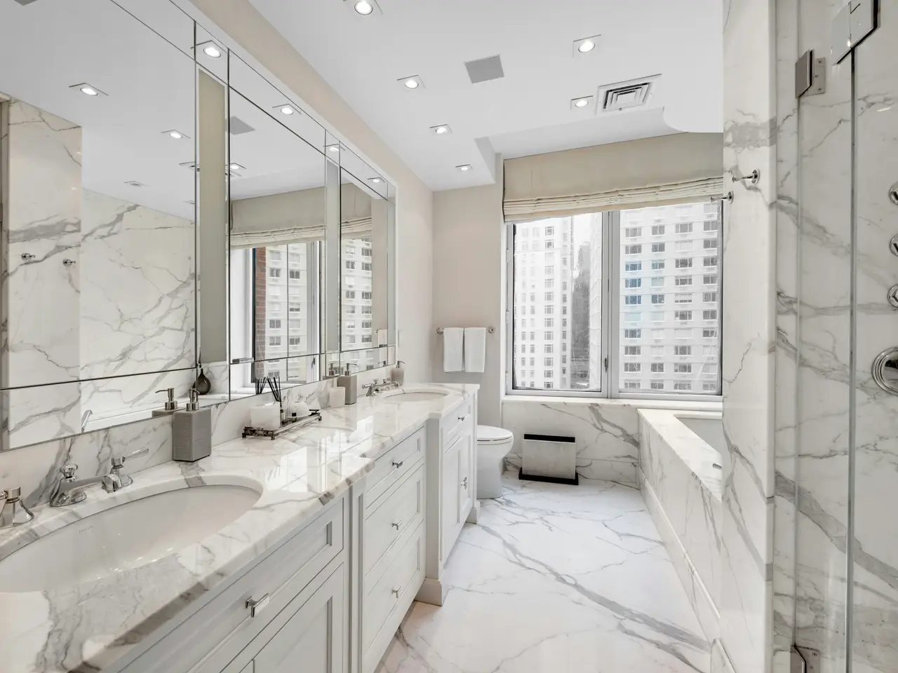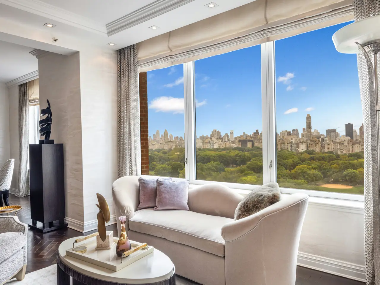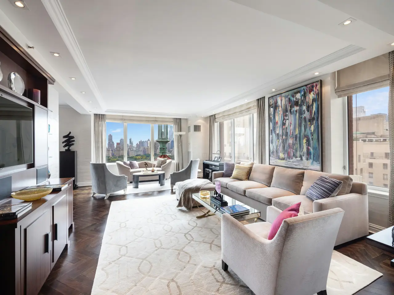PARK VIEWS FROM EVERY ROOM Experience refined luxury living in this exceptional two bedroom 2 1/2bath residence spanning 1928 sq ft with every room framing uninterrupted views of Central Park. Designed with elegance and comfort, the home showcases bespoke finishes throughout, pairing timeless sophistication with modern luxury and warmth. The gracious entrance foyer serves as a prelude to this turn key designer renovated home that has been photographed and published for its meticulous craftsmanship and design elements. The expansive layout offers an open flow between the living room and dining spaces while expansive windows bathe each room with natural south eastern light which highlights the park's ever changing beauty. The open chef's kitchen features a marble sculptural breakfast bar, custom cabinetry, marble countertops with Ann Sachs platinum backsplash along with Sub Zero and Miele appliances The corner primary bedroom suite is a true private luxurious retreat featuring ample closets and storage. The en suite windowed spa-like bathroom with double vanities includes Calcutta gold slab imported marble from Italy, Dornbracht fixtures, Kohler oversized cast iron bathtub, separate stall shower and heated radiant floors. The second bedroom, which is currently used as a den/study, includes ample closets and an en suite marble bathroom with custom cabinetry. The home is further enhanced by stunning hardwood floors, custom millwork, an elegant guest powder room, individual climate controls, a sophisticated lighting and sound system, and Miele washer and dryer The Park Laurel is one of Manhattan's premier condominiums. Residents enjoy a 24 hour doorman/concierge, fitness center, and bicycle room The prestigious location is only seconds away from Central Park, Lincoln Center, Time Warner Center, fabulous restaurants, shopping and public transportation. There is an assessment of $1604 per month