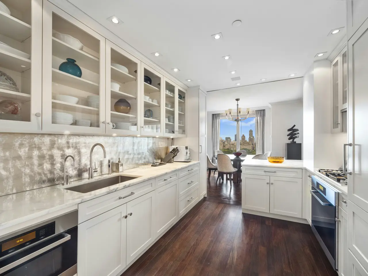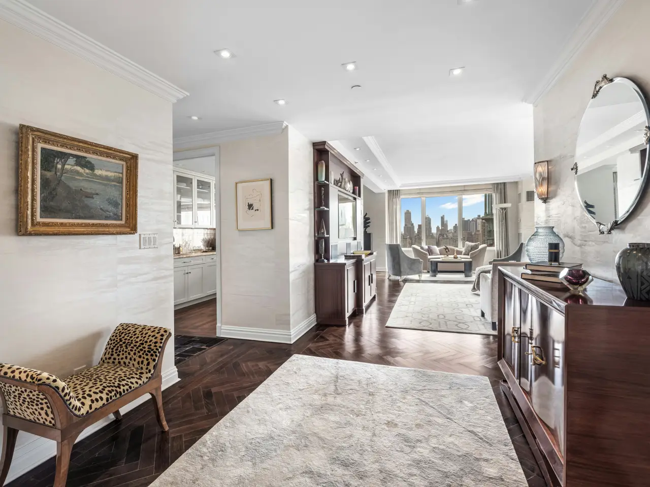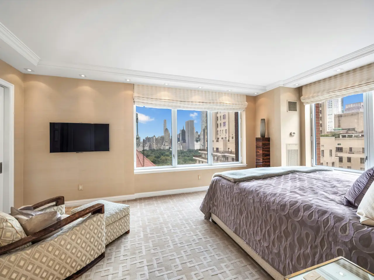PARK VIEWS FROM EVERY ROOM Experience refined luxury living in this exceptional two bedroom 2 1/2bath residence spanning 1928 sq ft with every room framing uninterrupted views of Central Park. Designed with elegance and comfort, the home showcases bespoke finishes throughout, pairing timeless sophistication with modern luxury and warmth. The gracious entrance foyer serves as a prelude to this turn key designer renovated home that has been photographed and published for its meticulous craftsmanship and design elements. The expansive layout offers an open flow between the living room and dining spaces while expansive windows bathe each room with natural south eastern light which highlights the park's ever changing beauty. The open chef's kitchen features a marble sculptural breakfast bar, custom cabinetry, marble countertops with Ann Sachs platinum backsplash along with Sub Zero and Miele appliances The corner primary bedroom suite is a true private luxurious retreat featuring ample closets and storage. The en suite windowed spa-like bathroom with double vanities includes Calcutta gold slab imported marble from Italy, Dornbracht fixtures, Kohler oversized cast iron bathtub, separate stall shower and heated radiant floors. The second bedroom, which is currently used as a den/study, includes ample closets and an en suite marble bathroom with custom cabinetry. The home is further enhanced by stunning hardwood floors, custom millwork, an elegant guest powder room, individual climate controls, a sophisticated lighting and sound system, and Miele washer and dryer The Park Laurel is one of Manhattan's premier condominiums. Residents enjoy a 24 hour doorman/concierge, fitness center, and bicycle room The prestigious location is only seconds away from Central Park, Lincoln Center, Time Warner Center, fabulous restaurants, shopping and public transportation. There is an assessment of $1604 per month
