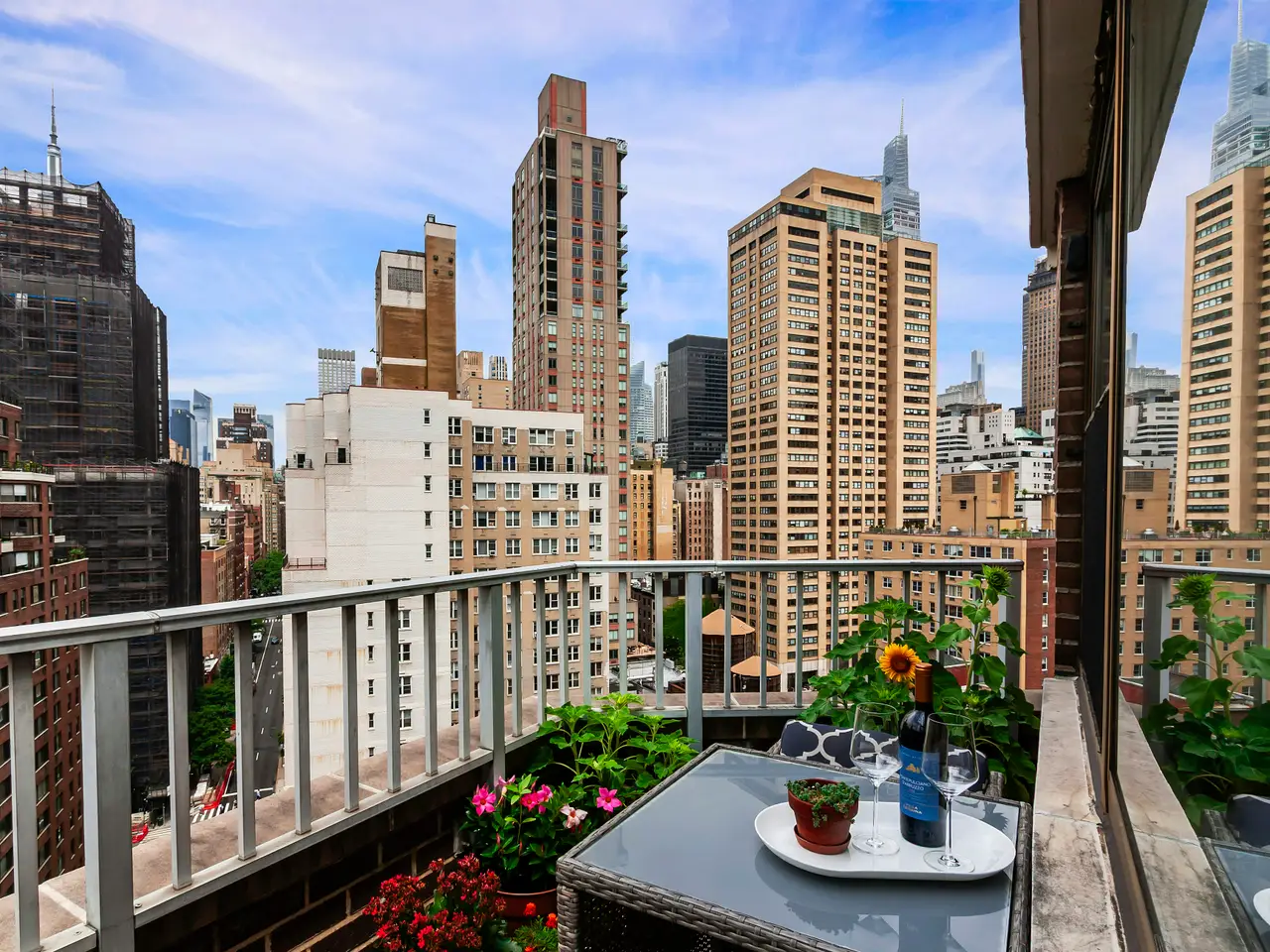 Private Outdoor Space with Iconic Views! This renovated 2-bedroom, 2-bath apartment perched high up on the 18th floor offers stunning south and west views of Midtown and Hudson Yards. Enjoy sunsets from your private terrace, large enough for a table and chairs. The perfect place for morning coffee or evening wine. The kitchen was fully renovated just a few years ago and features full-size appliances, including a Bosch dishwasher, Caesarstone quartz countertops, subway tile backsplash, and a bar-height pass-through counter. The expansive 28-foot living room easily accommodates a dining area, sectional sofa, plus desks. Both bedrooms are generously sized: the primary fits a king bed and includes an en-suite bath with a stall shower; the second fits a queen and additional furniture. There are 6 closets (including 2 walk-ins), all with new doors. Both bathrooms have windows-one with a tub, the other a shower. Three recently replaced PTAC units feature Bluetooth-enabled smart thermostats. Maintenance includes heat, hot water, gas, and A/C-rare in NYC! The Murray Hill Crescent is a full-service co-op with a 24-hour doorman, roof deck with Empire State and Chrysler Building views, updated lobby and hallways (no assessment needed), laundry room, live-in super, storage units, and garage (recently renovated to comply with Local Law 126). Pied-à-terre, co-purchasing, gifting, and subletting (after 3 years) allowed. Pets welcome! Prime location close to Fairway, Trader Joe's, Target, and the upcoming Lidl. Easy access to the 6 train at 33rd St, Grand Central (4/5/6, 7, Metro-North), and East River Ferry to Wall St., Brooklyn, and Sandy Hook, NJ.