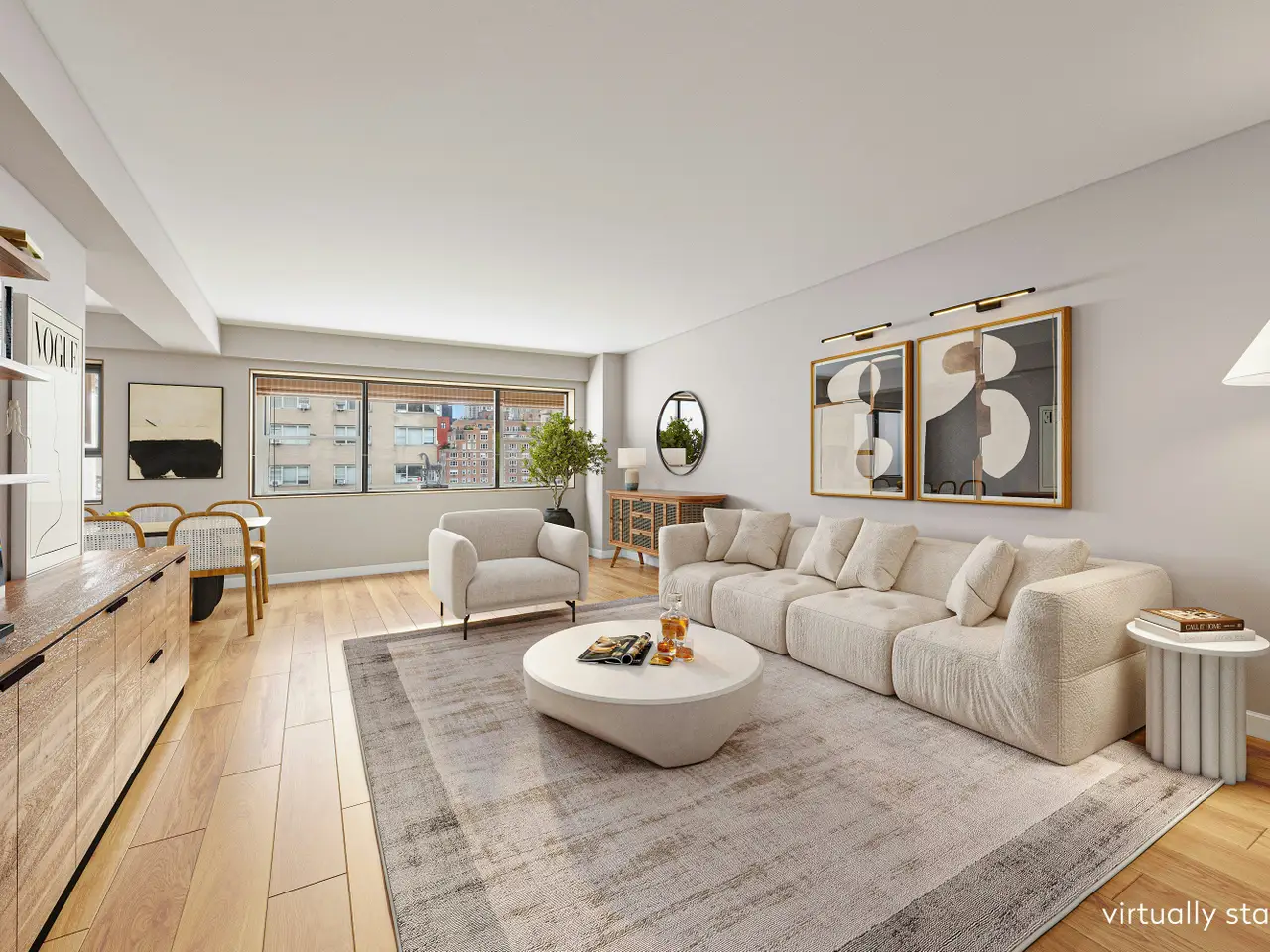 A rare and coveted high-floor corner home with nearly 40 feet of frontage over Park Avenue and vistas of the Empire State Building in a full-service luxury cooperative in prime Murray Hill. Residence 12C at 35 Park Avenue is a sunny 3-bedroom 2-bathroom home in very good move-in ready condition with gracious proportions, an elegant layout and fantastic closet and storage space throughout. Enhanced with the seamless addition of a third bedroom, this home is unique in the building and equally perfect as a full-time residence or a spacious pied-a-terre. Enter into an oversized gallery surrounded by three generous closets and be drawn immediately into a massive living room with a wall of windows drawing in warm sunlight from the West, directly over Park Avenue and its verdant meridians. The living room pours into an adjacent windowed dining area, allowing for flexibility when hosting large dinner parties or holiday gatherings. The kitchen is just next to the dining area behind a pair of twin doors to discreetly close off the space when entertaining. The kitchen has excellent storage and counter space, enhanced by custom cabinetry with counter lighting and a pantry. There is a refrigerator/freezer, a gas stove with convection oven as well as a full-sized stainless steel dishwasher. The bedrooms are all ideally arranged in a dedicated wing, crowned by a lavish corner primary suite with views up and over Park Avenue to the North and West showcasing a medley of New York City skyline scenery. The king-sized primary bedroom is appointed with an oversized dressing room and an en-suite windowed bathroom with a tub/shower and new floor tiles. There are two more bedrooms to the East overlooking 36th Street which both have excellent closet space. The larger of the two ancillary bedrooms is anchored at its corner by a set of wrap-windows facing North and East down to the East River. The ancillary bedrooms are serviced by a second full bathroom with a tub/shower and new floor tiles ideally located just off of the gallery. Air conditioning is through-the-wall. Designed by prolific architect Sylvan Bien, 35 Park Avenue is an impeccably run full-service building with strong financials, a full-time doorman and live-in resident manager. Residents enjoy a lush common garden, two newly renovated laundry rooms located on the ground floor, bicycle storage and on-site garage directly accessible from within the building. Located in prime Murray Hill in close proximity to Gramercy, NoMad and Hudson Yards, access to transportation and lifestyle amenities is second to none. The 6 Train as well as the Madison Avenue and Lexington Avenue bus lines are all moments away, and Grand Central Terminal is accessible in under 10 minutes. Park Avenue Equinox, Trader Joe's, Murray Hill Market are all an easy distance, and the great neighborhood offers some of the trendiest modern restaurants and bars in New York City, including two-Michelin starred restaurant ATOMIX. Pieds-a-terre, co-purchasing, guarantors, gifting and parents buying for children are permitted with board approval. There is a 1.5% flip tax, and financing is permitted up to 70%. Sorry, no pets. There is a capital assessment currently in place of $594/month through December 2026.
