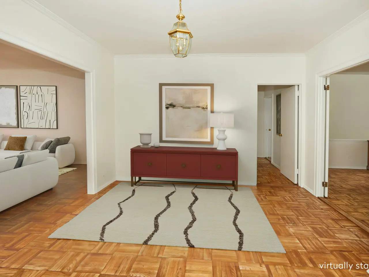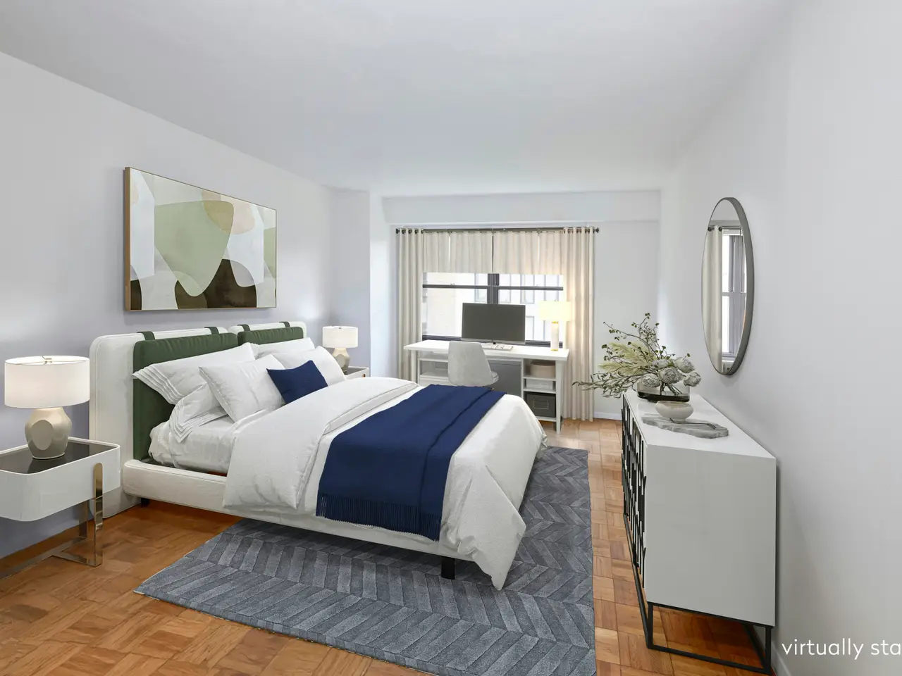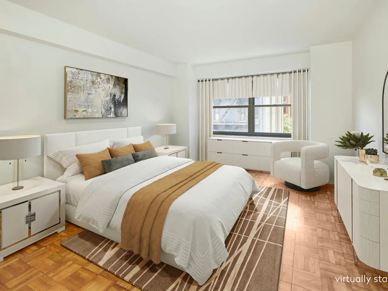 This rarely available C line classic 7 room home at 60 East End Avenue has just come to market! This spacious and sunny coop faces North, South and West; the major rooms face South and are bathed in sunlight. The classic layout is highly flexible. The entry foyer has a large coat closet and powder room, leading to a central gallery. To the left is the gracious living room, and to the right is a multipurpose room, currently a formal dining room, which can also be used as a media room or dining/den. The span of these rooms is 60 feet, creating a great flow for living and entertaining. Off the living room is a large bedroom with oversize windows and Southern exposure, as well as walk-in closet and ensuite bath. The location makes it a perfect den or library, and it is often used this way. Off the gallery there is a hallway with a double linen closet that leads on the left to the spacious South facing Primary Bedroom with 2 large walk-in closets and windowed Master Bath. Across the hall is a large bedroom with open views and ensuite bath. All the windows in the apartment are oversized and have been upgraded. There are individually controlled HVAC units in every room. Parquet floors in excellent condition run throughout. The renovated eat in kitchen is enormous, with service entrance and washer/dryer. Most unique in this kitchen is a windowed breakfast room with suburban proportions; it quickly becomes a popular spot. Adjacent is a fourth bedroom, currently used as a wood paneled home office, with ensuite bath. This room can also be opened to the kitchen to create a huge country kitchen with full laundry room or it can be a cozy guest bedroom or staff room. 60 East End Avenue is an impeccably maintained full service cooperative with full time doorman, concierge and live in resident manager and only three apartment per floor. It has a beautiful approach, with a circular driveway surrounded by gardens filled with flowers and trees, seasonal plantings and discrete path lighting. There is a fully equipped windowed fitness room and a garage accessible from the lobby with a reduced rate of $375 per month for shareholders. Every apartment has private storage. There is a new laundry room and bike room. 60 East End boasts a fabulous new architect designed lobby, entrance and elevators. The hallways are currently being renovated, with completion expected in Fall 2025. The building is located across from the East River and the river side Finlay walk and Carl Schurz Park, a mini Central Park featuring 15 acres of waterfront woodlands, 2 pet runs, and a modern playground. This quiet enclave boasts some of the city's finest schools and has easy access to all transportation, including the new 2nd Avenue Subway and the FDR drive. Welcome home! 60% financing permitted 2% transfer tax paid by purchaser Pied A Terre permitted Pet Friendly