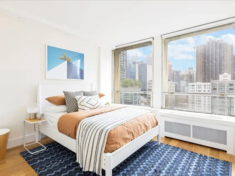Sponsor Sale. No board approval or application required! Prepare to be amazed! No detail was overlooked in this meticulously gut-renovated 2-bedroom home at the highly coveted Kips Bay Towers condominium. Benefit from the opportunity of being the 1st homeowner to enjoy this beautiful renovation. This high floor apartment has tremendous north and eastern views, with floor to ceiling windows allowing for all day light and peaks of the Chrysler Building to the north and a river view to the east. The kitchen is outfitted with top of the line stainless steel appliances by Samsung and Bosh, including a 5 burner stove and a built in microwave drawer. There is ample cabinet space and quartz countertops to blend in seamlessly with the wooden cabinetry. The dining foyer creates a generous space to enjoy your every day meals and there is a wet bar complete with a wine fridge and additional cabinetry for your entertaining needs.  The living room has 5 floor to ceilings windows and the owner creatively removed the HVAC covers to maximize the space and light. The primary bedroom is king in size and in large enough for a home office if so desired. The second bedroom is also a generous size. The bathroom is both modern and sleek with marble wall tile and vanity. Additional features include recessed lighting in every room, new closet doors and frames, and engineered hardwood flooring. Kips Bay Towers Condominium was designed by world-famous architect I.M. Pei. Known for its tight-knit community, the building amenities include a 24/7 door staff and concierge service, a beautiful, recently renovated lobby, state-of-the-art fitness center, a recreation room with a children's play area and televisions, a laundry room with on-site valet and dry cleaning service, bike room, storage, and trunk rooms. Best of all, the building is host to one of New York City's largest private parks, at three acres, this is one of the most coveted amenities in all of NYC. The park includes many seating areas, a full basketball court and a playground, all of which are exclusive to building residents. Sorry, no dogs permitted. Current assessment of $310.72. The hallways are currently under renovation.
