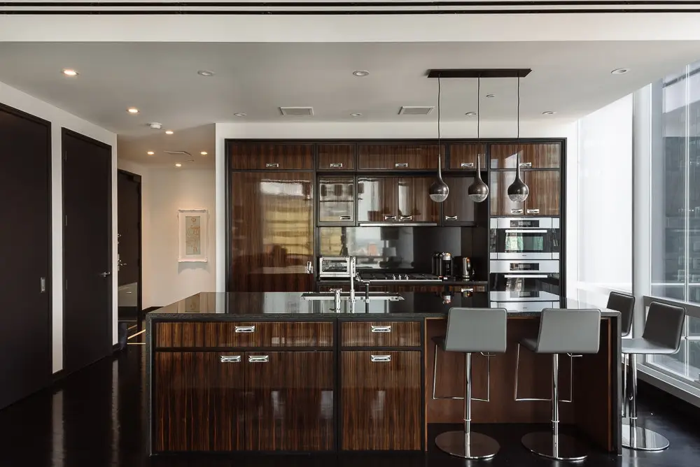 ONE57, iconic residential tower, designed by Pritzker-prize winning Architect Cristian de Portzamparc and interior by Danish designer Thomas Juul-Hansen. Spectacular 2,009 square foot south and west corner 2 Bedroom 2.5 bath home. The extraordinary light streams through the floor to ceiling windows throughout as well as dramatic views of the NYC skyline, the Hudson River and Central Park. A large foyer welcomes you to a dramatic grand salon with 11' ceilings and sweeping NYC skyline. The stunning kitchen is a dream: hand-crafted Smallbone of Devizes with premium cabinetry in Macassar, leather seating, Miele and Sub-Zero wine cooler, Dornbracht fittings and fixtures and expensive stone counters. The guest bathroom is in Onyx with beautiful fixtures. A most luxurious master bedroom suite with dressing room, a spa-like bathroom with double vanities, walk-in shower and soaking tub and ample closets. The well-appointed second bedroom suite is in a separate wing. Oversized doors, large laundry and state of the art climate climate control system. The white glove and personal service is unparalleled. The rent includes First class amenities include 24 Hour Doorman and Concierge, fitness center and yoga studio, stunning indoor pool, private dining, full catering kitchen, library with billiards table, screening room and all Park Hyatt Hotel services and facilities. On-site parking garage, bike storage and cold storage is available and pets are allowed. Easy application process and flexible terms.