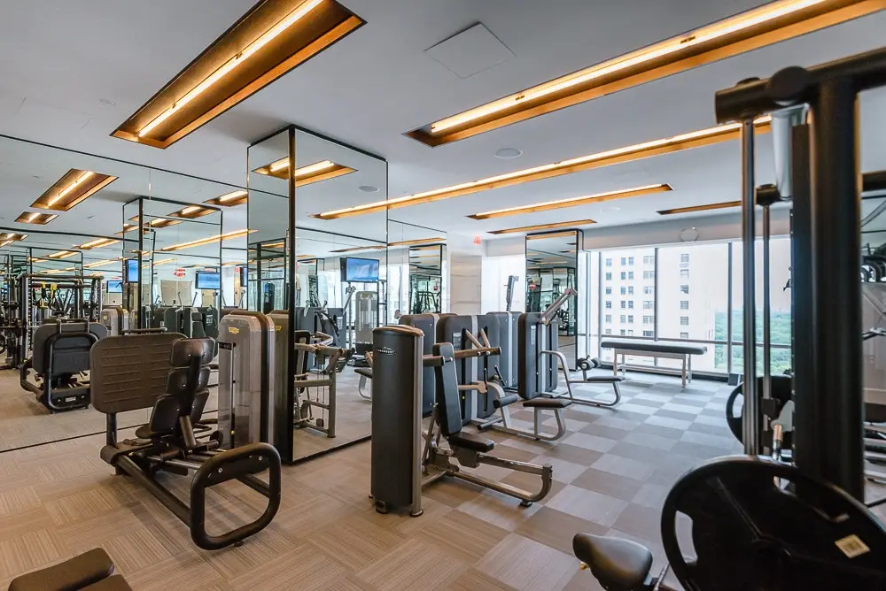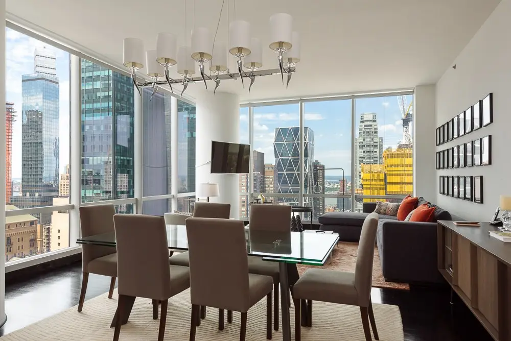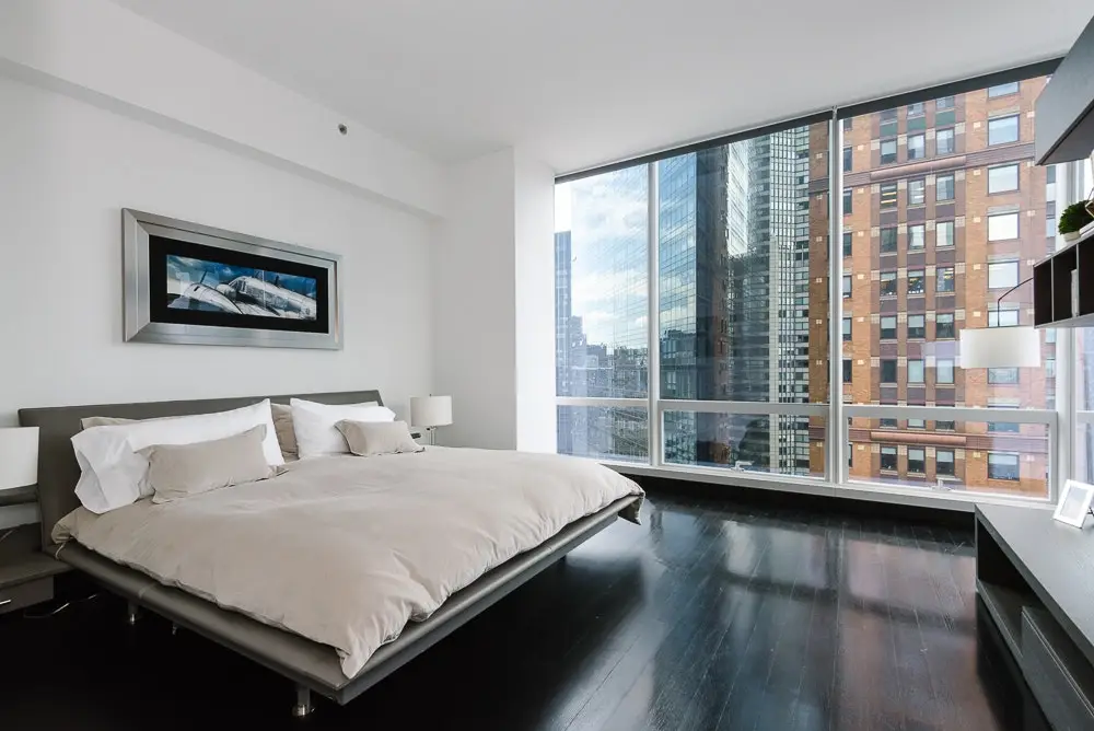Floor to ceiling windows with NYC skyline views