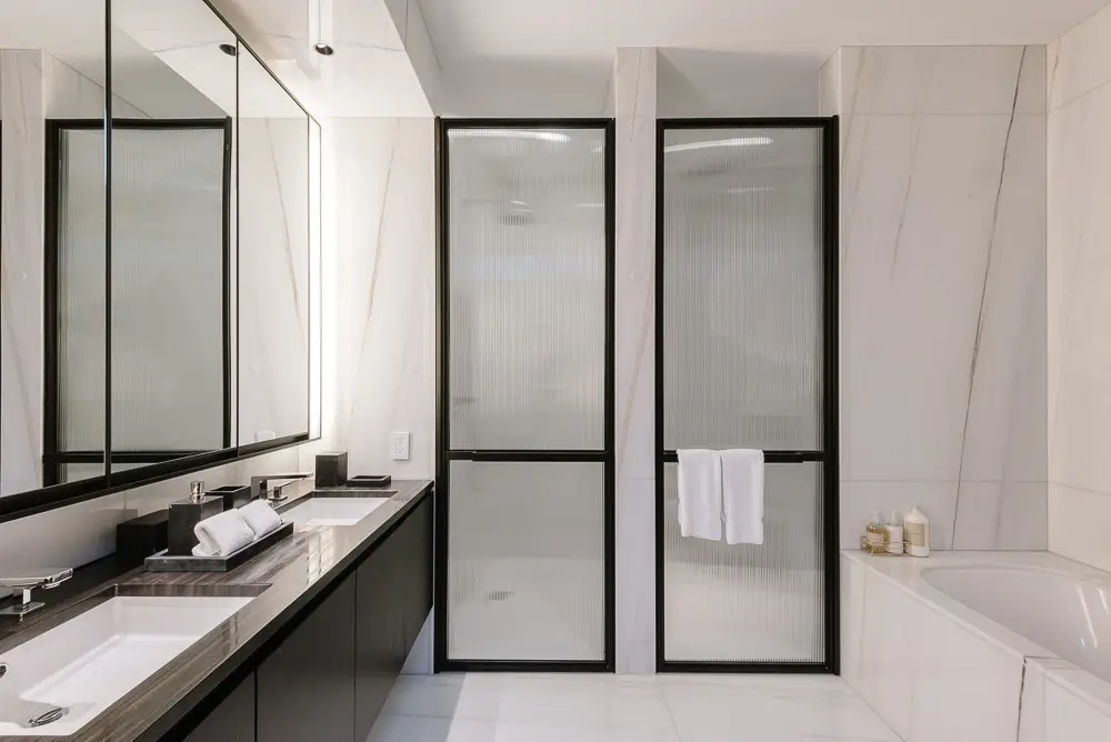 Spa-like bathroom with double vanities