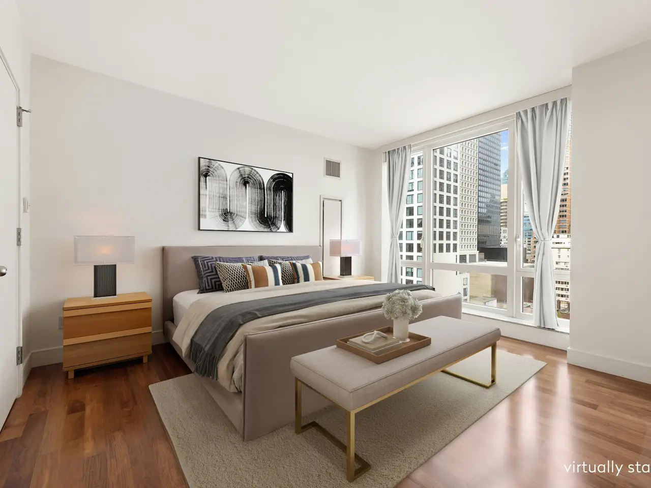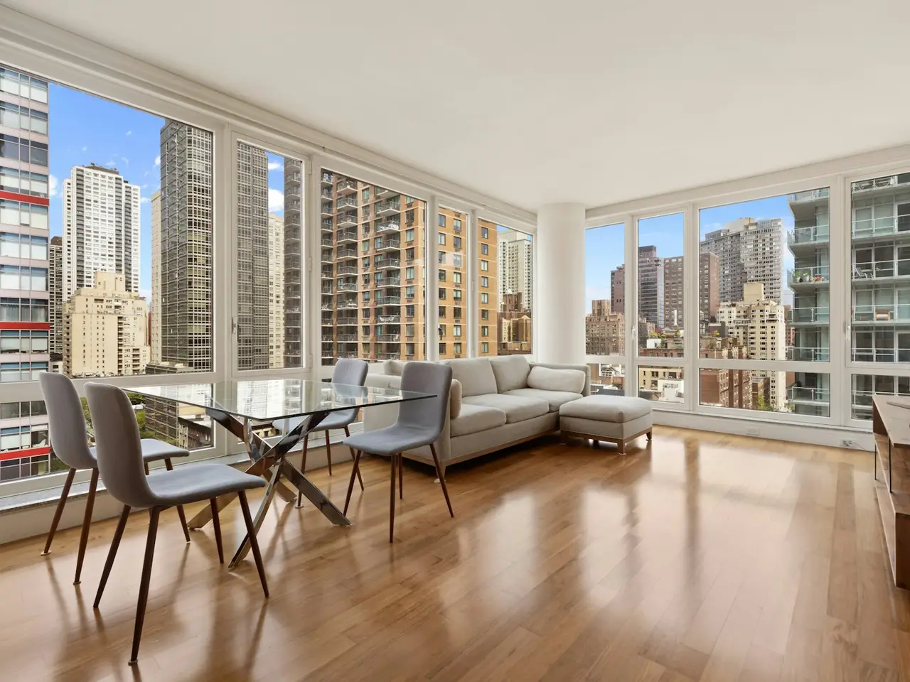 Floor to ceiling windows with Manhattan skyline views